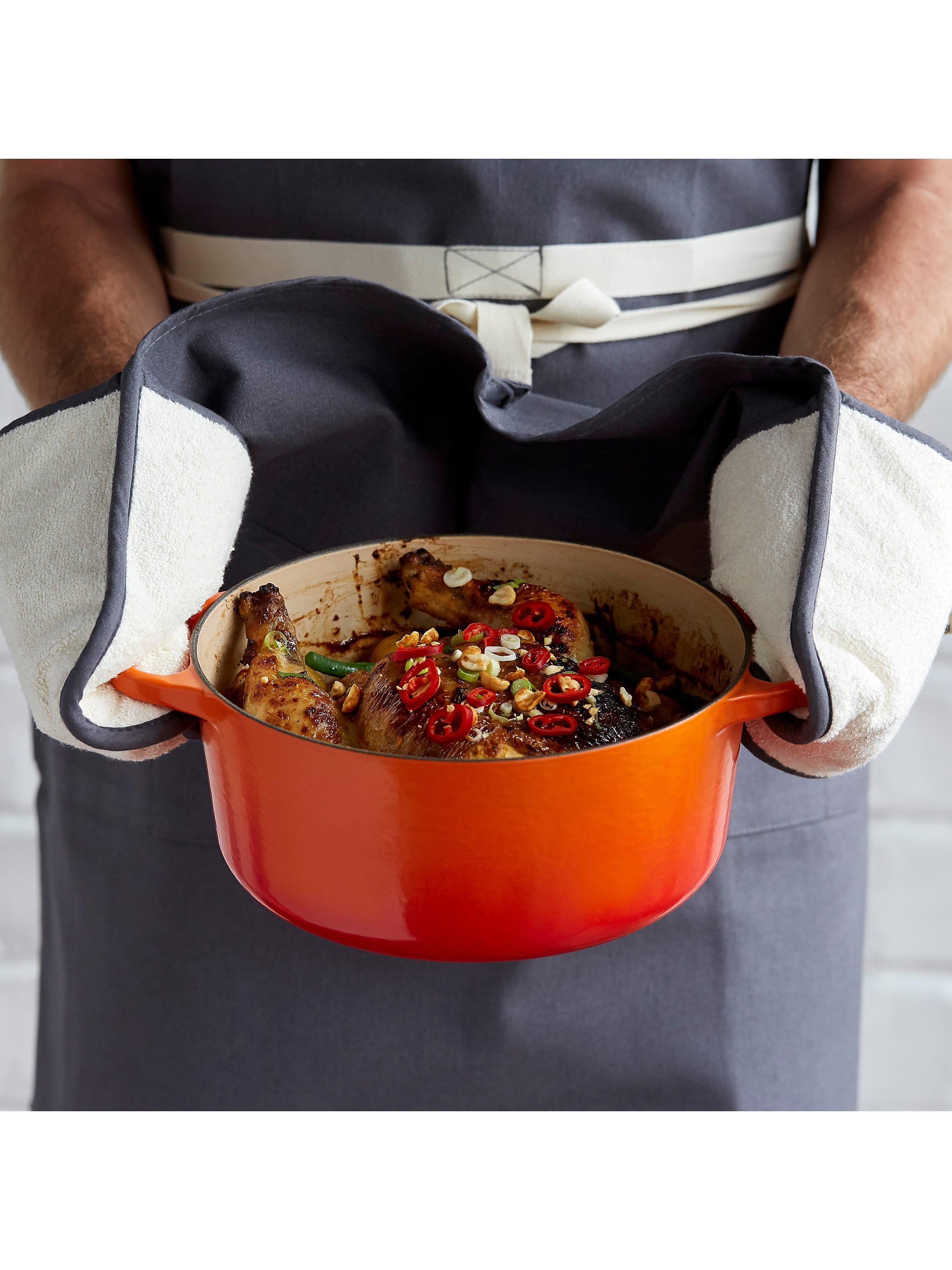 Made from pure cotton canvas, this apron is generously sized to give you the protection you need when cooking. The apron has a fabric protector coating to make it stain and spill resistant. The adjustable neck strap ensures a comfortable fit and the handy deep front and side pockets are ideal for keeping utensils, your phone or other items. Hang it up by the canvas loop when you're done in the kitchen.
