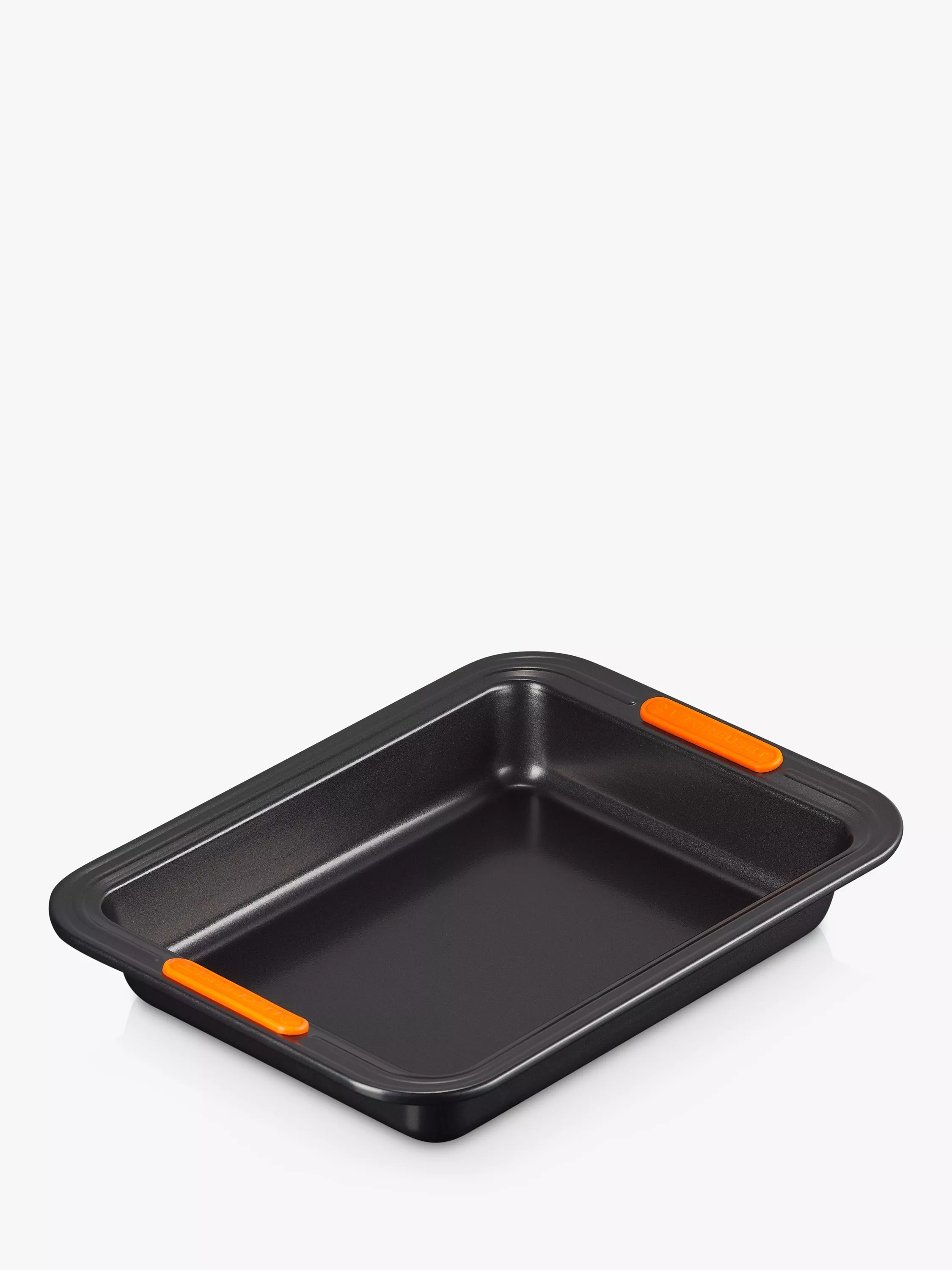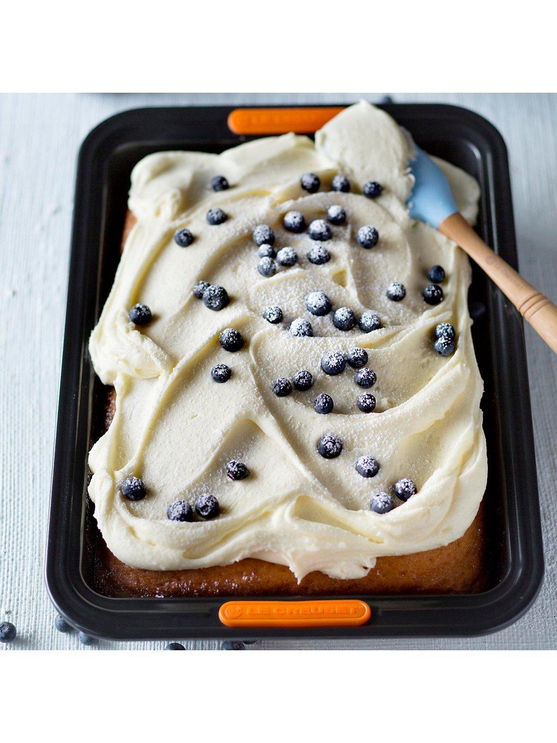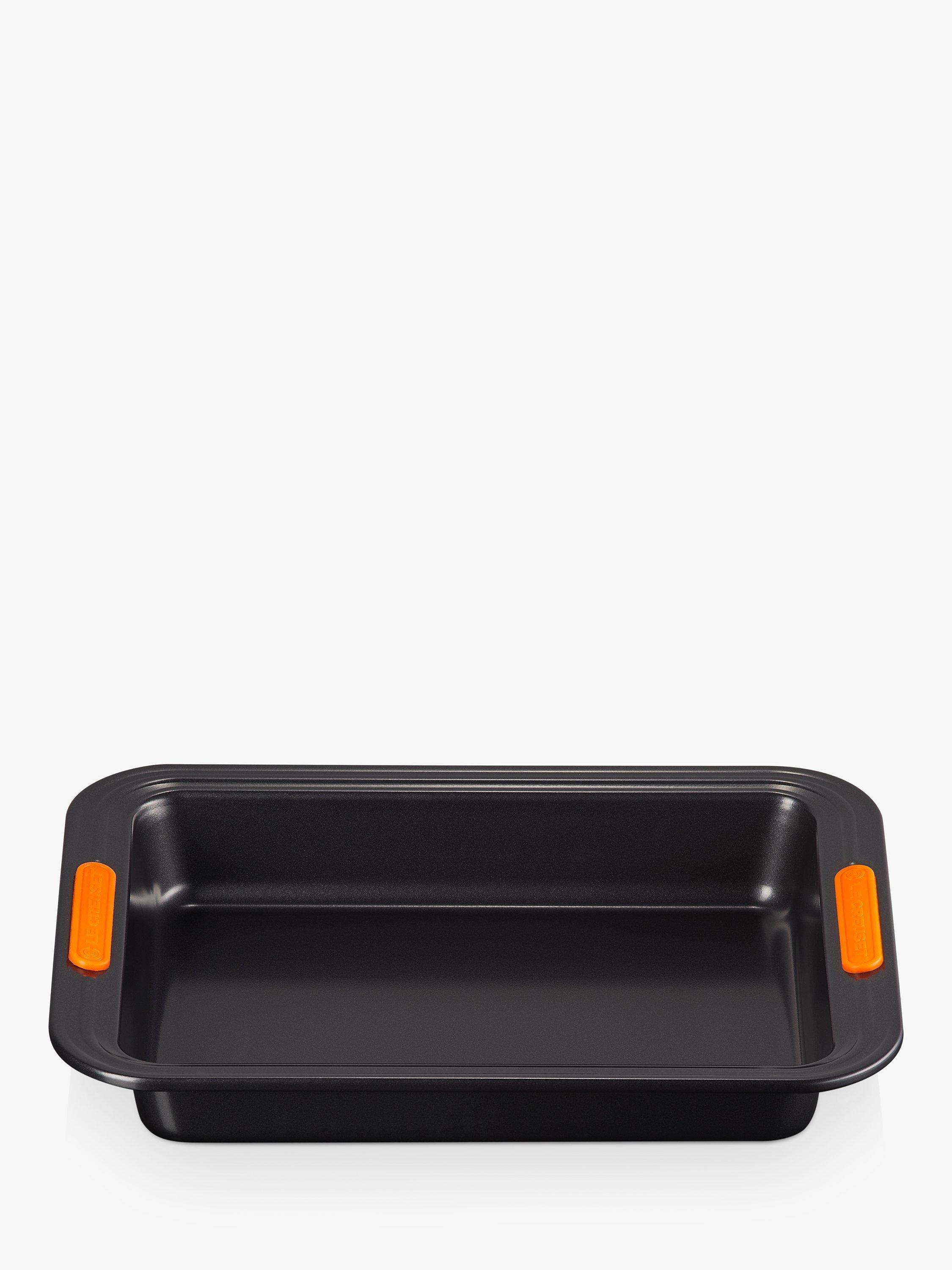 The generous size and versatile shape of the Rectangular Cake Tin from Le Creuset makes it indispensable. Perfect for making slab cakes, focaccia bread and gingerbread, it is also ideal to use as a shallow roasting tin or for pasta bakes. The wide rim on the outside of the tin, featuring heat-resistant silicone inserts for added grip, makes lifting a full tin easier and safer, especially when taking to and from a hot oven. The non-stick is even metal utensil safe.