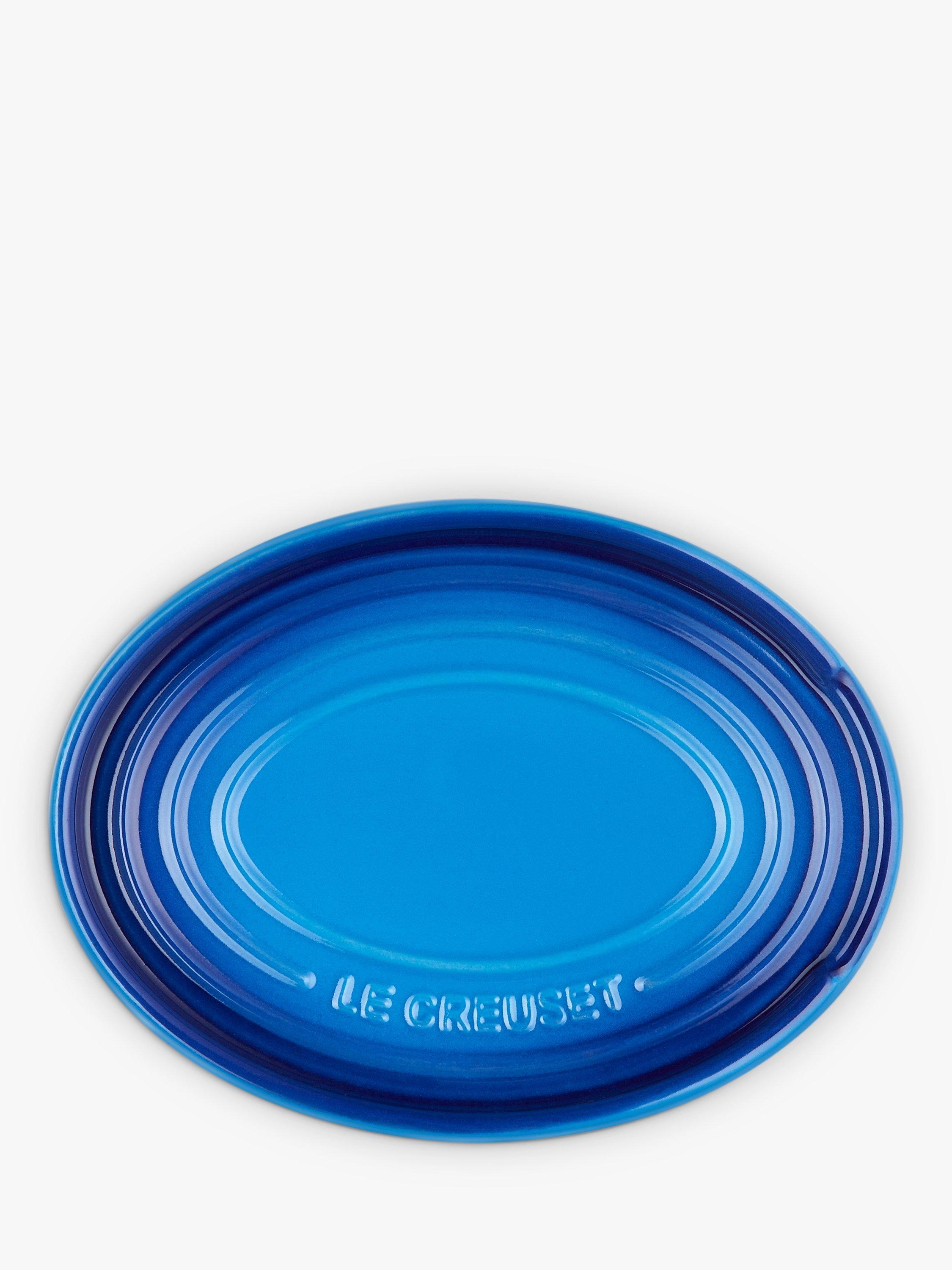 Le Creuset's oval spoon rest is a handy and helpful worktop piece, preventing mess and cutting down on time spent clearing up after cooking. Featuring Le Creuset's three rings branding border, the grooved sides keep spoons, spatulas and ladles from sliding, while the wide bowl contains any drips from your kitchen utensils.