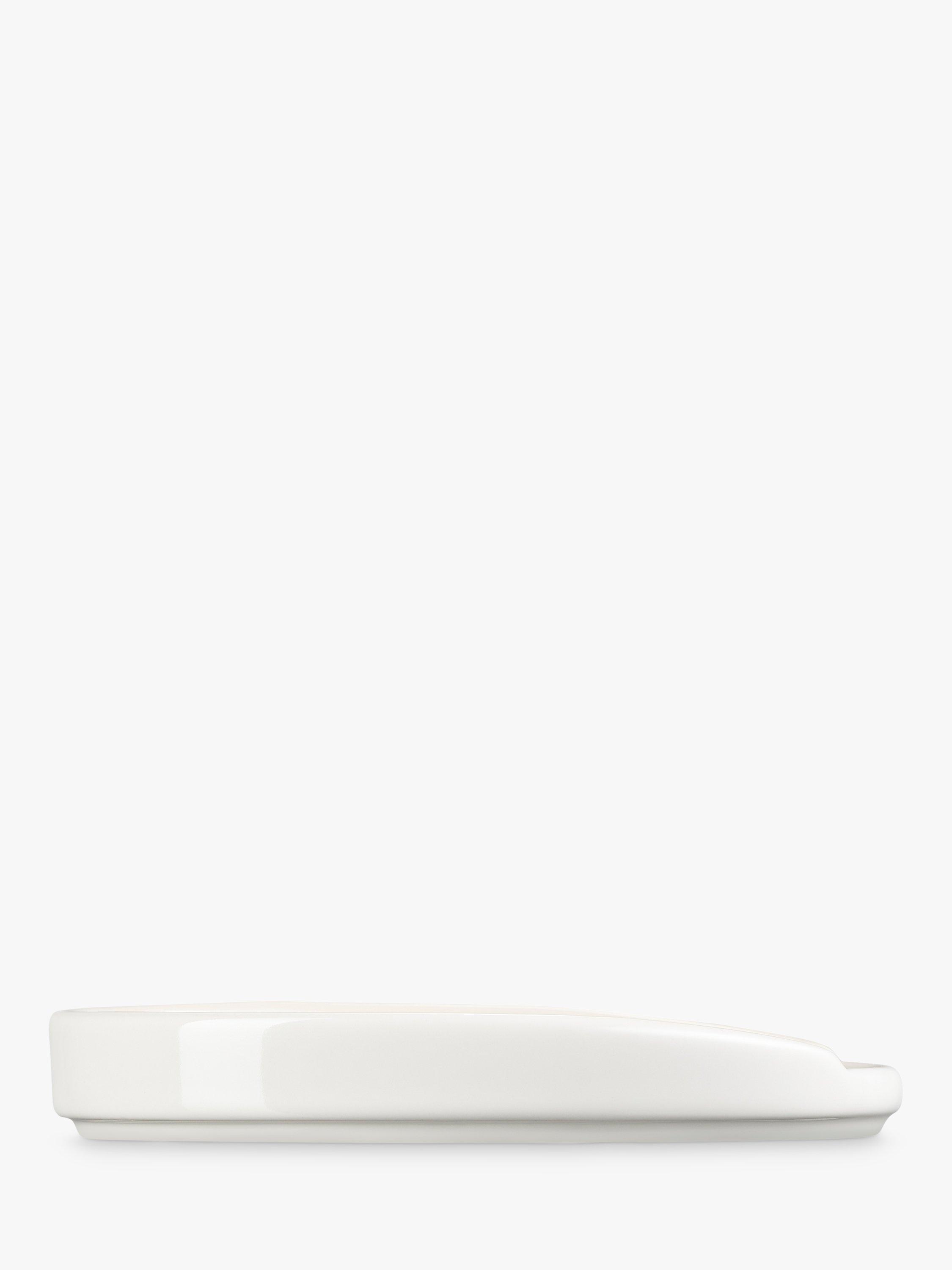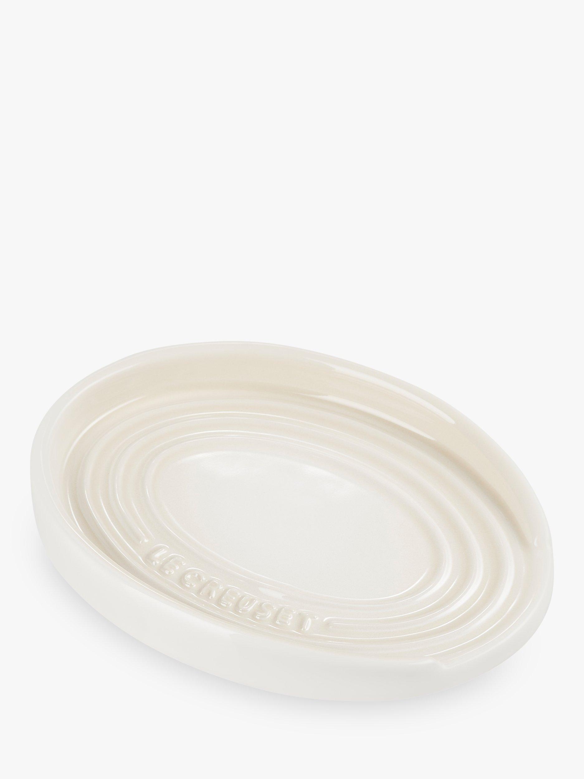 Le Creuset's oval spoon rest is a handy and helpful worktop piece, preventing mess and cutting down on time spent clearing up after cooking. Featuring Le Creuset's three rings branding border, the grooved sides keep spoons, spatulas and ladles from sliding, while the wide bowl contains any drips from your kitchen utensils.