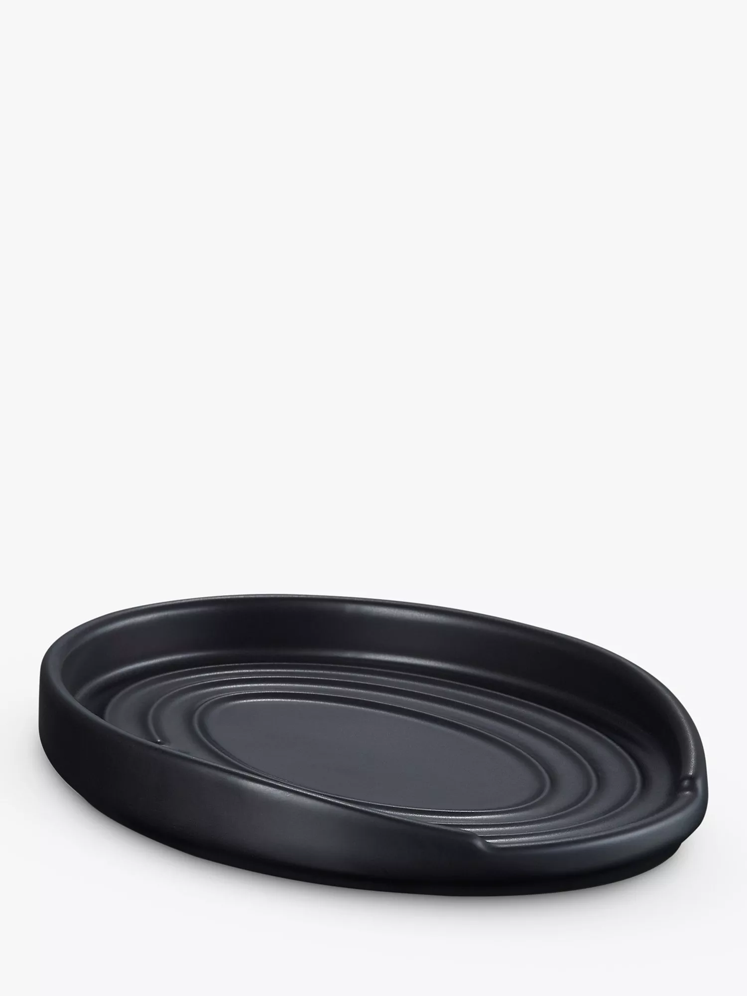 Le Creuset's oval spoon rest is a handy and helpful worktop piece, preventing mess and cutting down on time spent clearing up after cooking. Featuring Le Creuset's three rings branding border, the grooved sides keep spoons, spatulas and ladles from sliding, while the wide bowl contains any drips from your kitchen utensils.