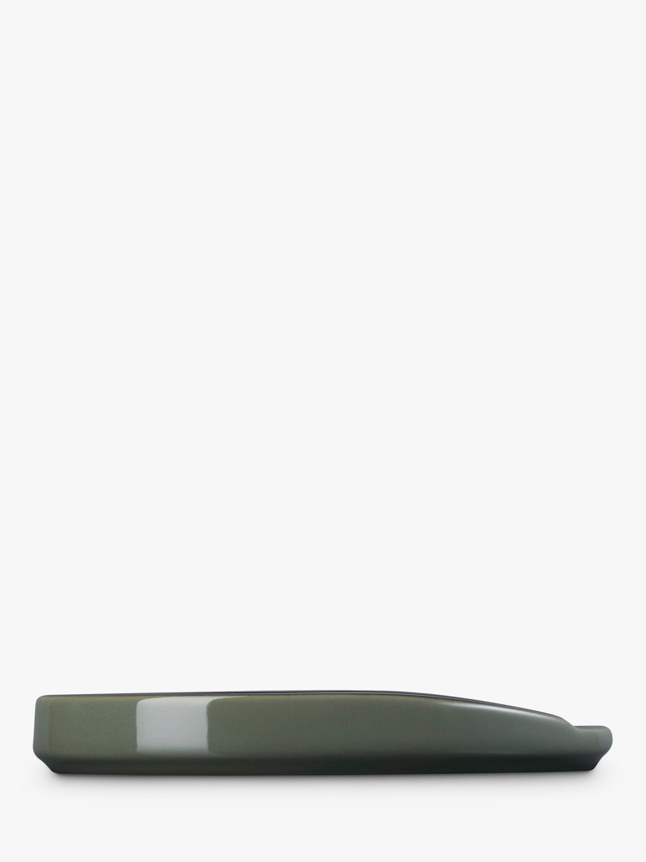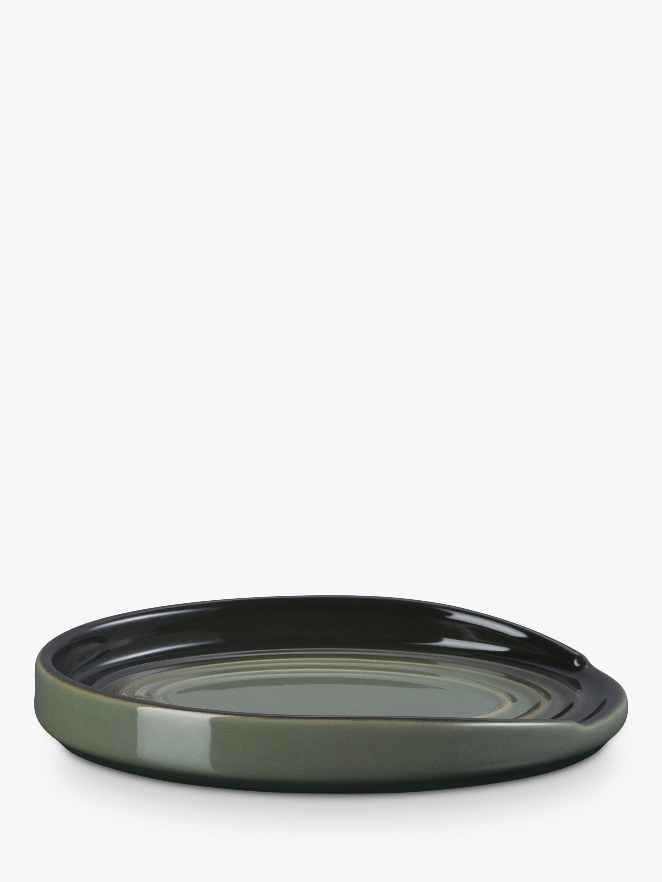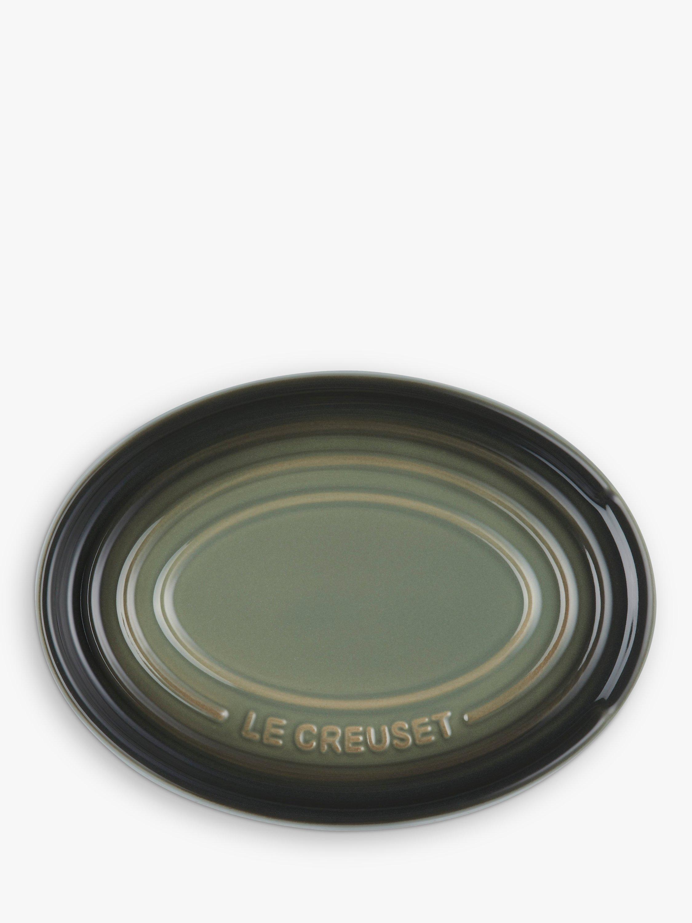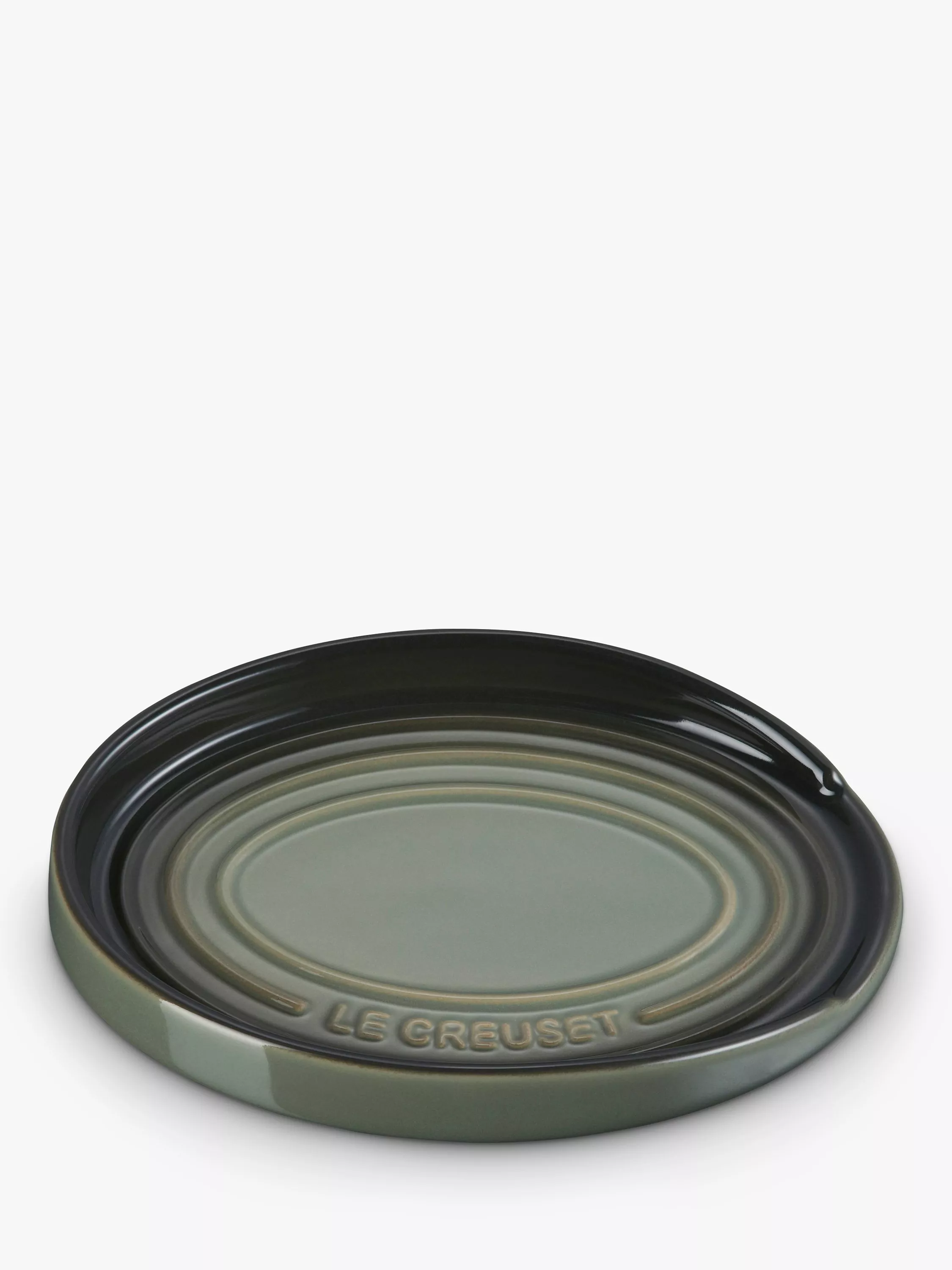 Le Creuset's oval spoon rest is a handy and helpful worktop piece, preventing mess and cutting down on time spent clearing up after cooking. Featuring Le Creuset's three rings branding border, the grooved sides keep spoons, spatulas and ladles from sliding, while the wide bowl contains any drips from your kitchen utensils.