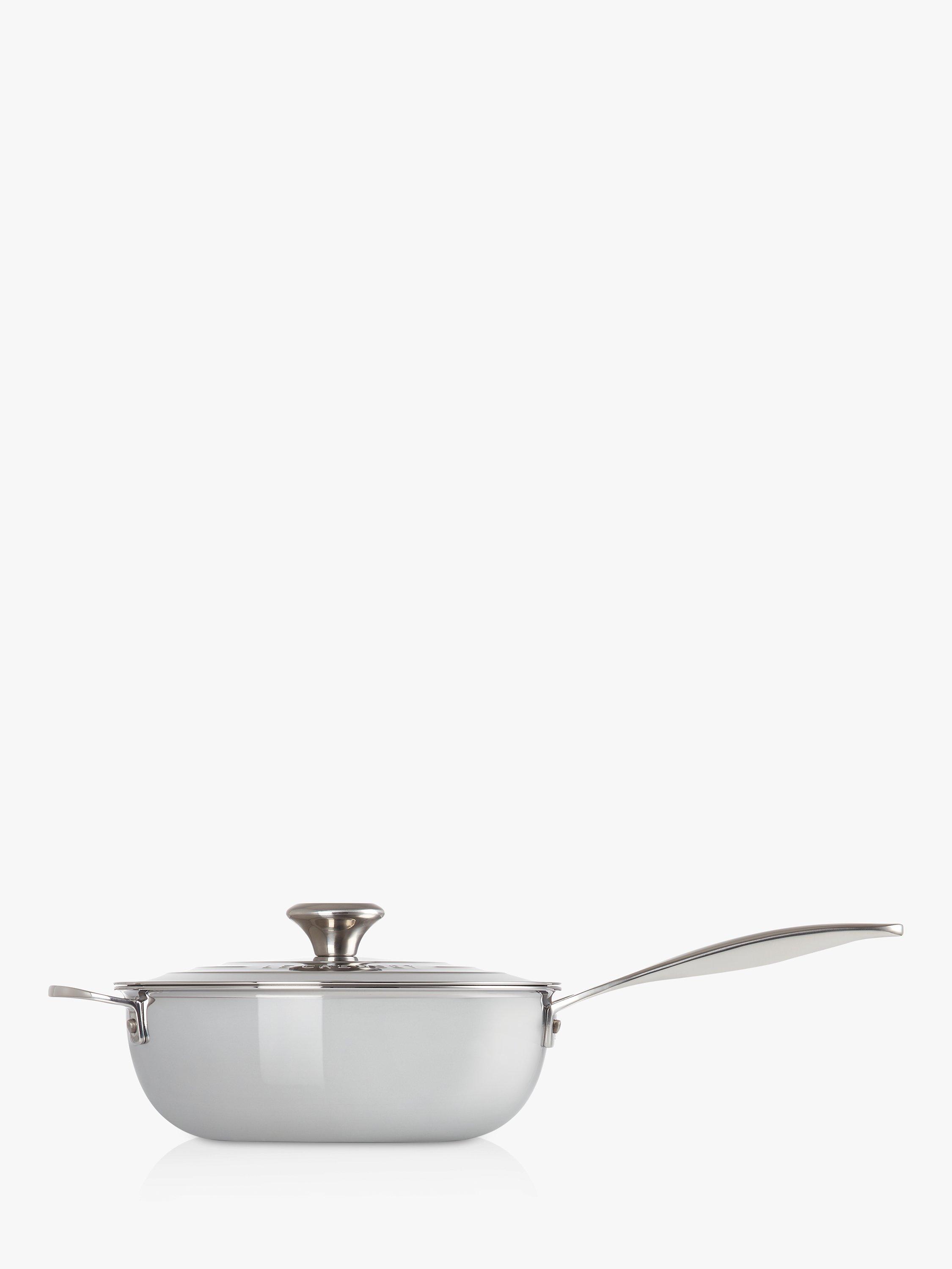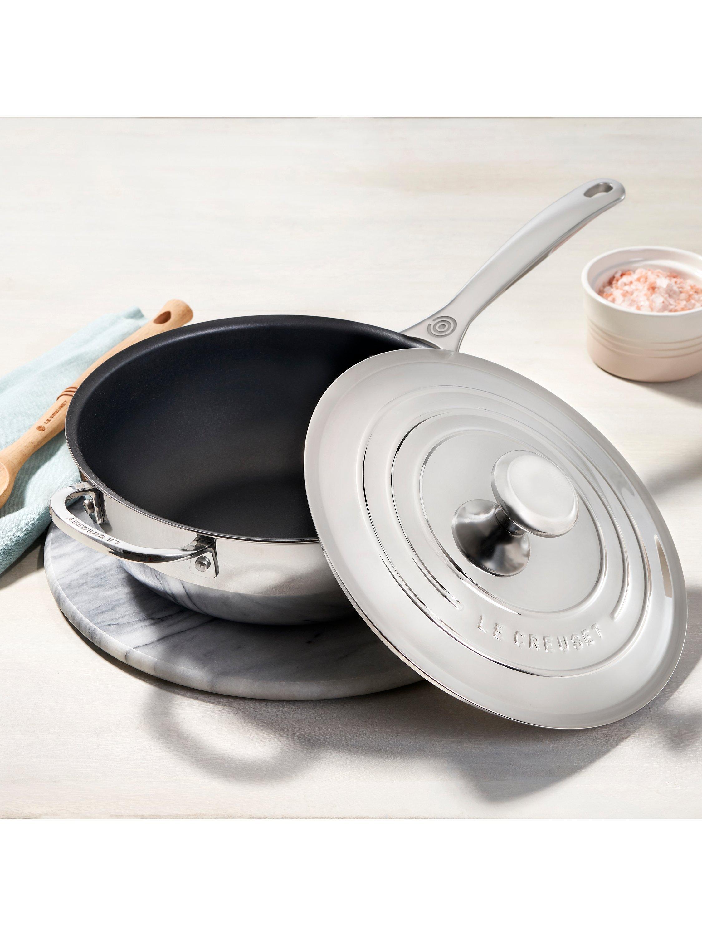 Le Creuset's 3-Ply Stainless Steel chef's pan is ideal for sauteing, reducing sauces and steam-frying. The pan has a gleaming, mirror-polished finish and the lid features the iconic Le Creuset three-ring design.