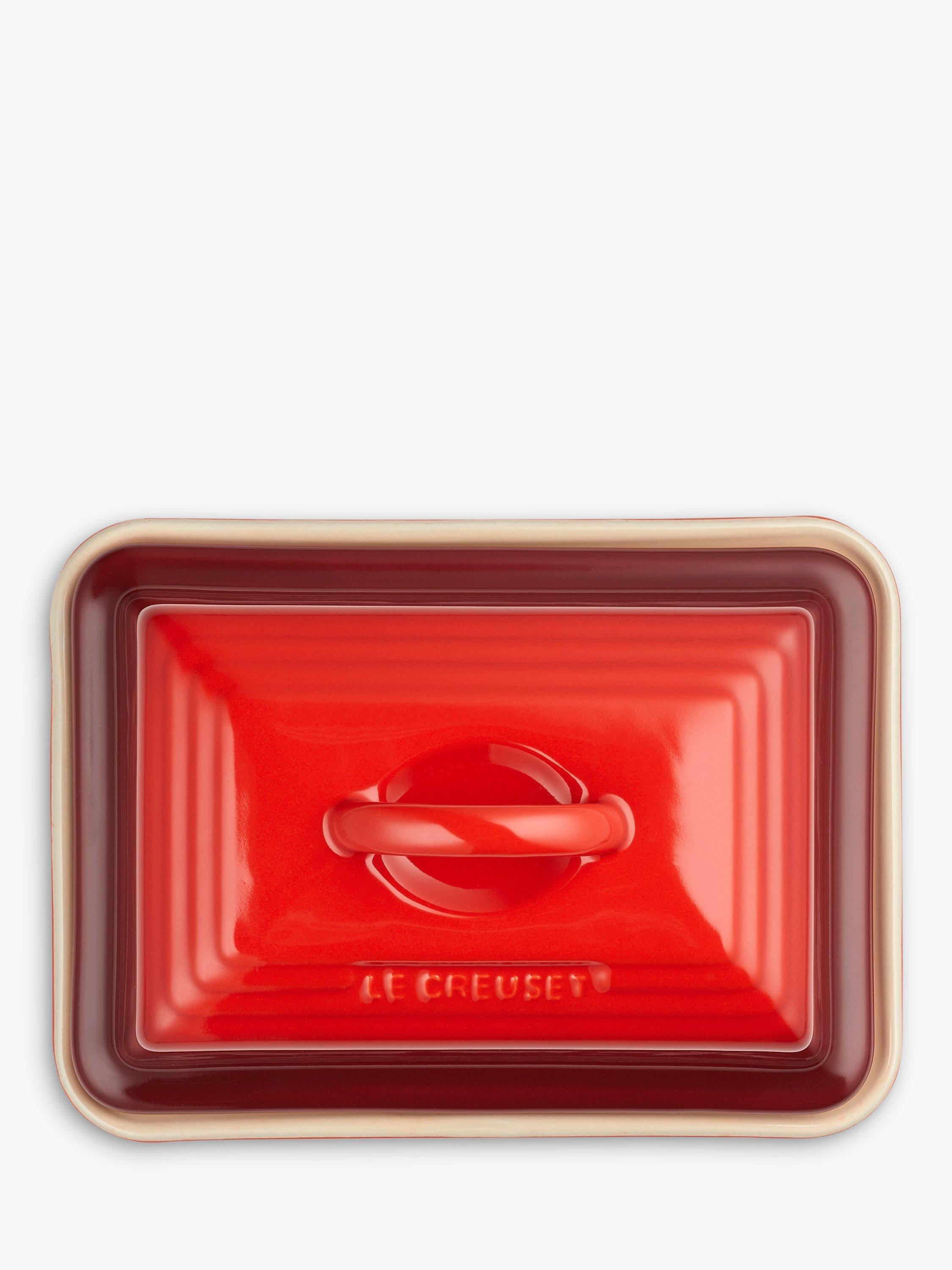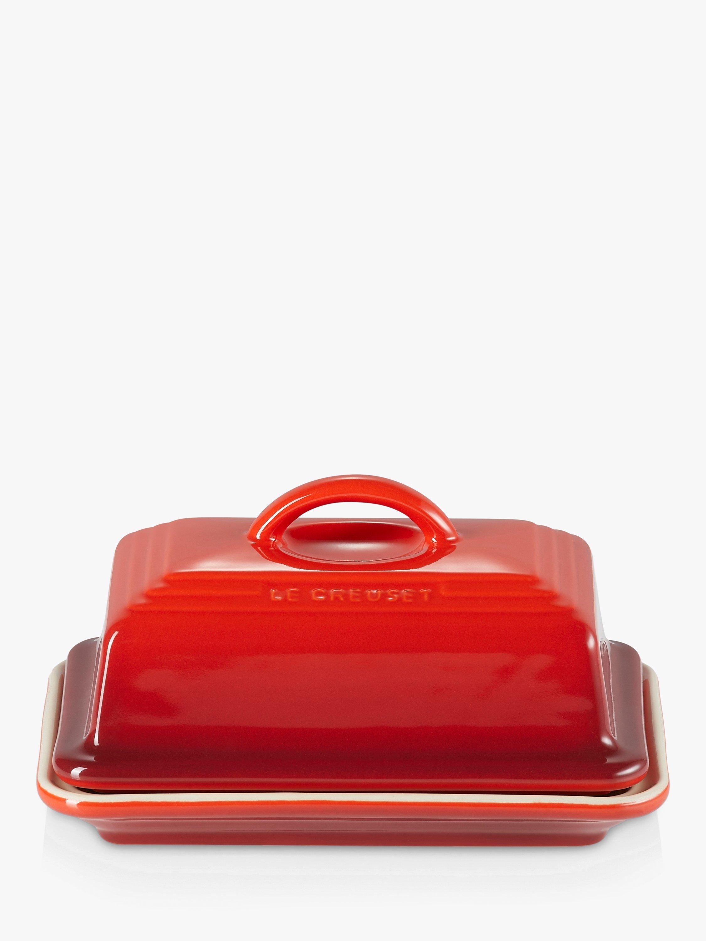 The Le Creuset butter dish makes a colourful addition to any kitchen table or worktop. It holds a regular 225g to 250g pack of butter, features a sure-grip knob on the lid, and has a rim on the base.