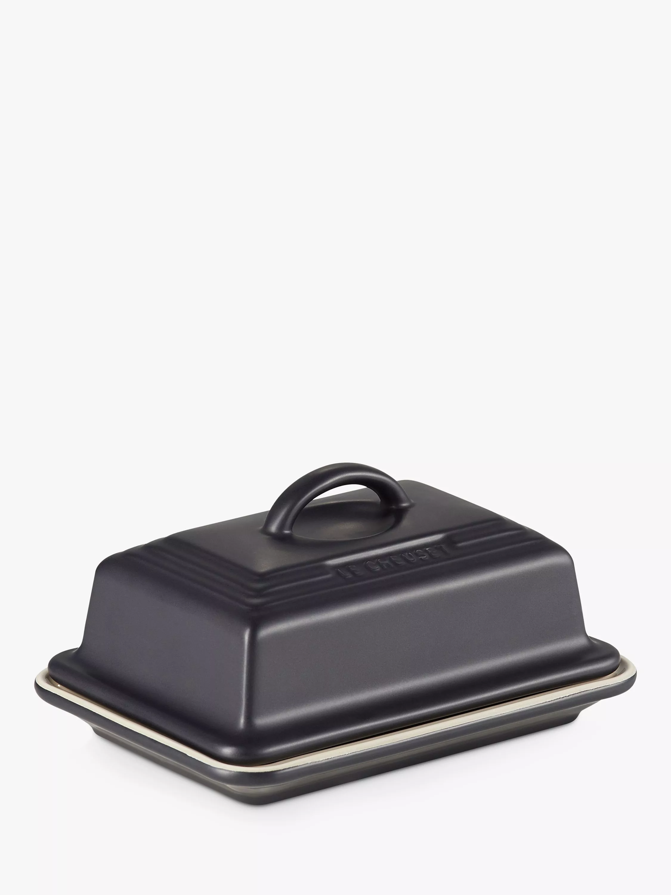 The Le Creuset butter dish makes a colourful addition to any kitchen table or worktop. It holds a regular 225g to 250g pack of butter, features a sure-grip knob on the lid, and has a rim on the base.