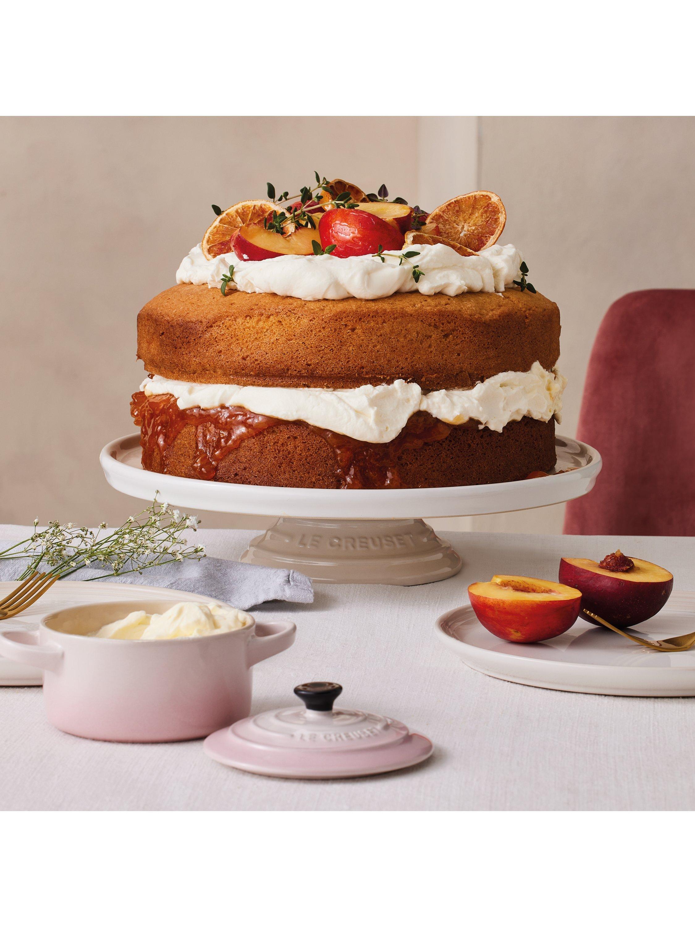 Le Creuset's cake stand makes a beautiful table centrepiece. Featuring Le Creuset's three-ring branding on the base.