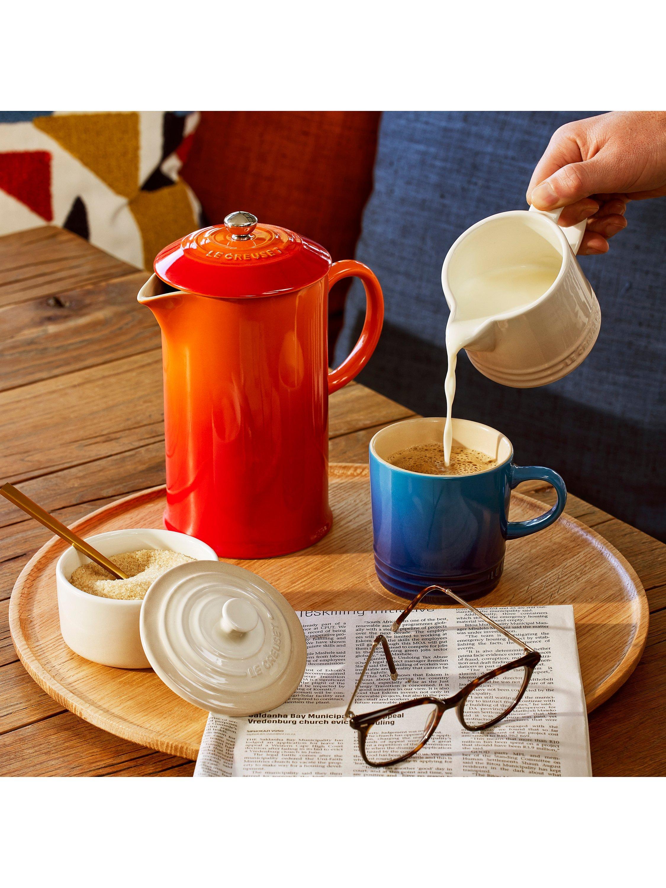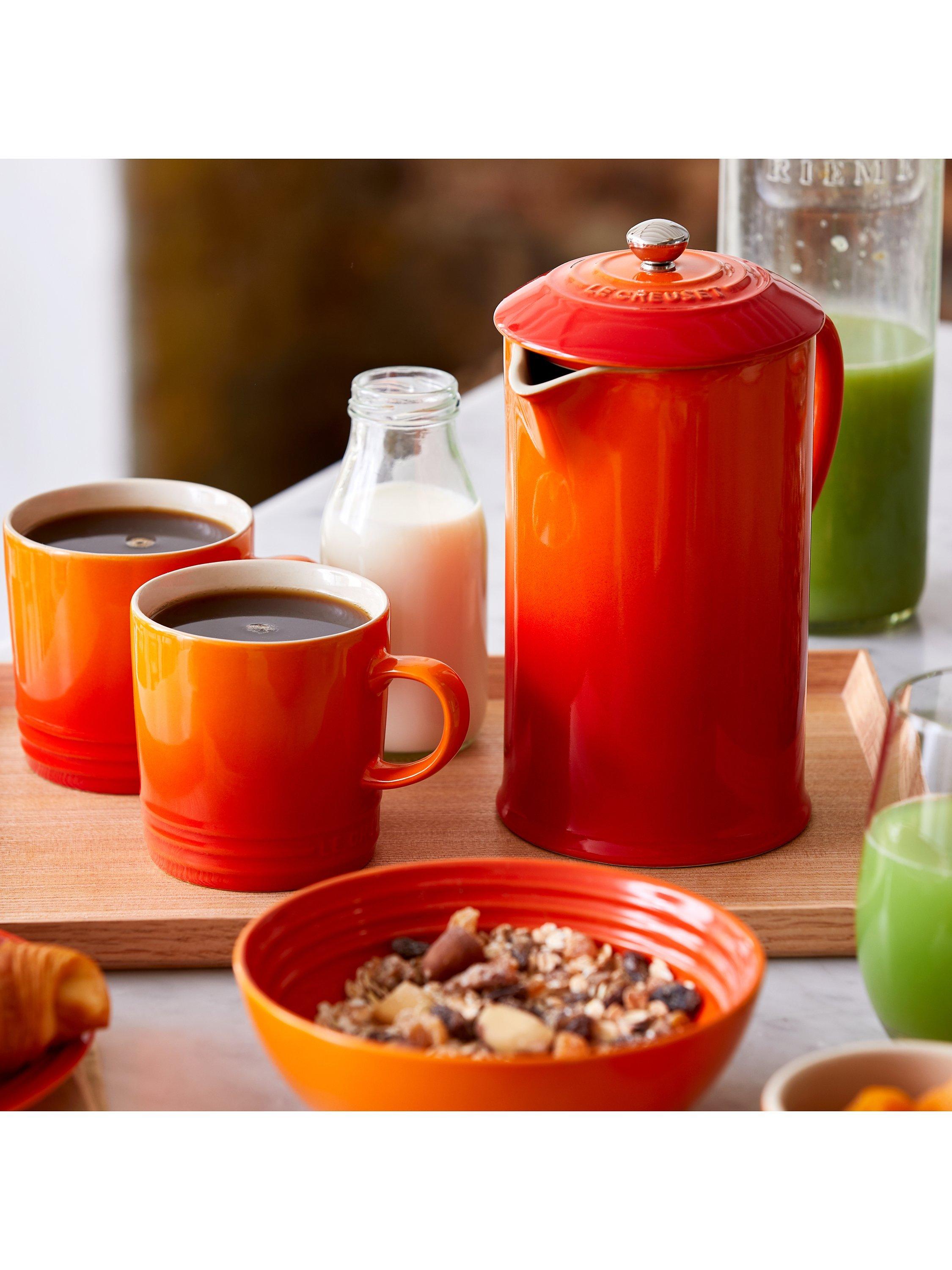 Crafted from famous Le Creuset stoneware for a robust and high-quality finish, this coffee pot with a metal press makes morning and after-dinner coffee a special occasion. The cafetiere will brew your coffee to perfection, keep it hot, and command a bold presence on your dining table.