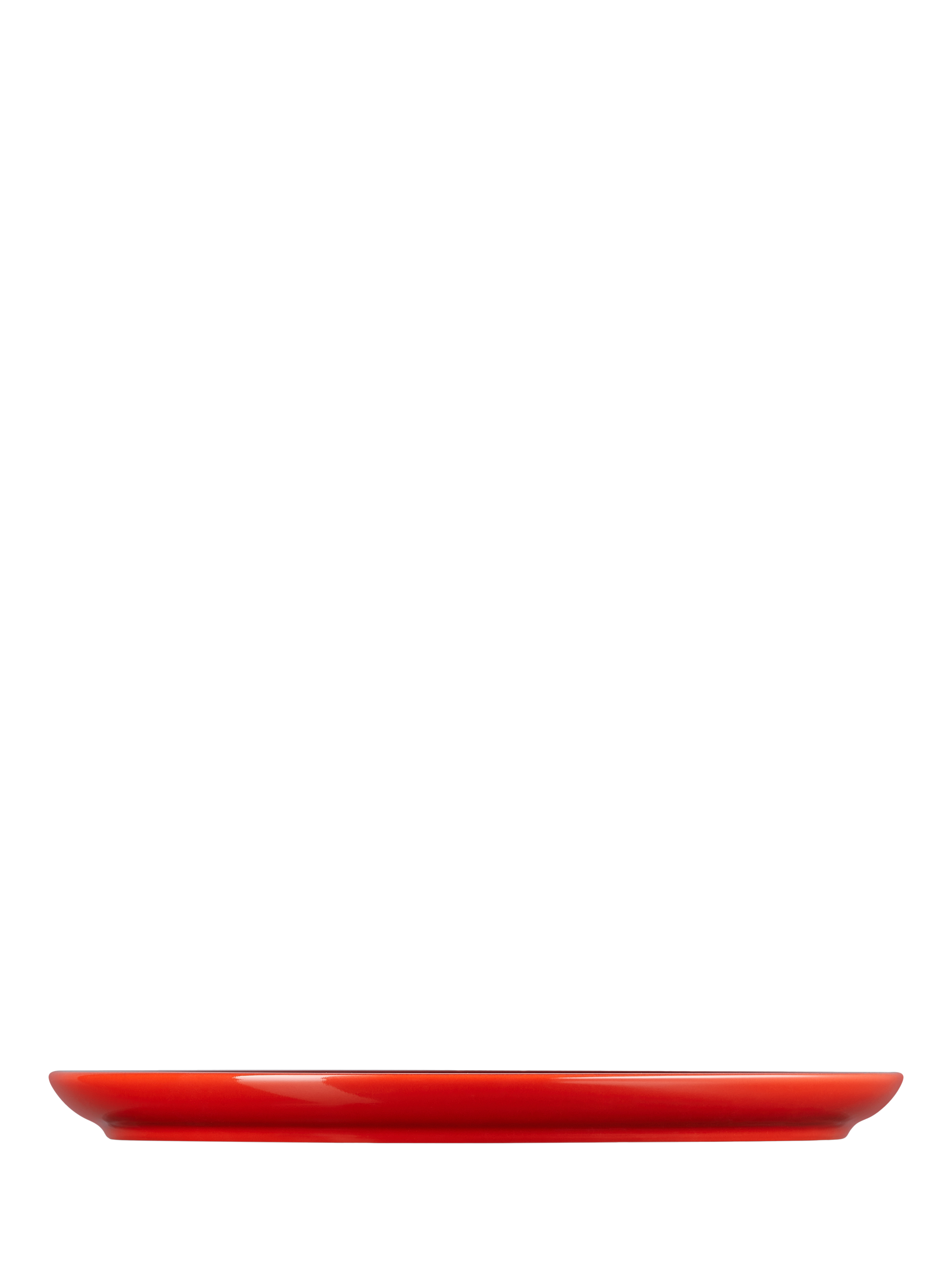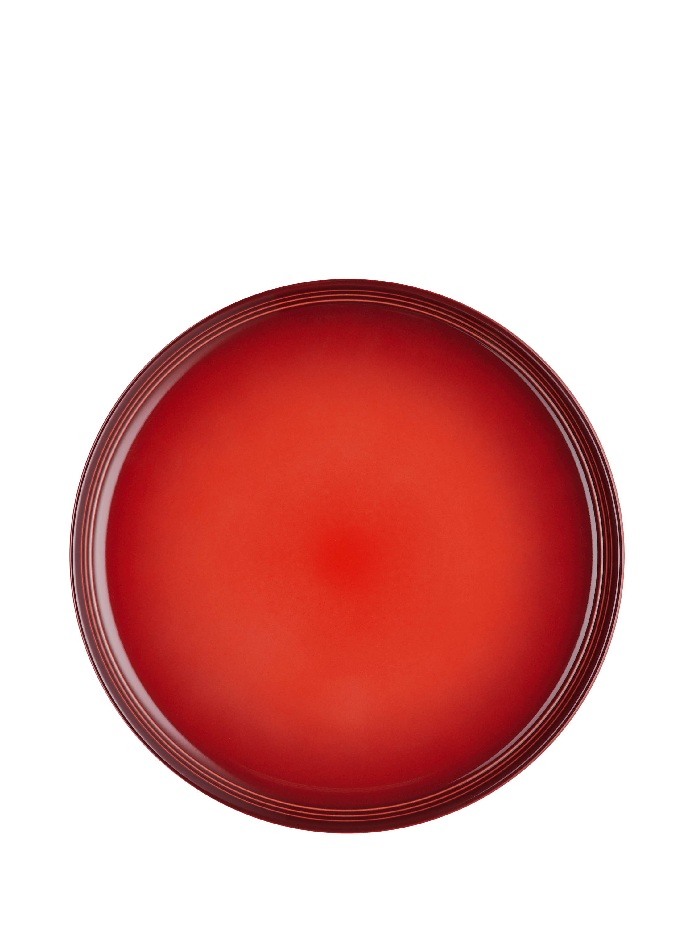 Le Creuset's distinctive three-ring branding on the rim of this coupe dinner plate defines its look.