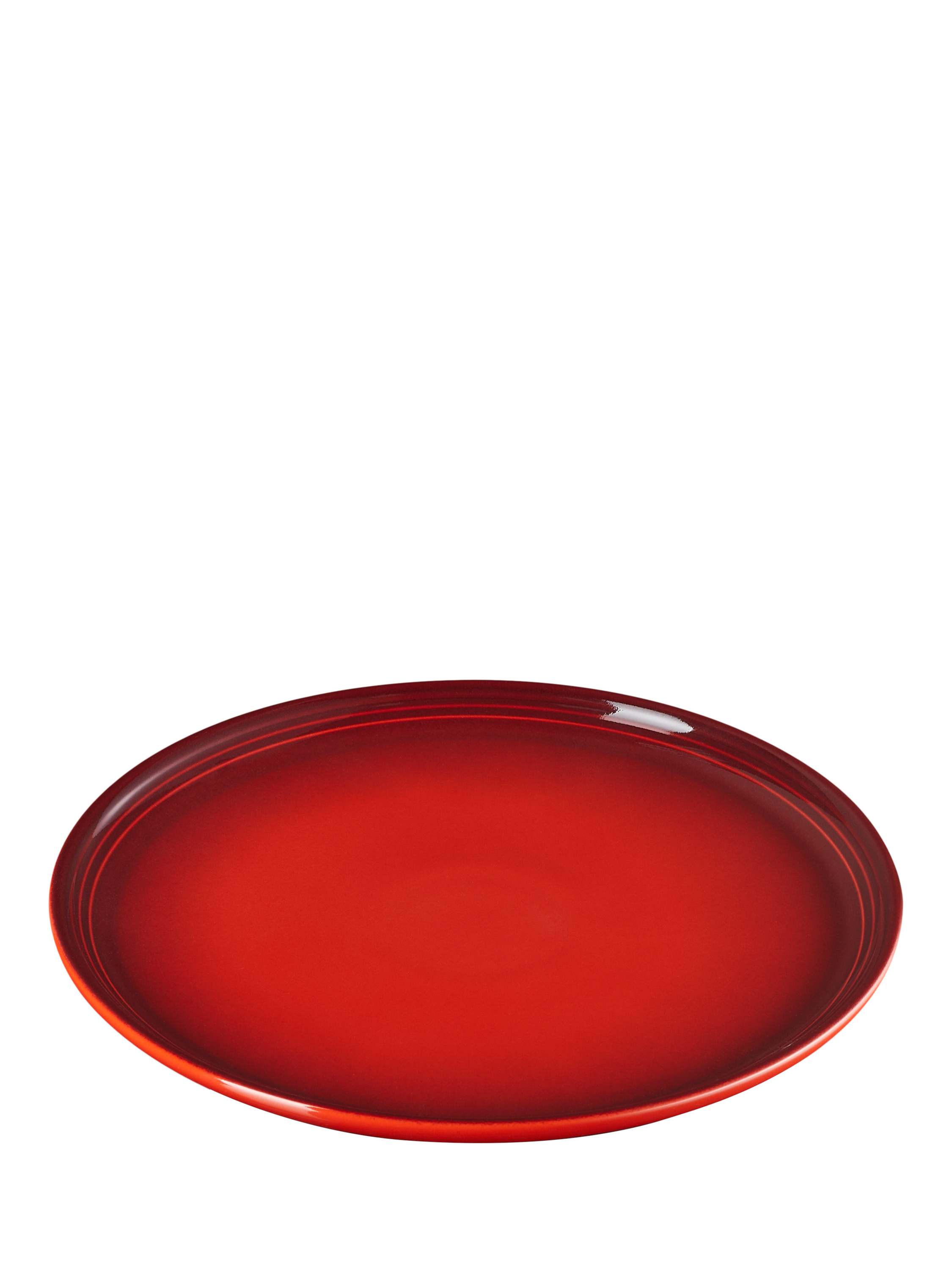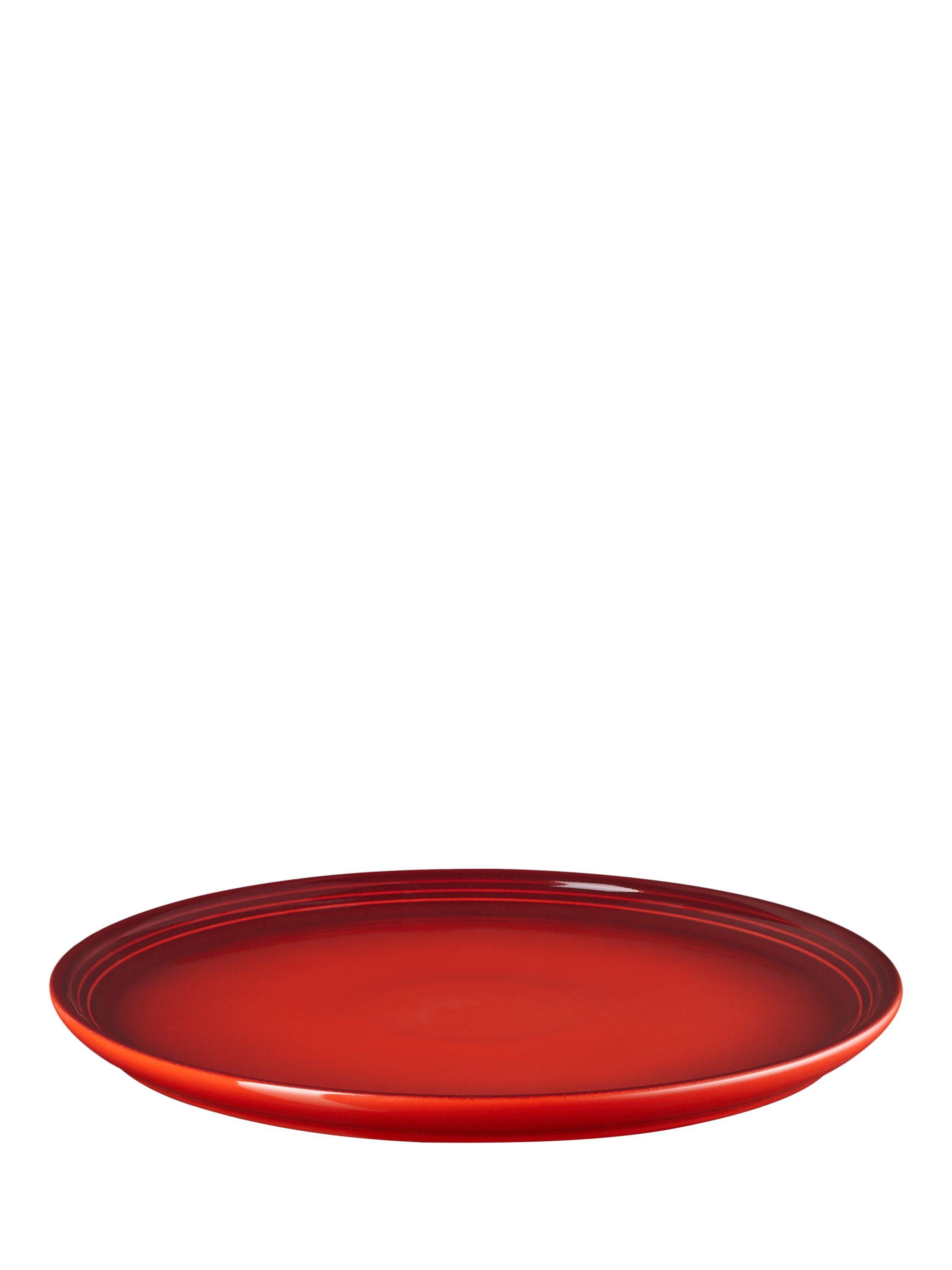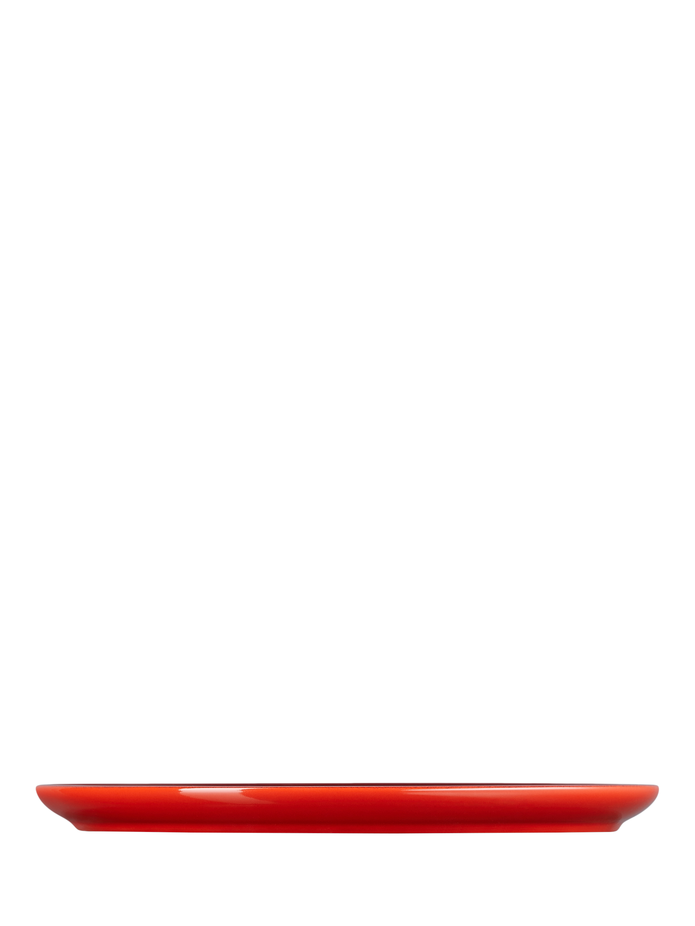 Le Creuset's distinctive three-ring branding on the rim of this coupe side plate defines its look.