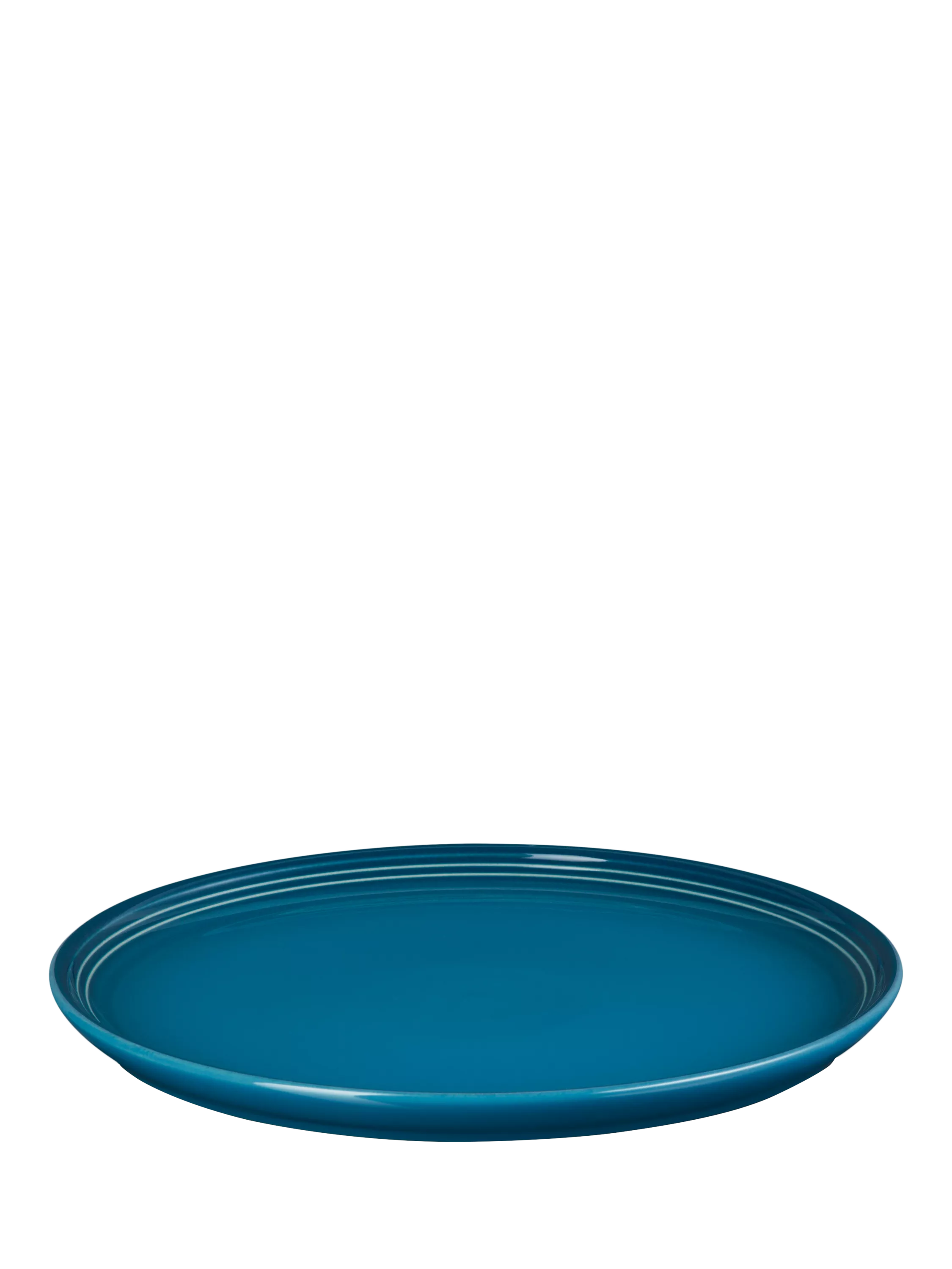 Le Creuset's distinctive three-ring branding on the rim of this coupe side plate defines its look.