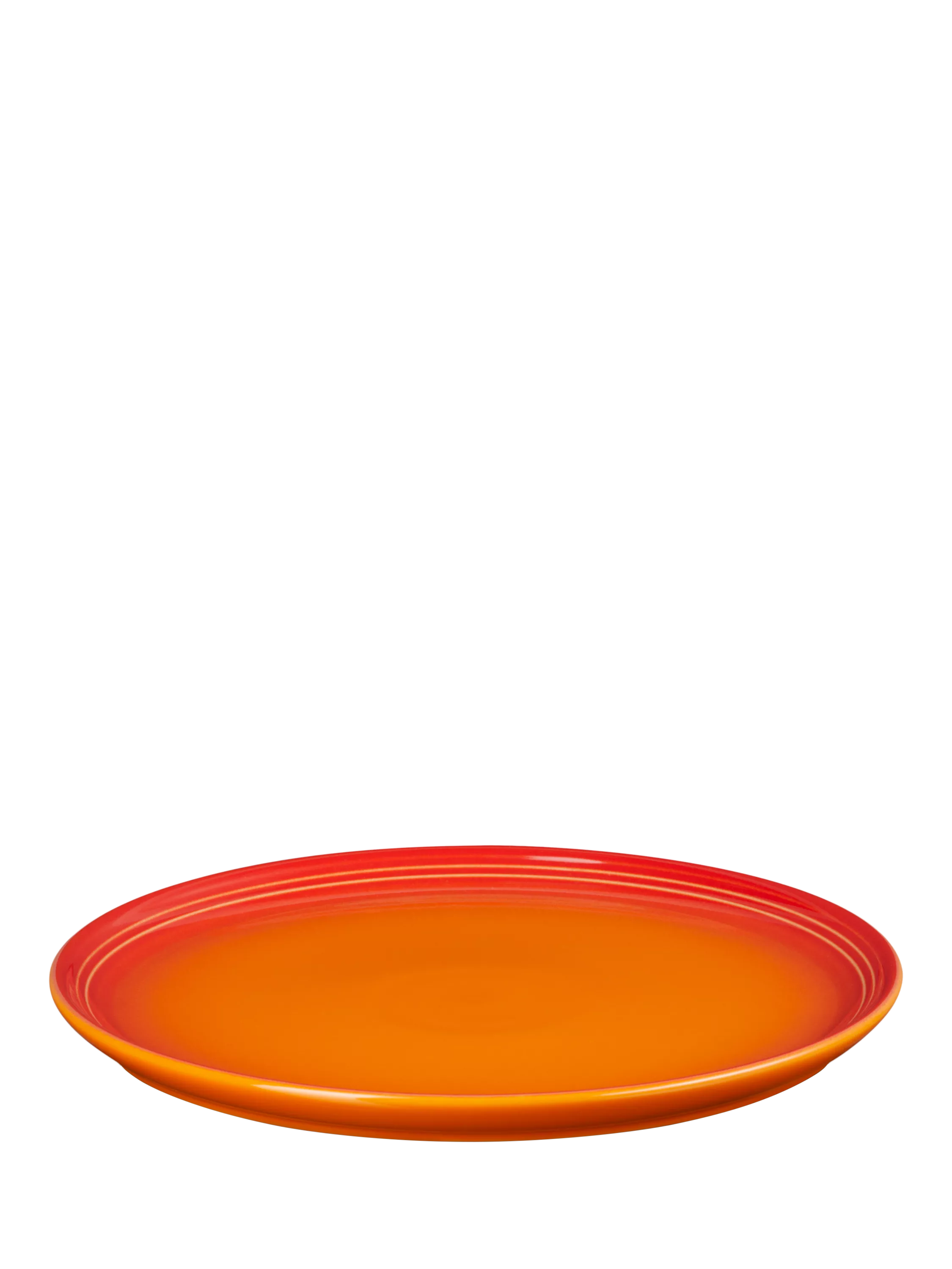 Le Creuset's distinctive three-ring branding on the rim of this coupe side plate defines its look.