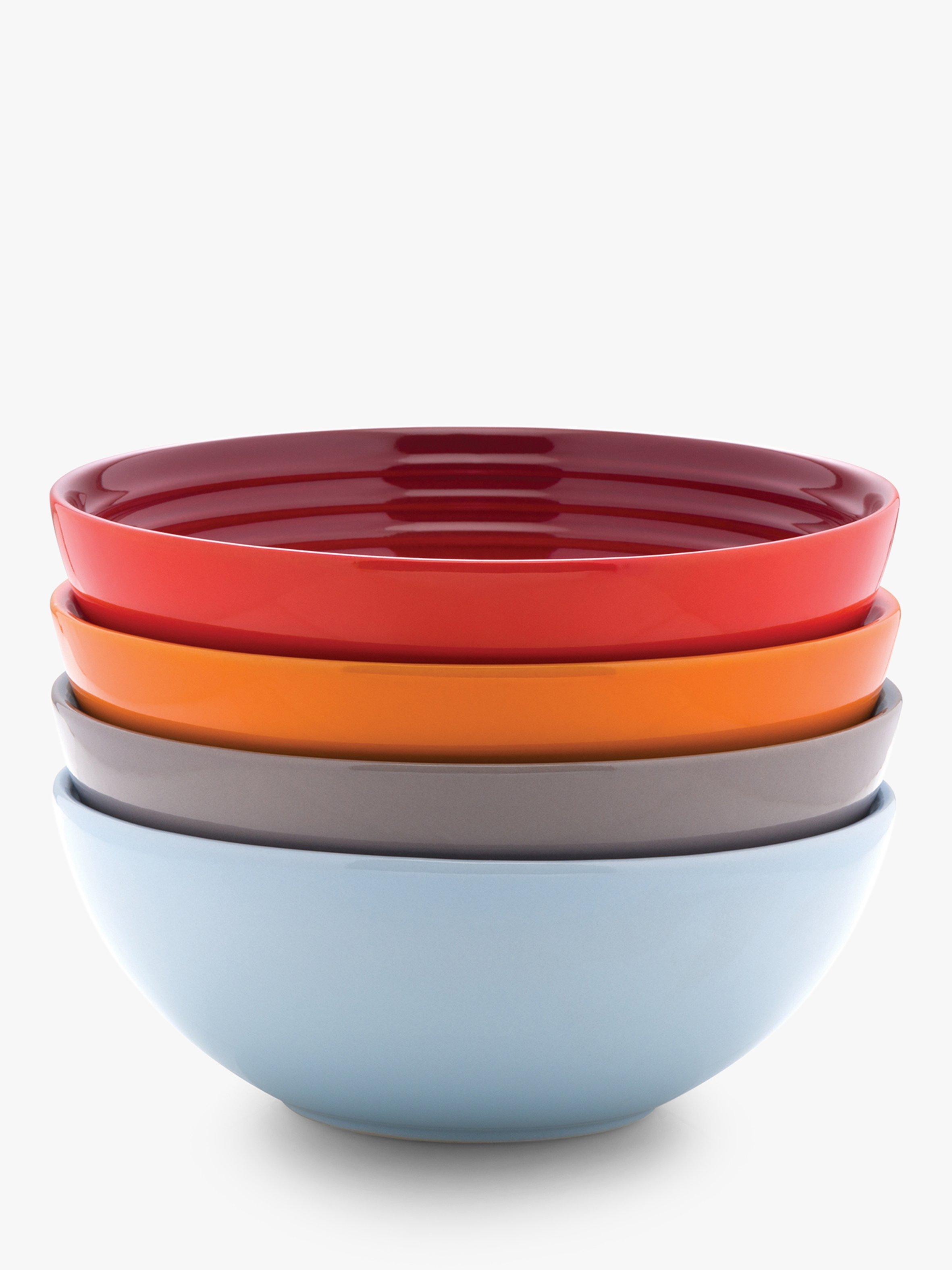 Made of stoneware, each piece is dishwasher, microwave, freezer and oven safe. Guaranteed for ten years, the set features four Le Creuset iconic colours: Volcanic, Cerise, Flint and Coastal Blue.