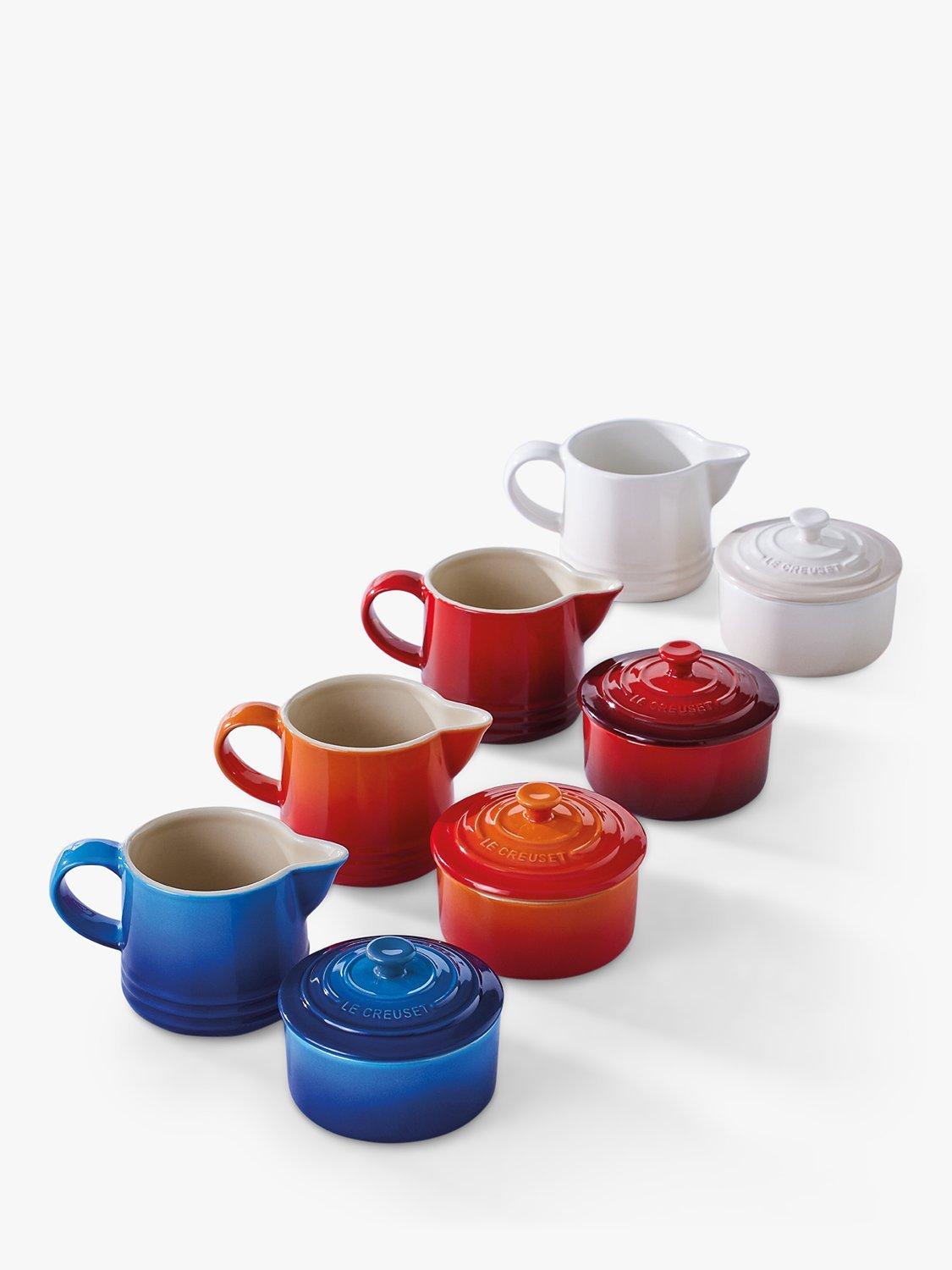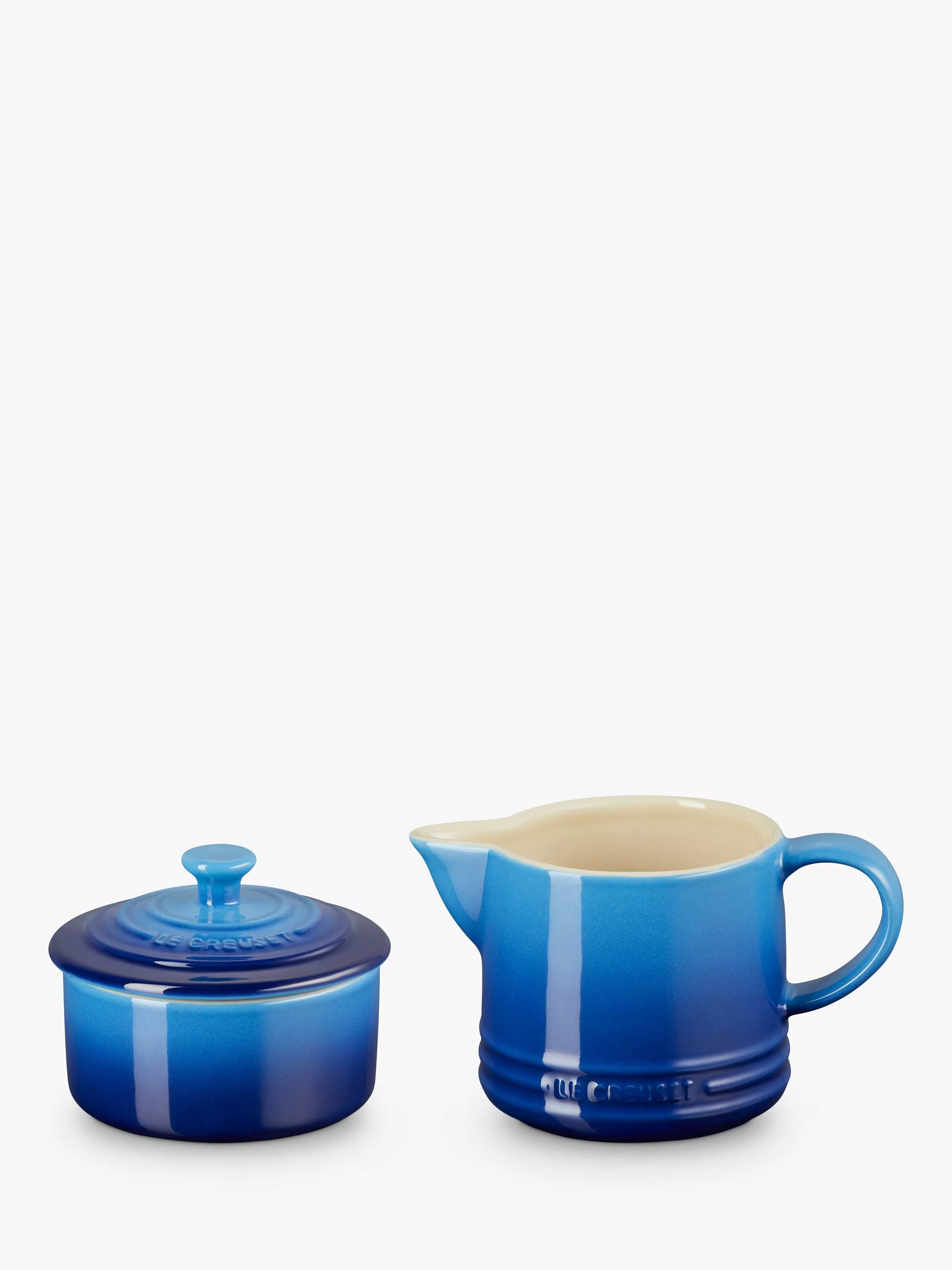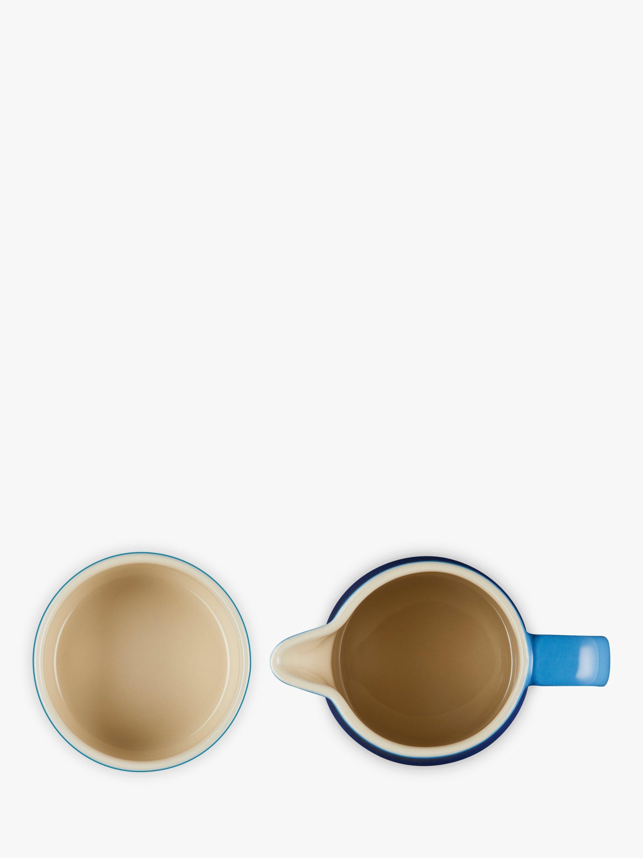 Make your coffee and tea just the way you like it with this milk and sugar set, crafted from Le Creuset stoneware and glazed to perfection. The milk pitcher's precision-pour spot paves the way for drip-free pouring, while the lidded sugar bowl keeps your favourite sugar or sweeteners handy. Ideal for gifting, they're a treasure for teatime.