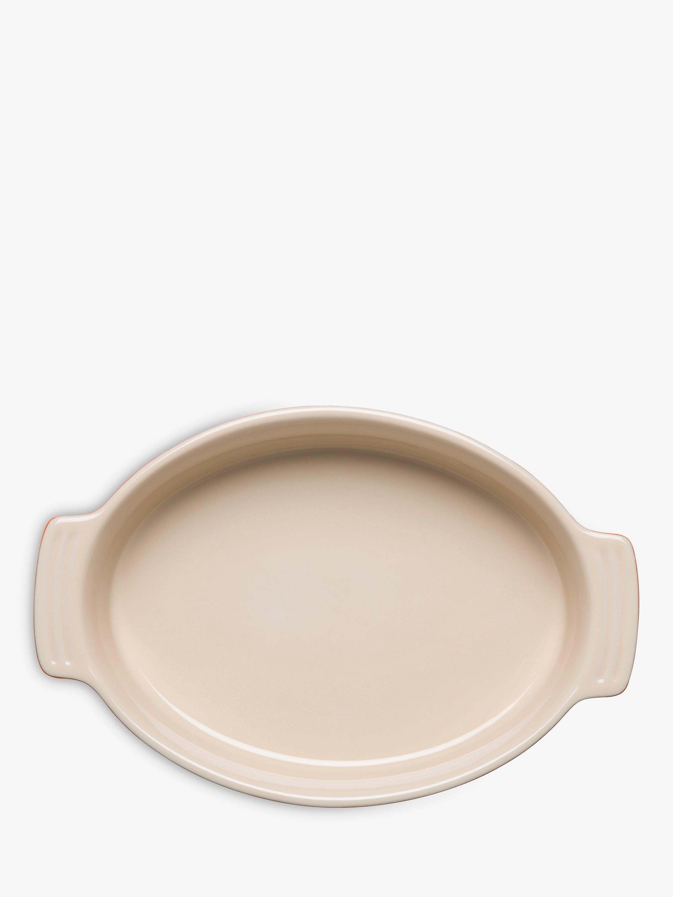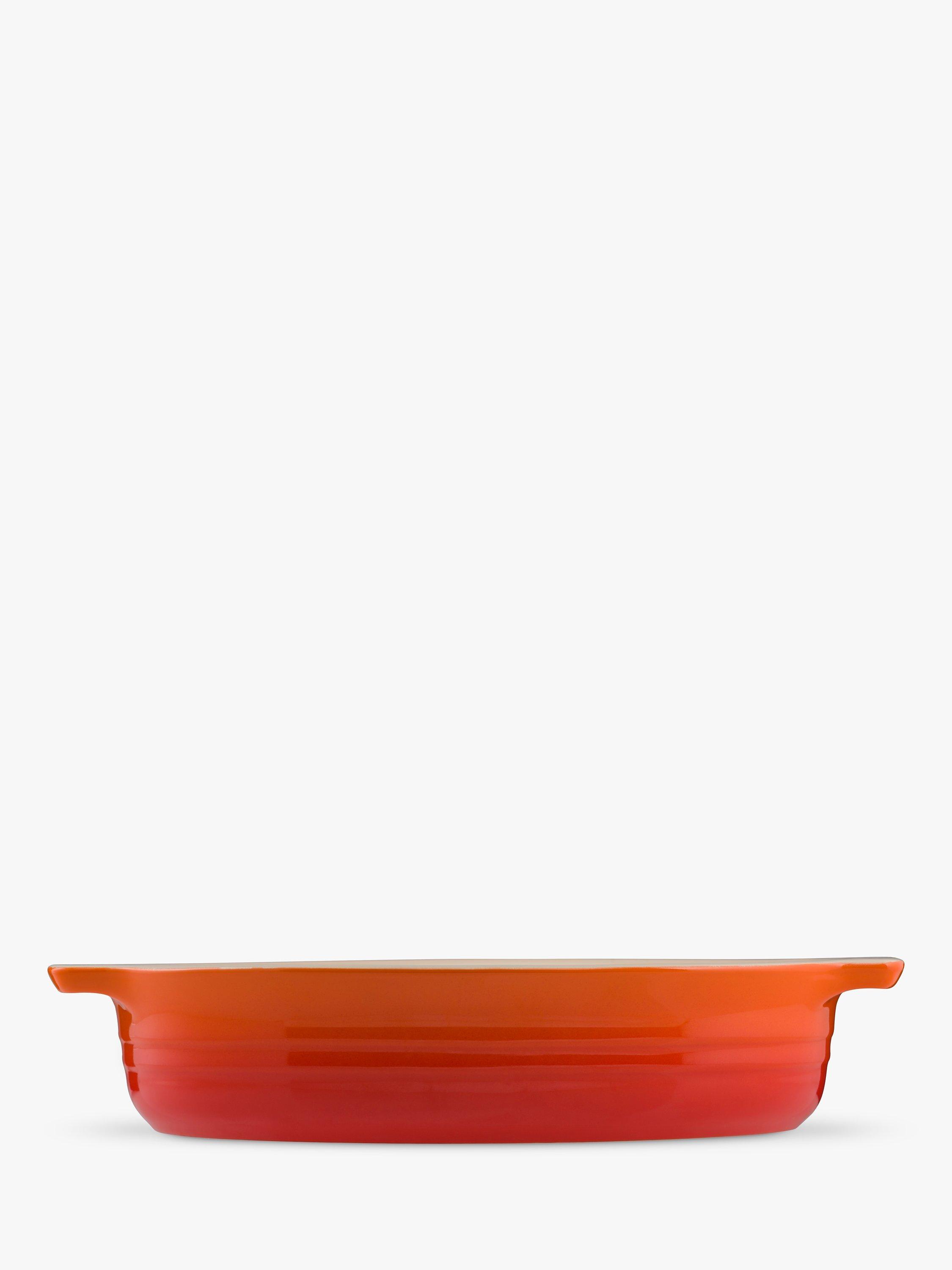 Part of Le Creuset's enduringly popular stoneware range, this dish fits neatly into the oven or fridge and its slim oval shape takes up less space. A truly all-in-one piece that you can use for baking, roasting, serving and storage, it is oven, microwave, freezer and dishwasher safe.