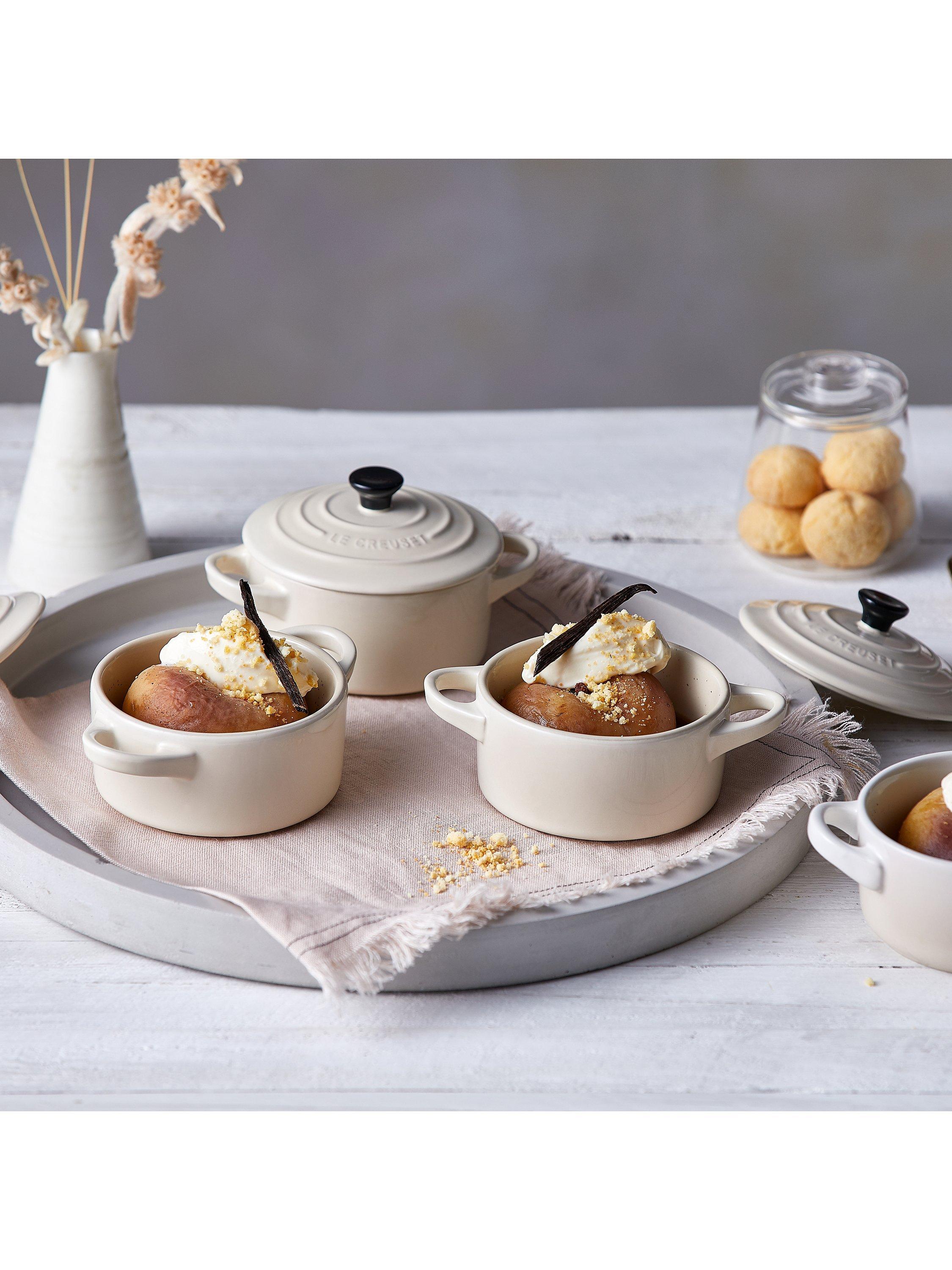 Part of Le Creuset's enduringly popular stoneware range, this mini casserole is ideal for making individual portions and serving them straight to the table. Try mini gratins, soufflés, sponge cakes, chocolate mousse or crumbles. It's also the perfect size for accenting a table with dips, condiments, cheeses, salsas and aioli. The lid makes it practical for heating up sauces in the microwave or keeping snacks fresh.