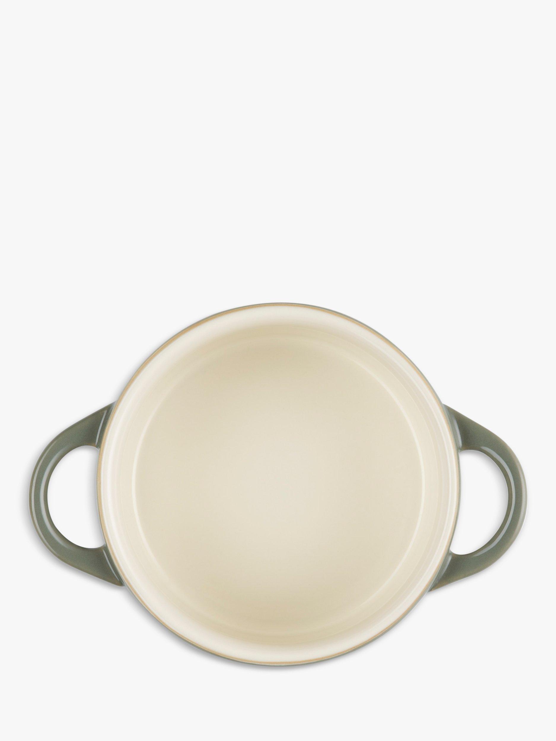 Part of Le Creuset's enduringly popular stoneware range, this mini casserole is ideal for making individual portions and serving them straight to the table. Try mini gratins, soufflés, sponge cakes, chocolate mousse or crumbles. It's also the perfect size for accenting a table with dips, condiments, cheeses, salsas and aioli. The lid makes it practical for heating up sauces in the microwave or keeping snacks fresh.