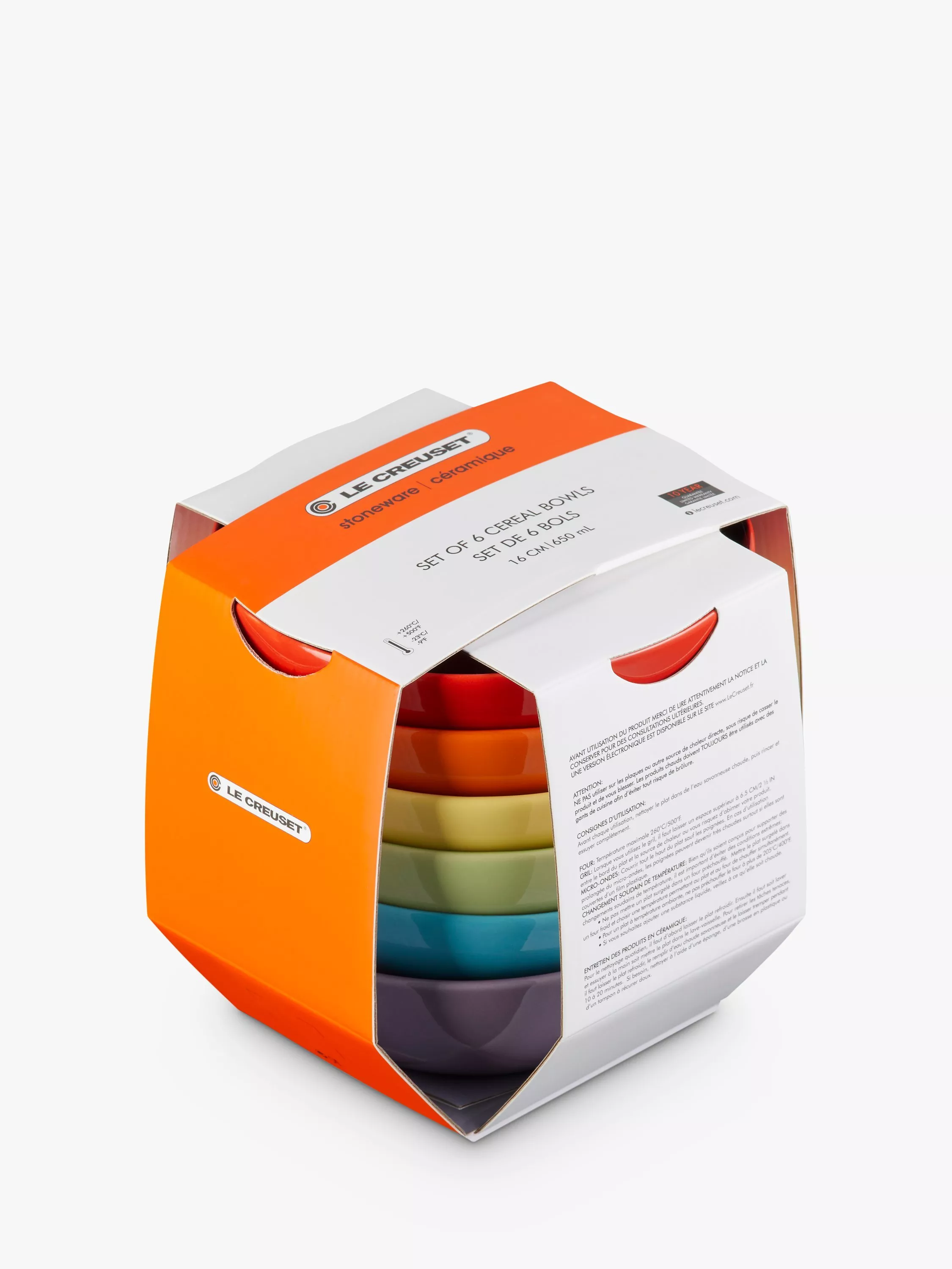 Le CreusetStoneware Rainbow Cereal Bowls, Set of 6, 16.2cm, Assorted
