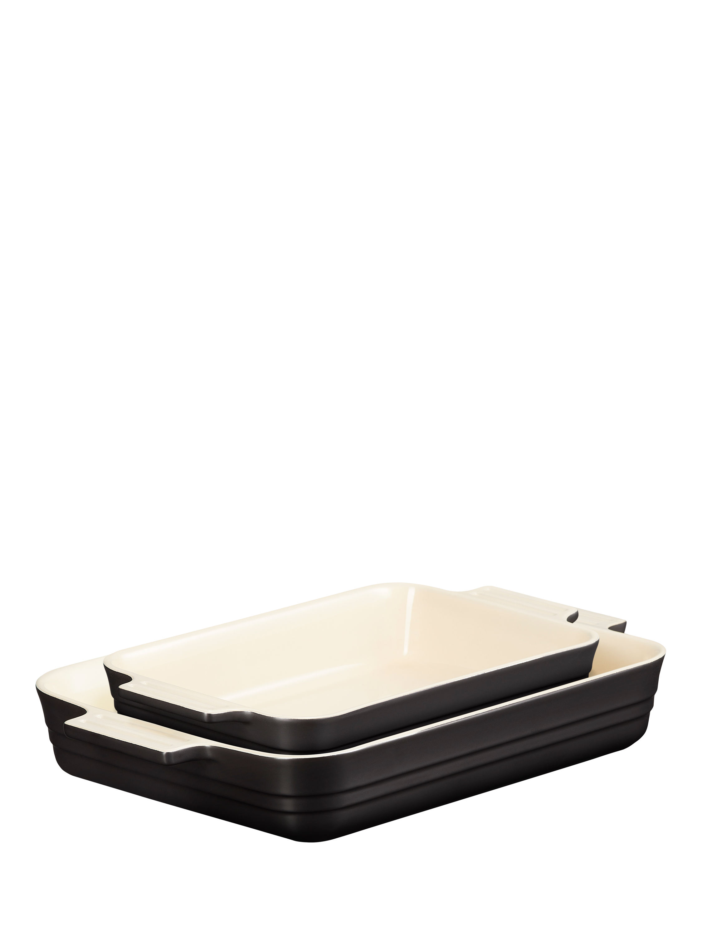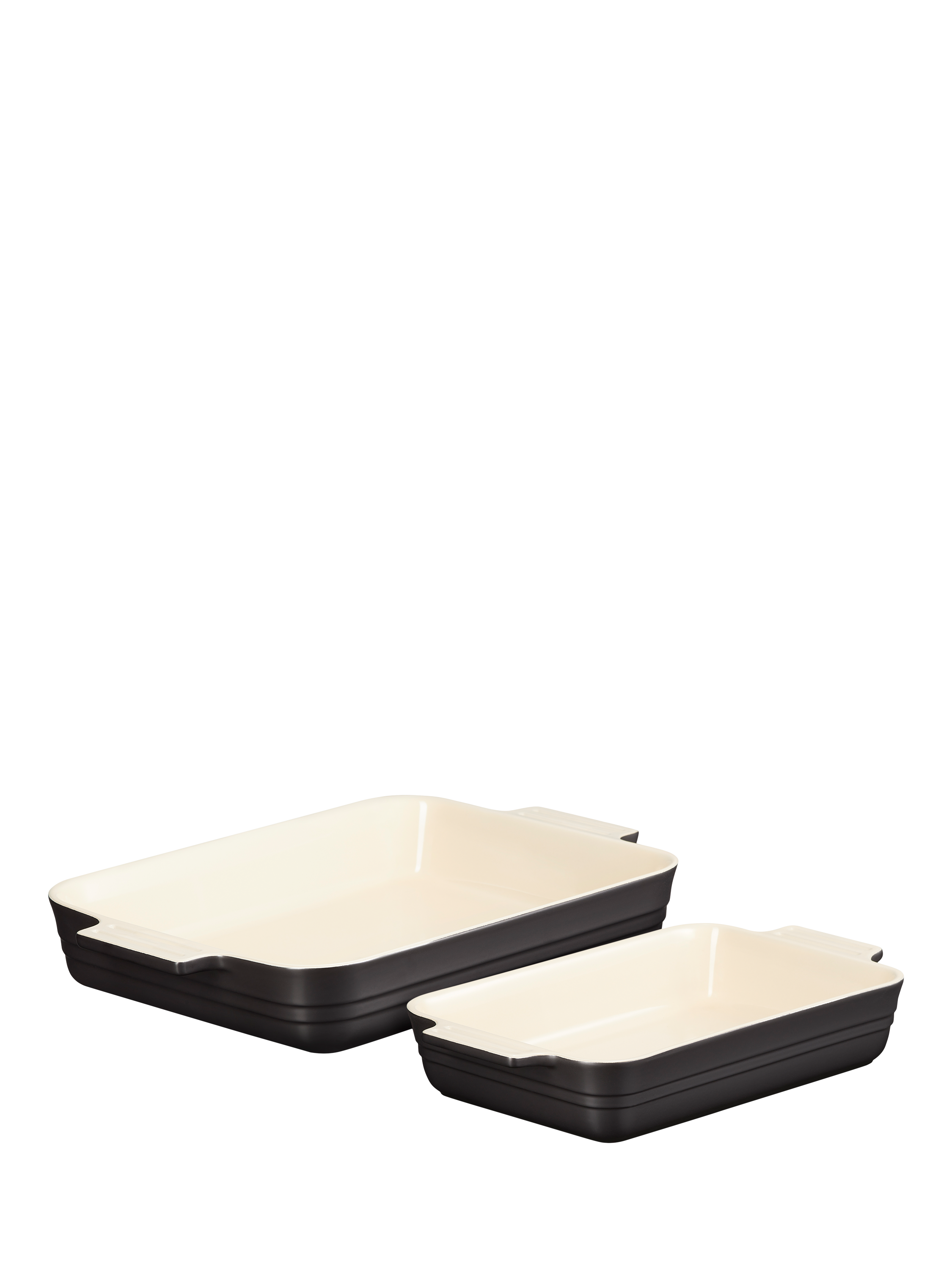 Part of Le Creuset's enduringly popular stoneware range, this pair of rectangular oven dishes nest together to save storage space. Use them for baking, roasting, serving and storage. Try them for pasta bakes, roasted vegetables, gratin and pies and for oven-to-table serving of a main and side presented in matching colours.