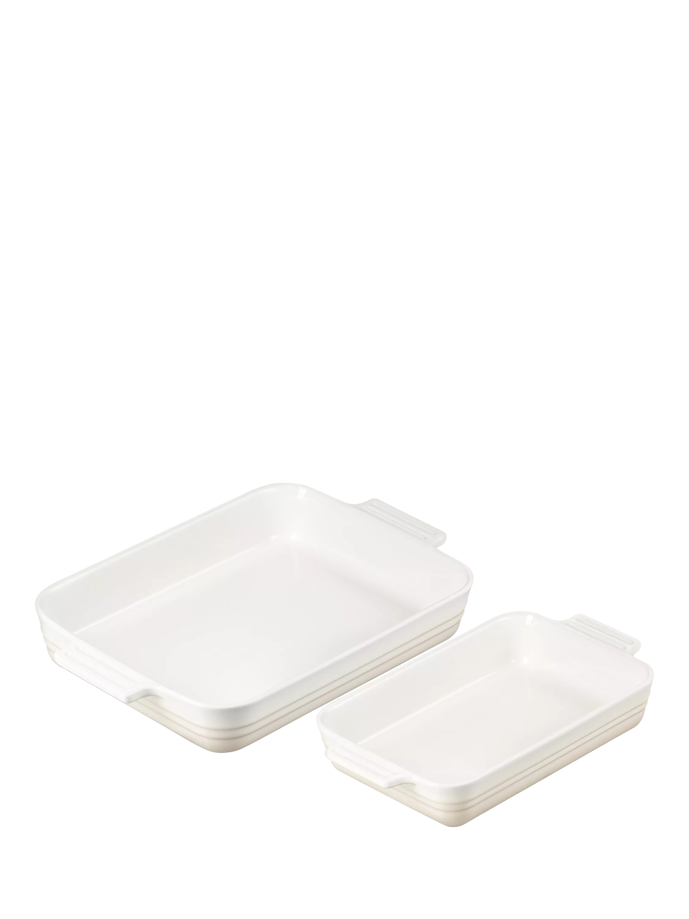 Part of Le Creuset's enduringly popular stoneware range, this pair of rectangular oven dishes nest together to save storage space. Use them for baking, roasting, serving and storage. Try them for pasta bakes, roasted vegetables, gratin and pies and for oven-to-table serving of a main and side presented in matching colours.