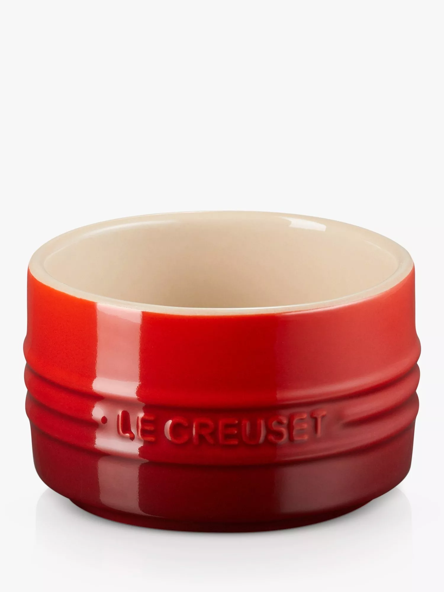 Crafted from famous Le Creuset stoneware for a robust and high-quality finish, this ramekin is suitable for serving and cooking a wide range of recipes. It's stackable with similar stoneware ramekins to save space, and it's ideal for serving individual portions or shared sauces and food.