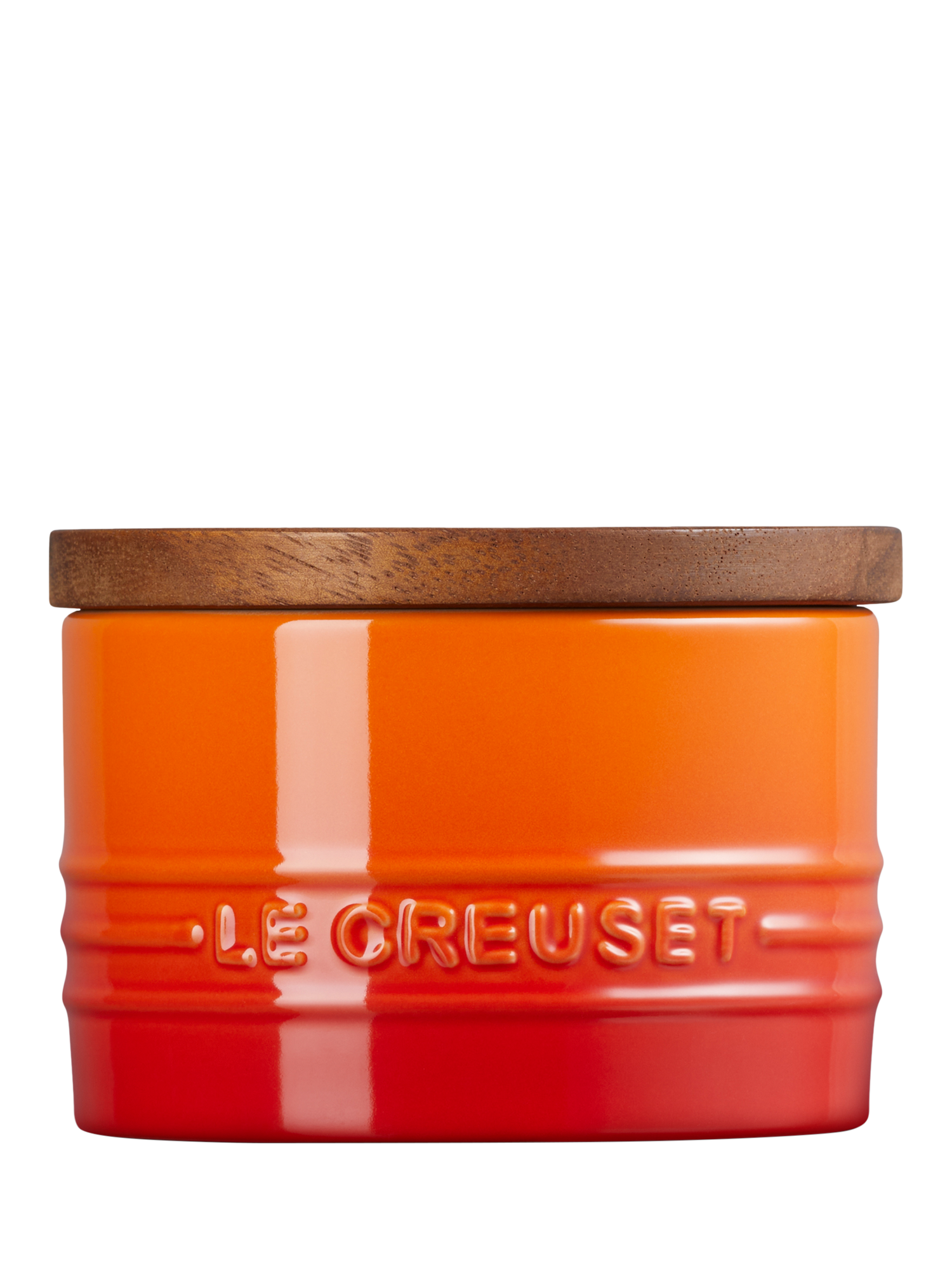The container is stackable with similar Le Creuset containers for better use of cupboard and shelf space. The acacia wood lid is designed to perfectly fit the jar with its silicone seal. This jar is a wonderful way to add a pop of Le Creuset colour and functionality to your cooking space.
