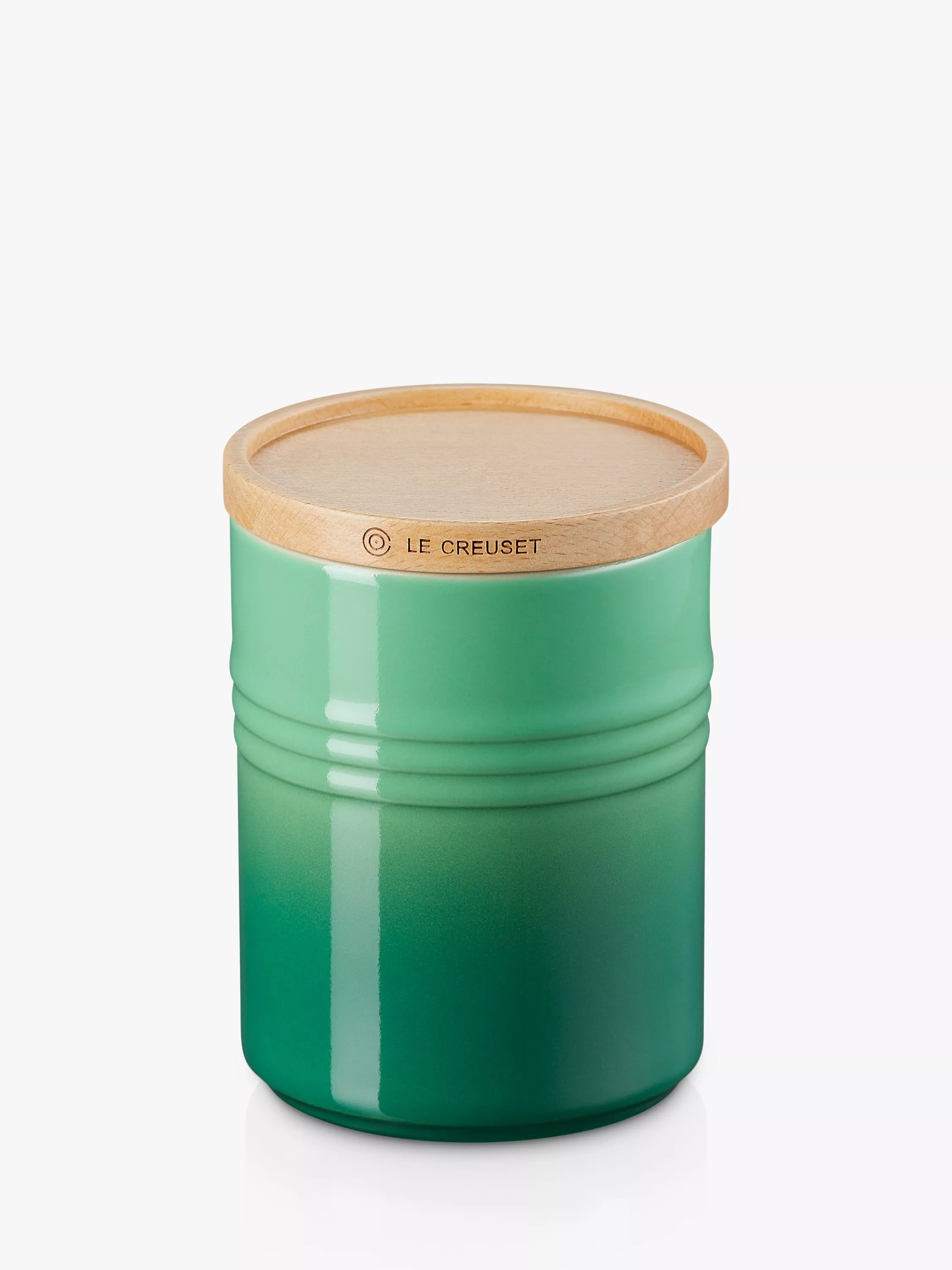 The container is stackable with similar Le Creuset containers for better use of cupboard and shelf space. The wooden lid is designed to perfectly fit and seal the jar. This jar is a wonderful way to add a pop of Le Creuset colour and functionality to your cooking space.