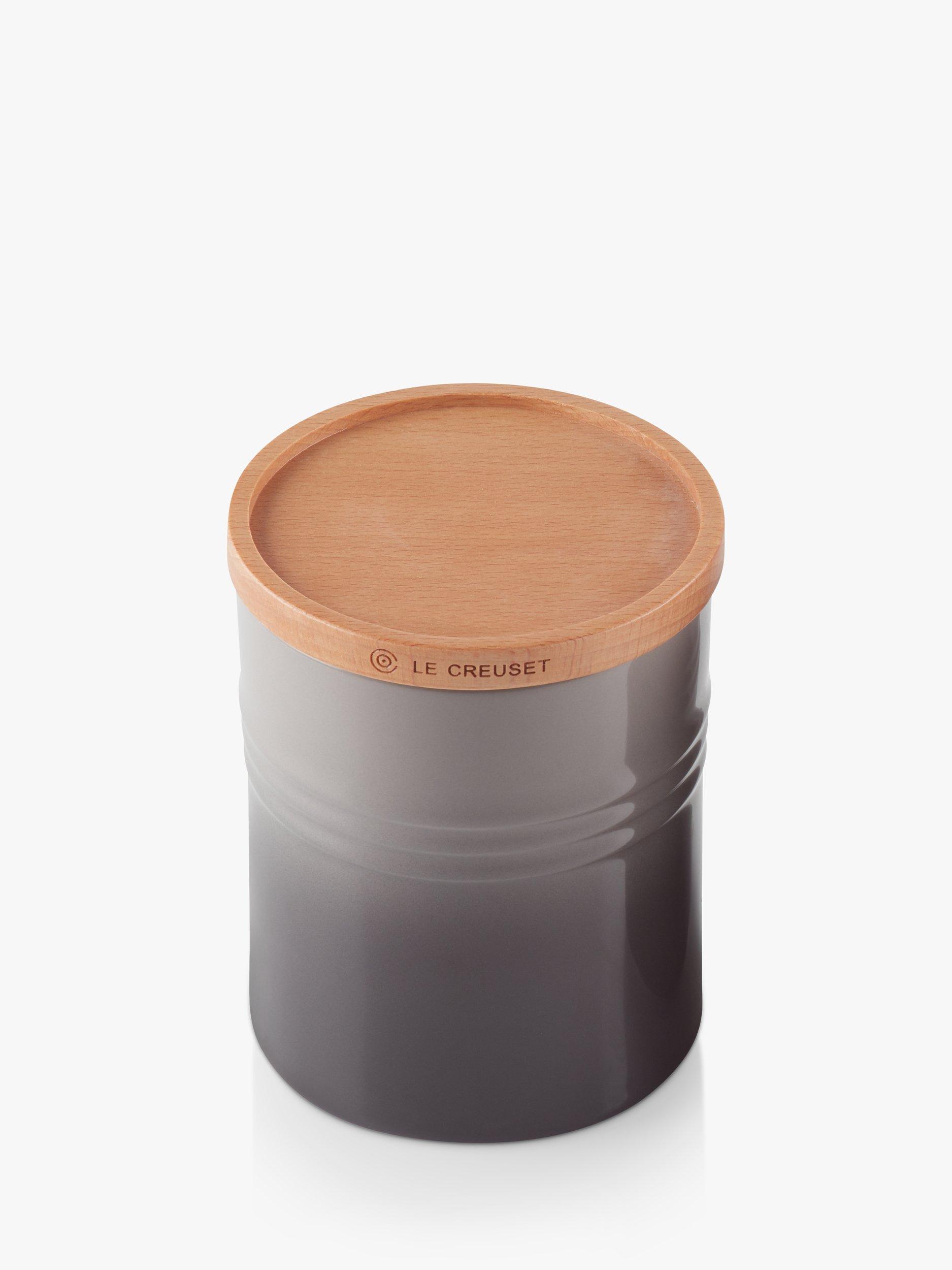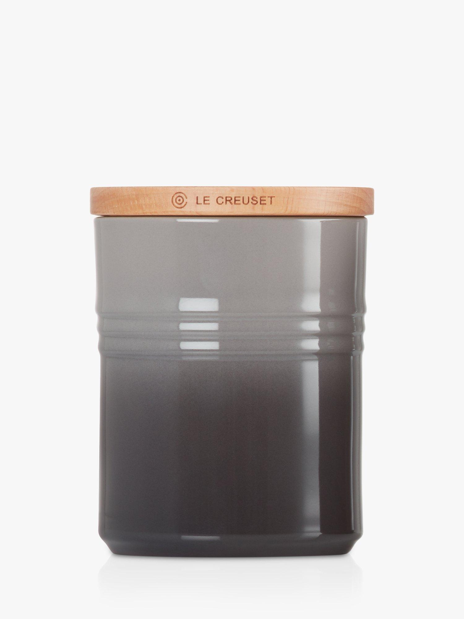 The container is stackable with similar Le Creuset containers for better use of cupboard and shelf space. The wooden lid is designed to perfectly fit and seal the jar. This jar is a wonderful way to add a pop of Le Creuset colour and functionality to your cooking space.