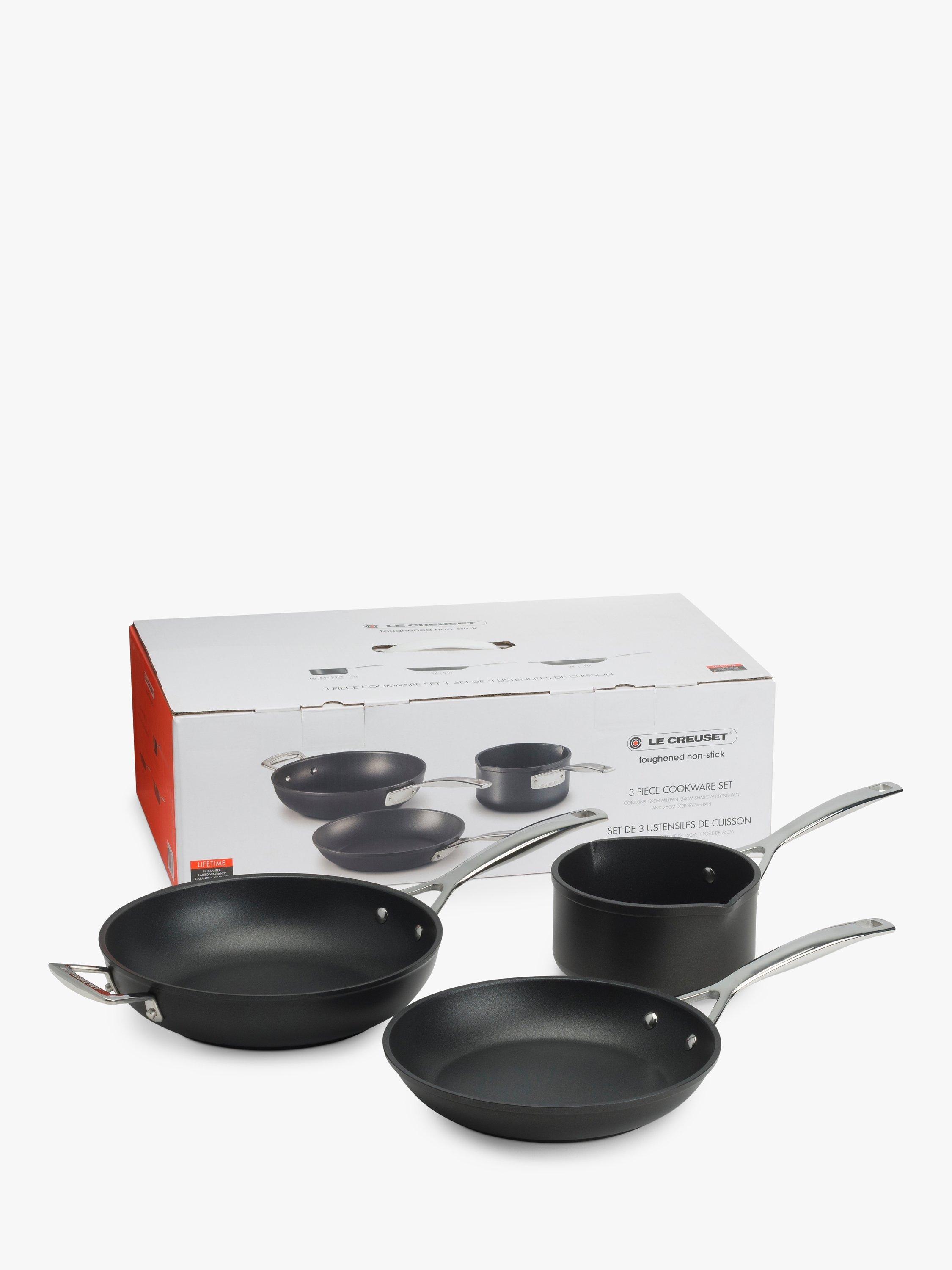 The perfect introduction to the Toughened Non-Stick range from Le Creuset, this three-piece cookware set contains a 16cm Milk Pan, 24cm Shallow Frying Pan and 26cm Deep Frying Pan.