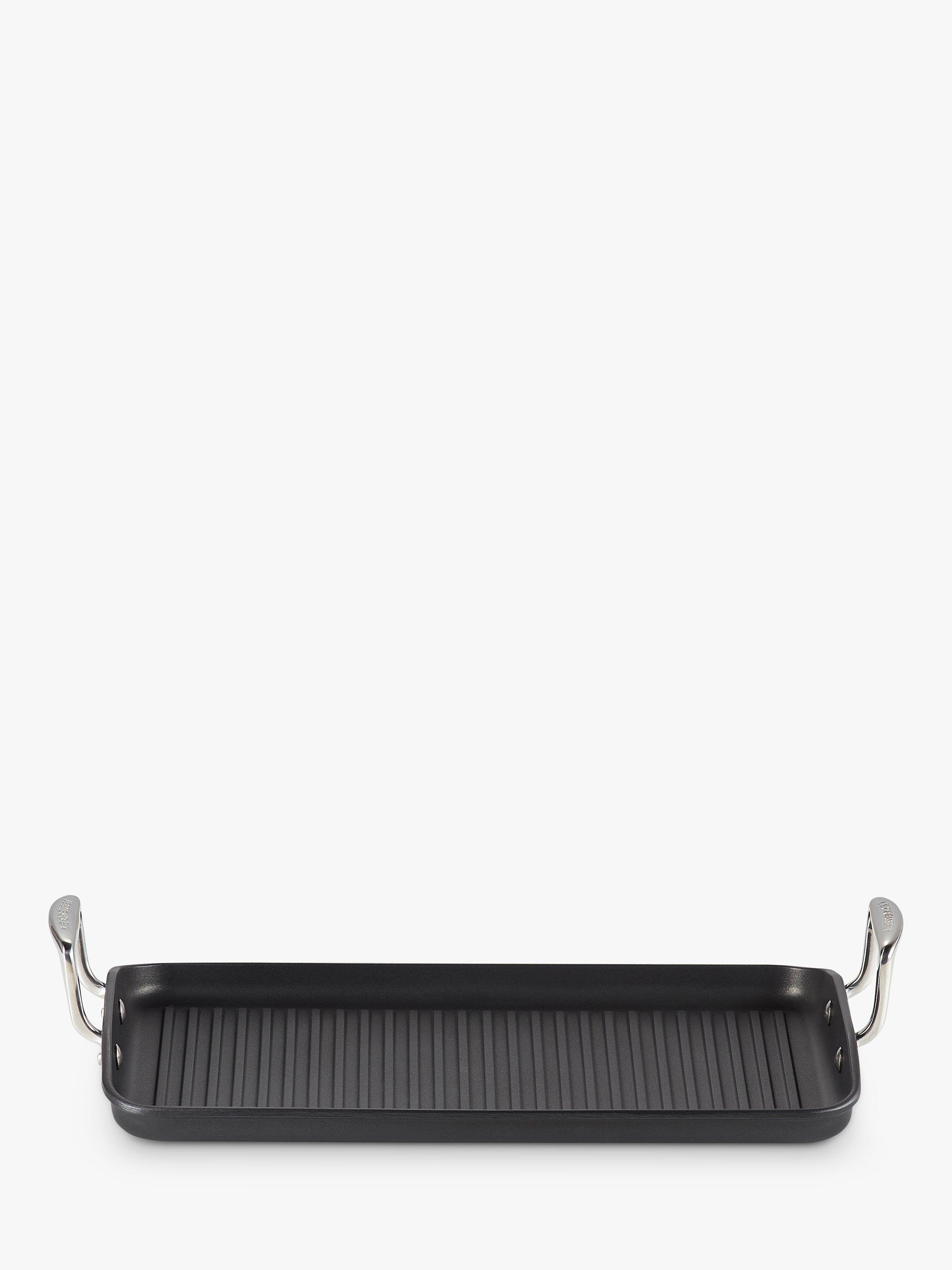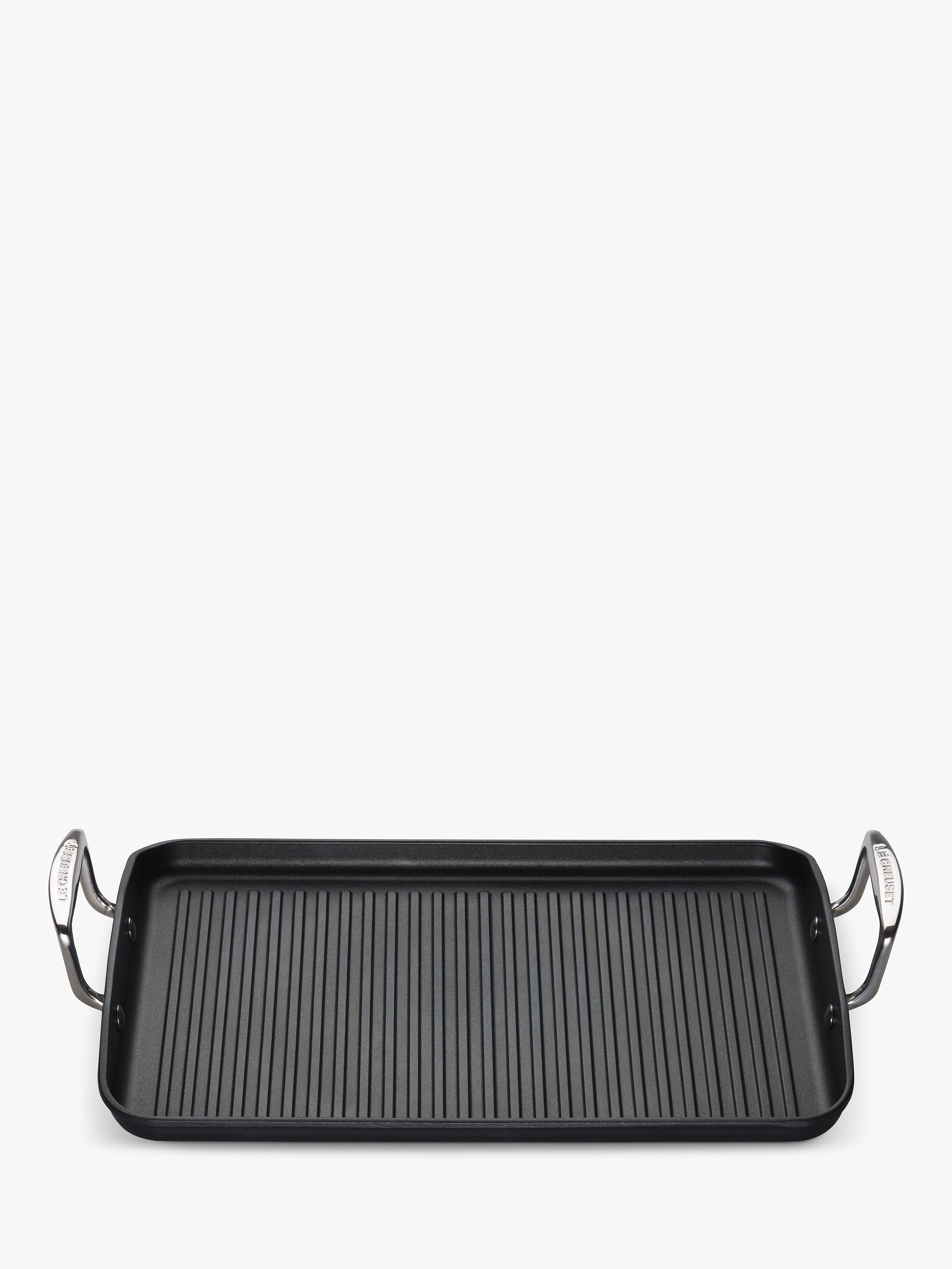 The Toughened Non-Stick Ribbed Rectangular Grill from Le Creuset is ideal for searing meat, fish or vegetables quickly, with little or no fat or oil, for delicious, healthy cooking. The ribbed base allows any juices and oils to drain away from the food, whilst giving professional-looking sear lines to your steaks, skewers and brochettes.