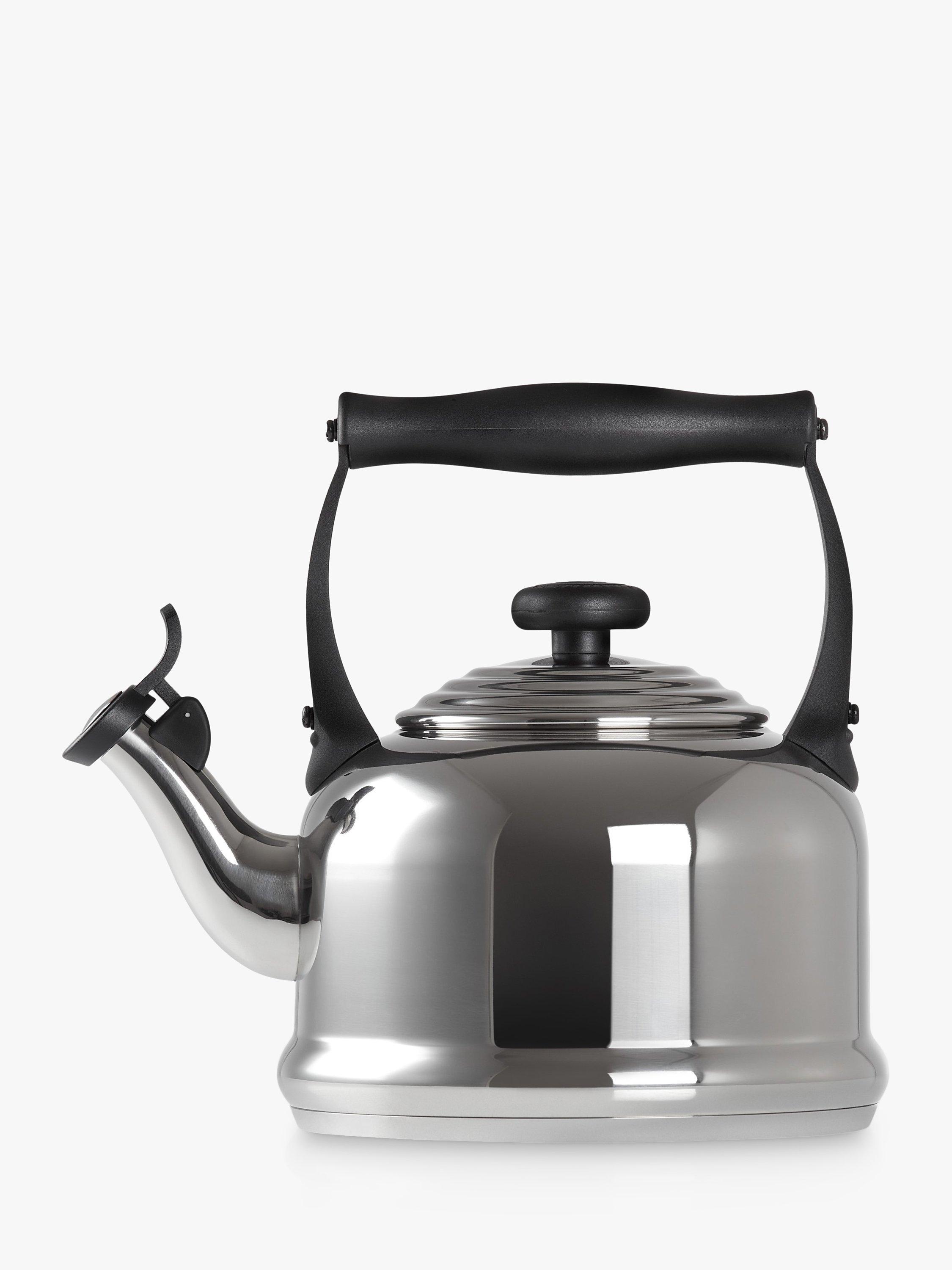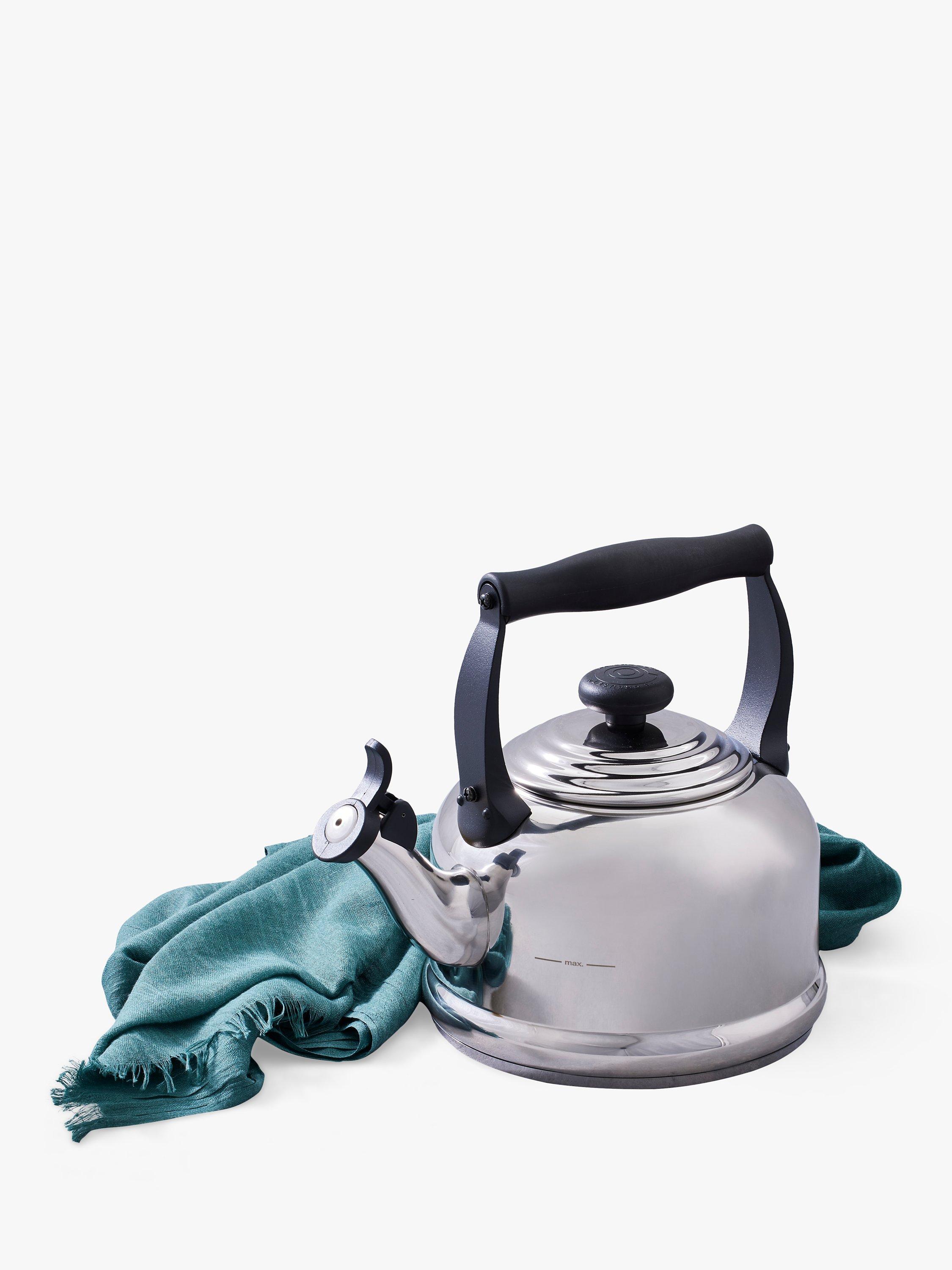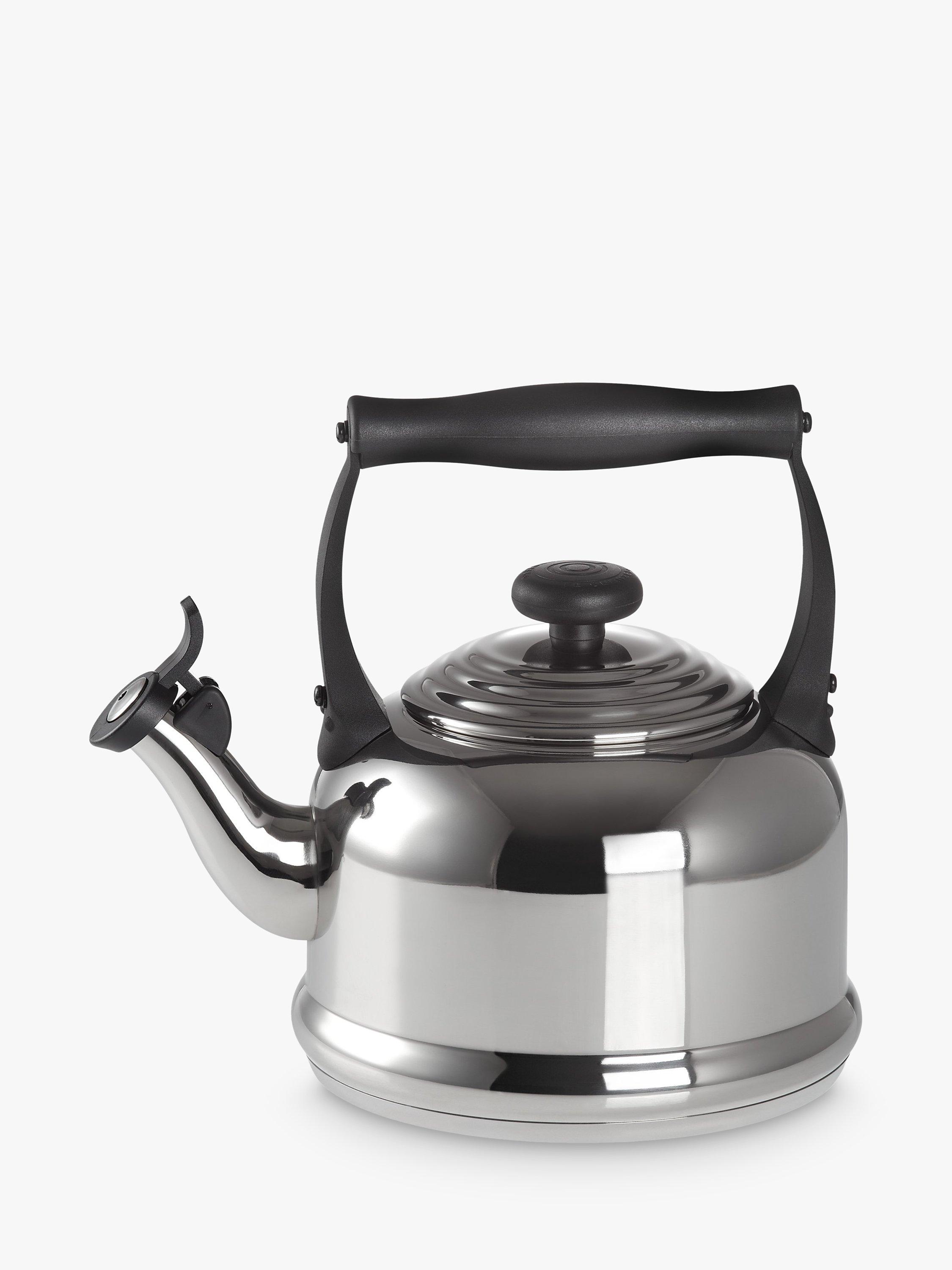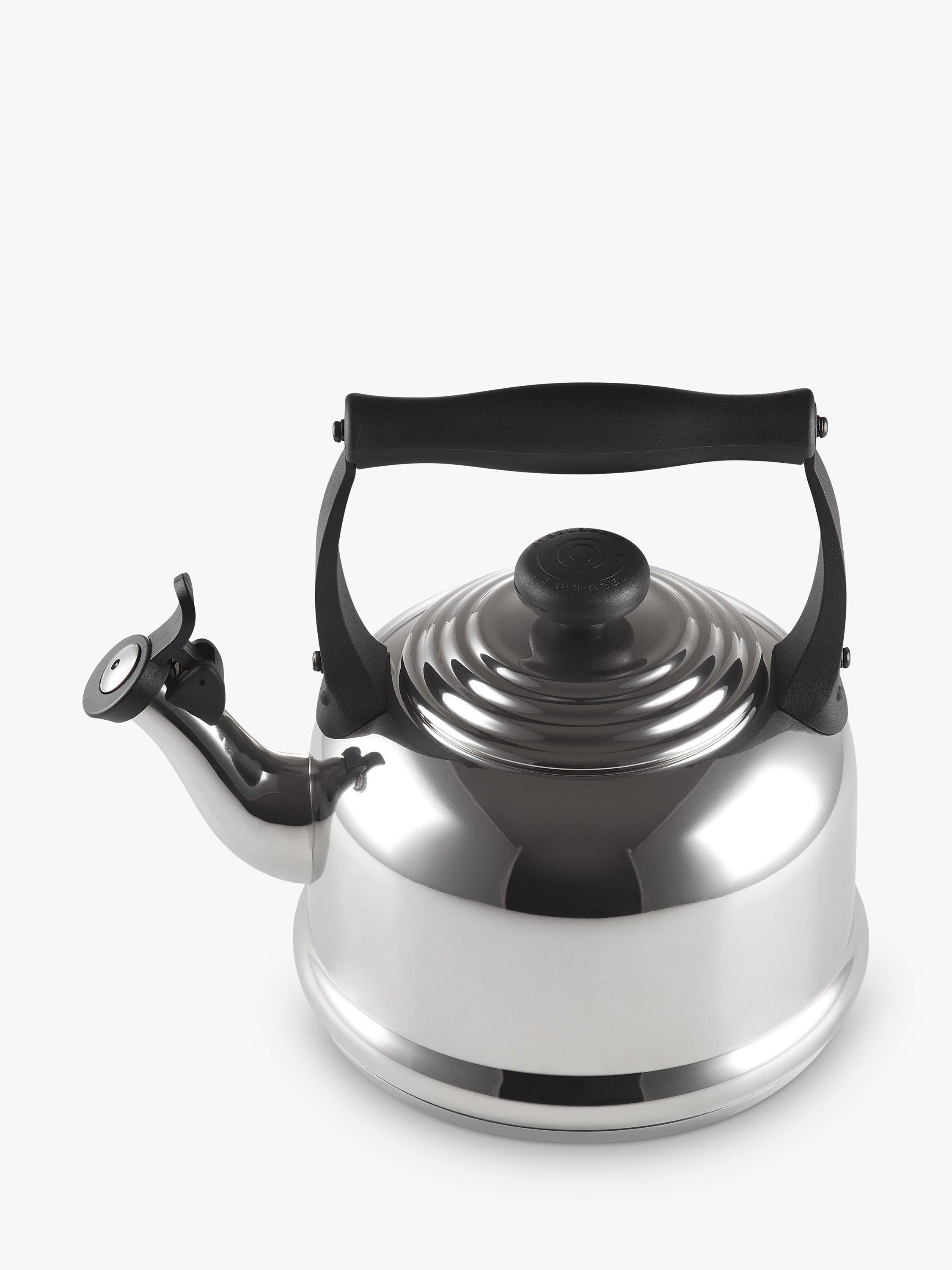 This traditional-style enamelled stovetop kettle from Le Creuset has a wide base for fast and efficient heating. A whistle lets you know when the water has come to a boil.