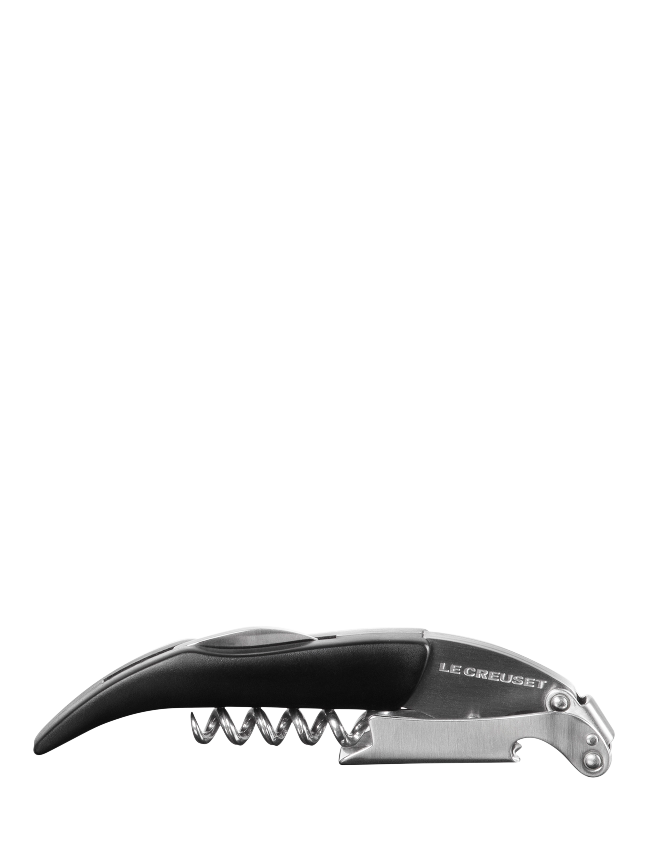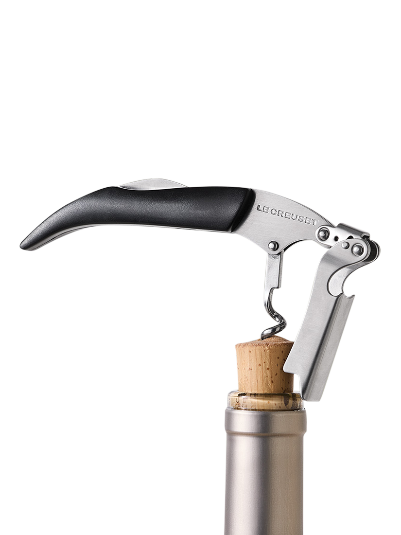 The elegant one-step design allows for optimal leverage when removing corks, and the coated stainless steel screw slides easily into all corks, natural or synthetic. A foldable foil cutter blade and built-in bottle opener make this a multi-purpose tool.