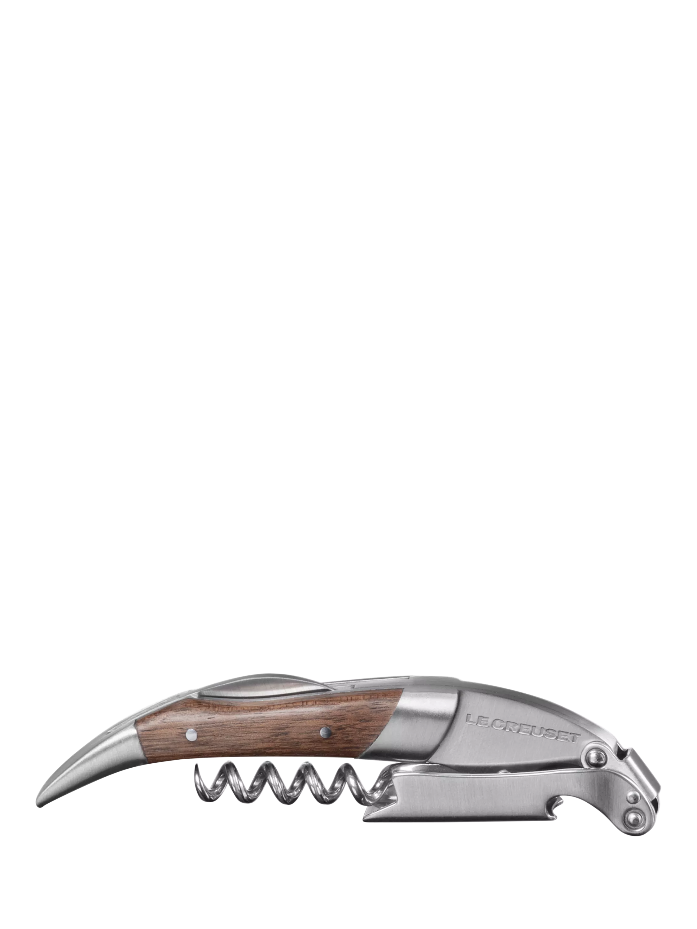 The elegant one-step design allows for optimal leverage when removing corks, and the coated stainless steel screw slides easily into all corks, natural or synthetic. A foldable foil cutter blade and built-in bottle opener make this a multi-purpose tool.