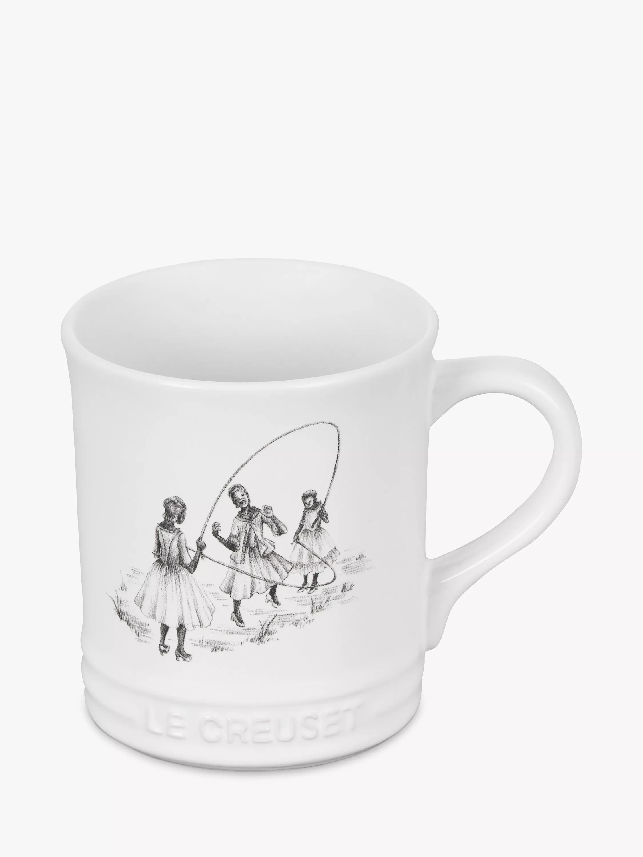 Le Creusetx Sheila Bridges Collection Harlem Toile de Jouy Girls Jumping Rope Stoneware Mug, 400ml, Black/White