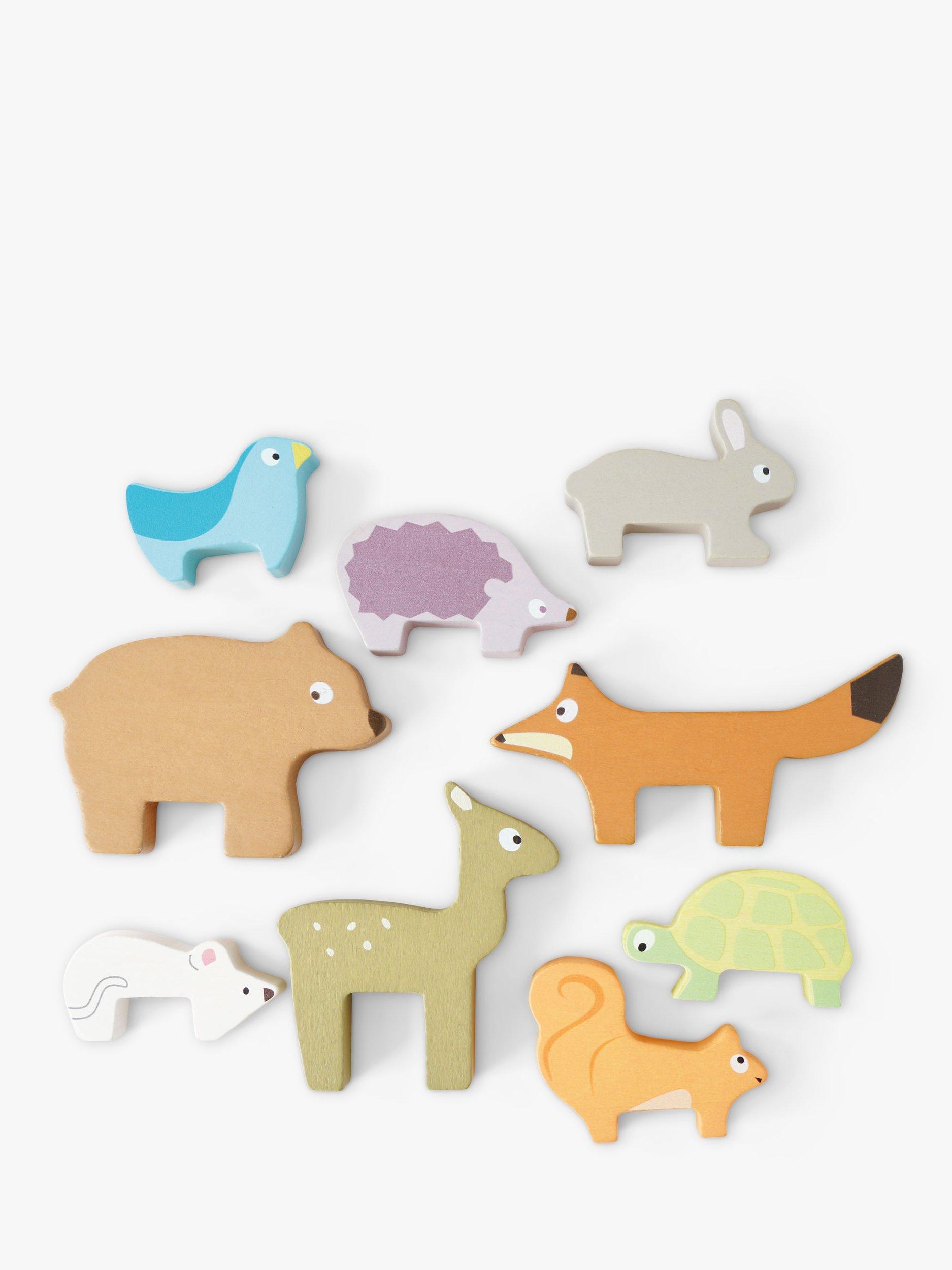 Painted in colourful hues using non-toxic paints, this cute set comprises nine wooden chunky animal-shaped blocks, perfectly sized for small hands to grasp and includes a fox, rabbit, hedgehog, bear, mouse, tortoise, squirrel, deer and bird.