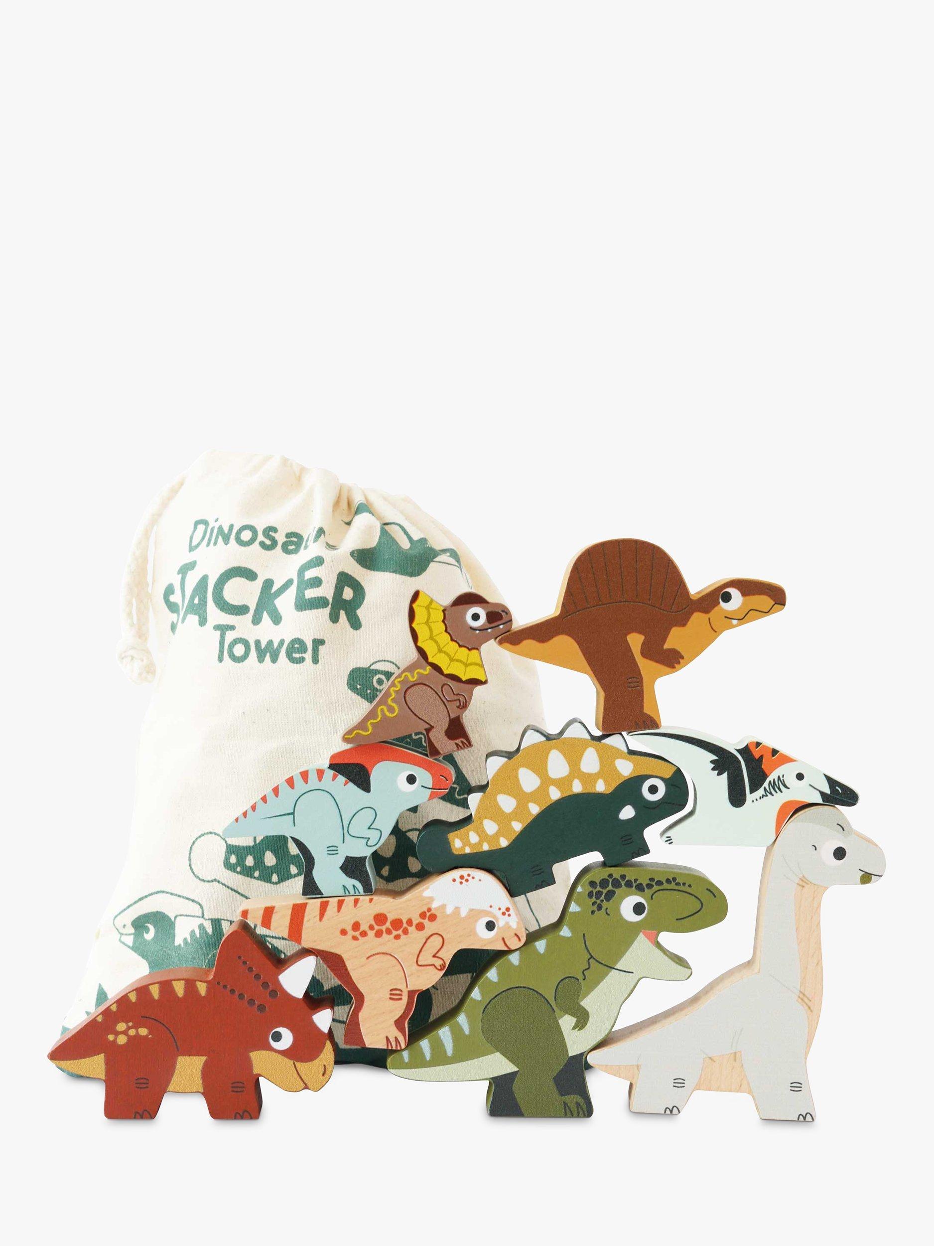 These 9 wooden stacking dinosaurs will captivate little ones in prehistoric learning based play. With one side showing detailed dinos the other reveals intricate fossils. Plastic free and painted in non-toxic water based paint. Made from FSC wood.