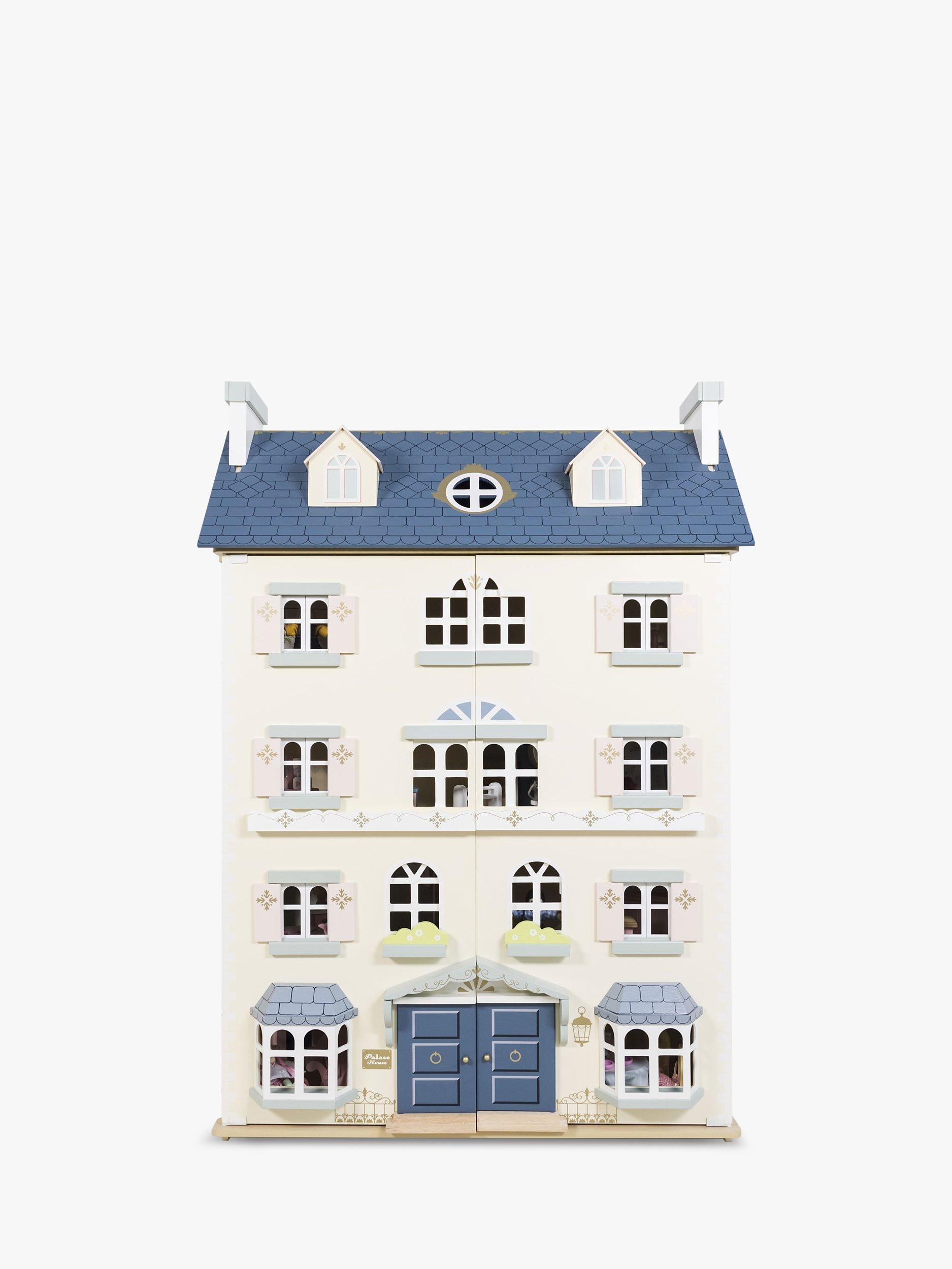 A truly palatial doll house, fit for royalty. Featuring five floors, an array of window styles, unique wallpapers in each room, back windows to let the light shine through, beautiful staircases and an impressive regal double front door.