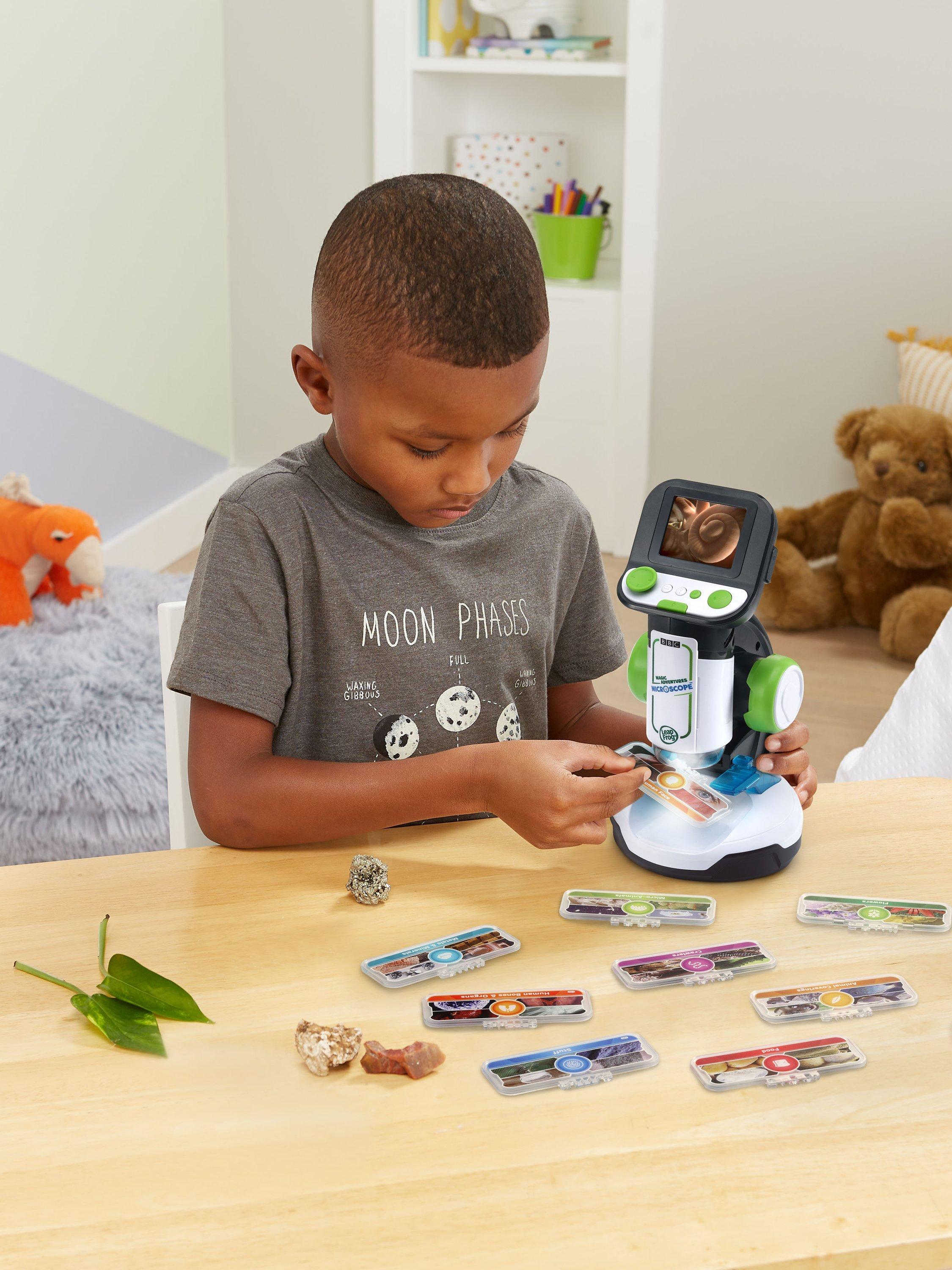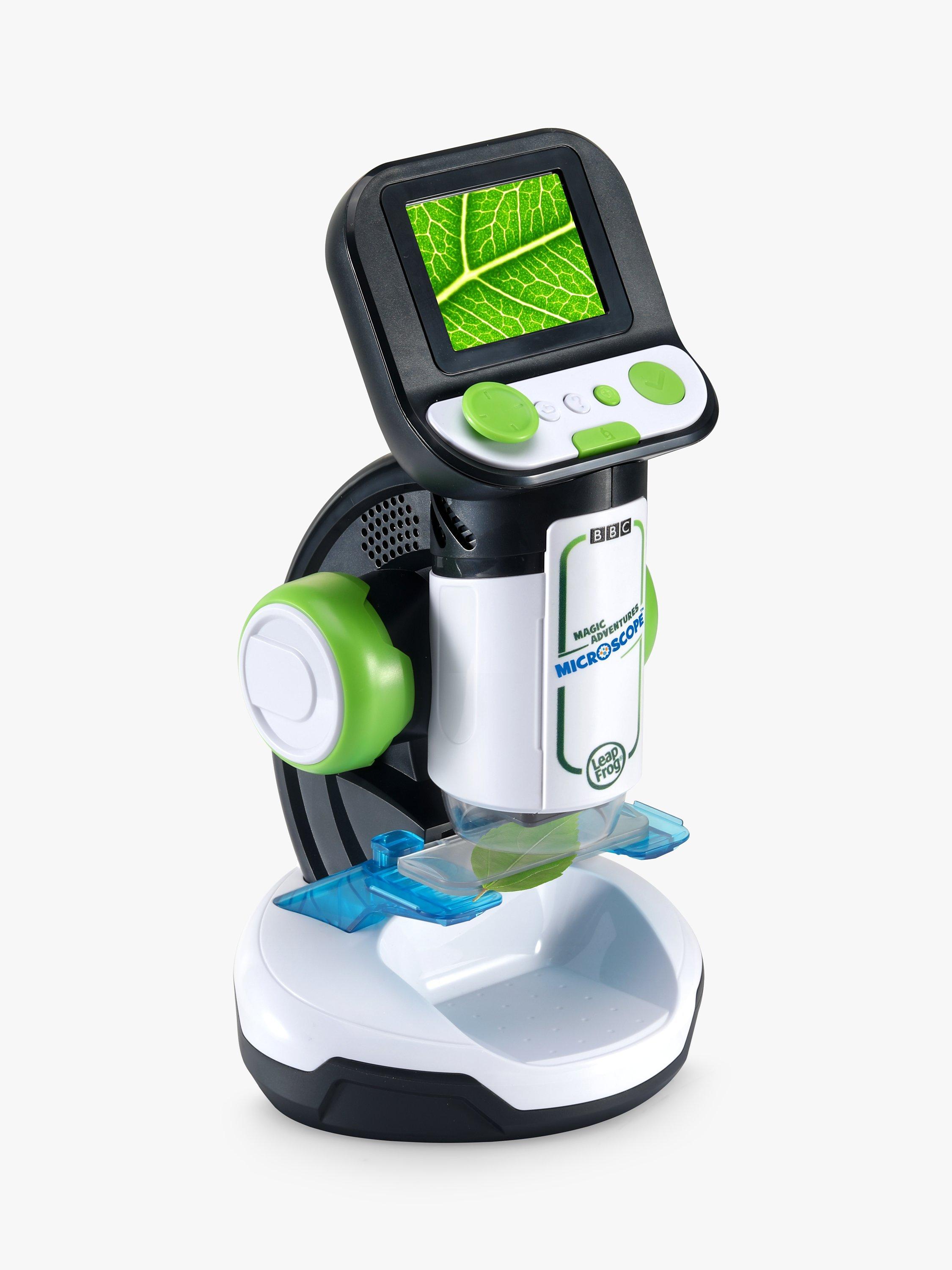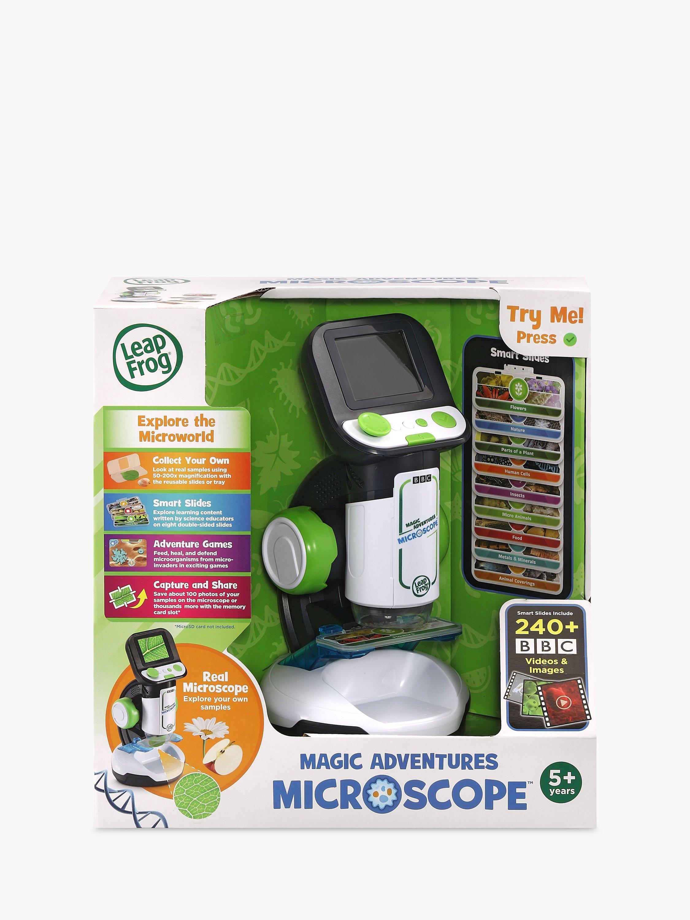 Discover the MicroWorld with the LeapFrog Magic Adventures Microscope. Delve into learning content on the 8 double-sided smart slides which cover subjects such as flowers, materials, foods, microorganisms, leaves and algae and much more. Discover through images and BBC videos to improve learning.