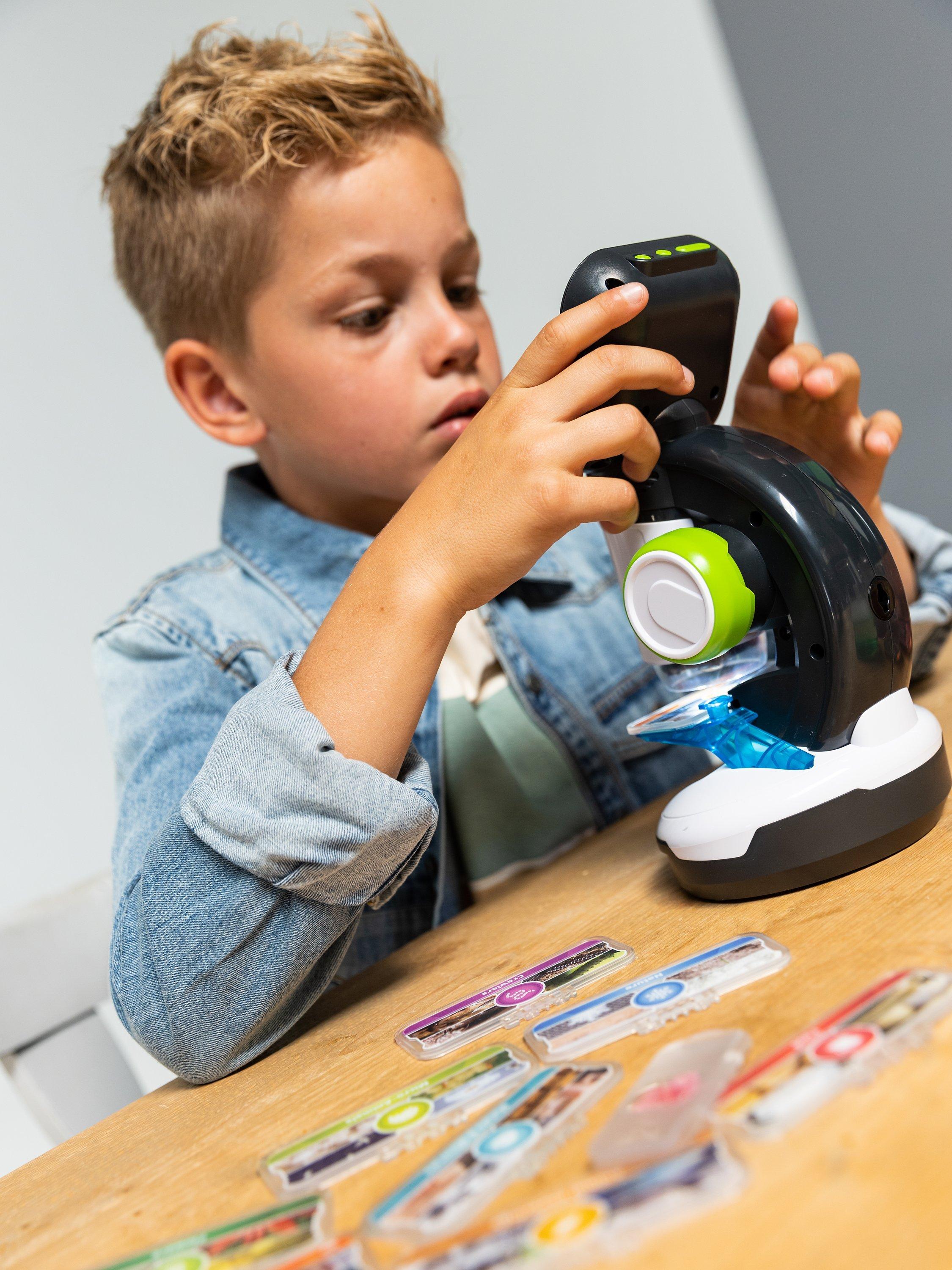 You can also use the blank slide to gather your own samples and explore. Capture and share your findings on the microscope and use an SD to store thousands more with the SD card slot (SD card not included). Develop learning further by playing the adventure games, learn how to mend and feed the microorganisms and defend them from micro-invaders.