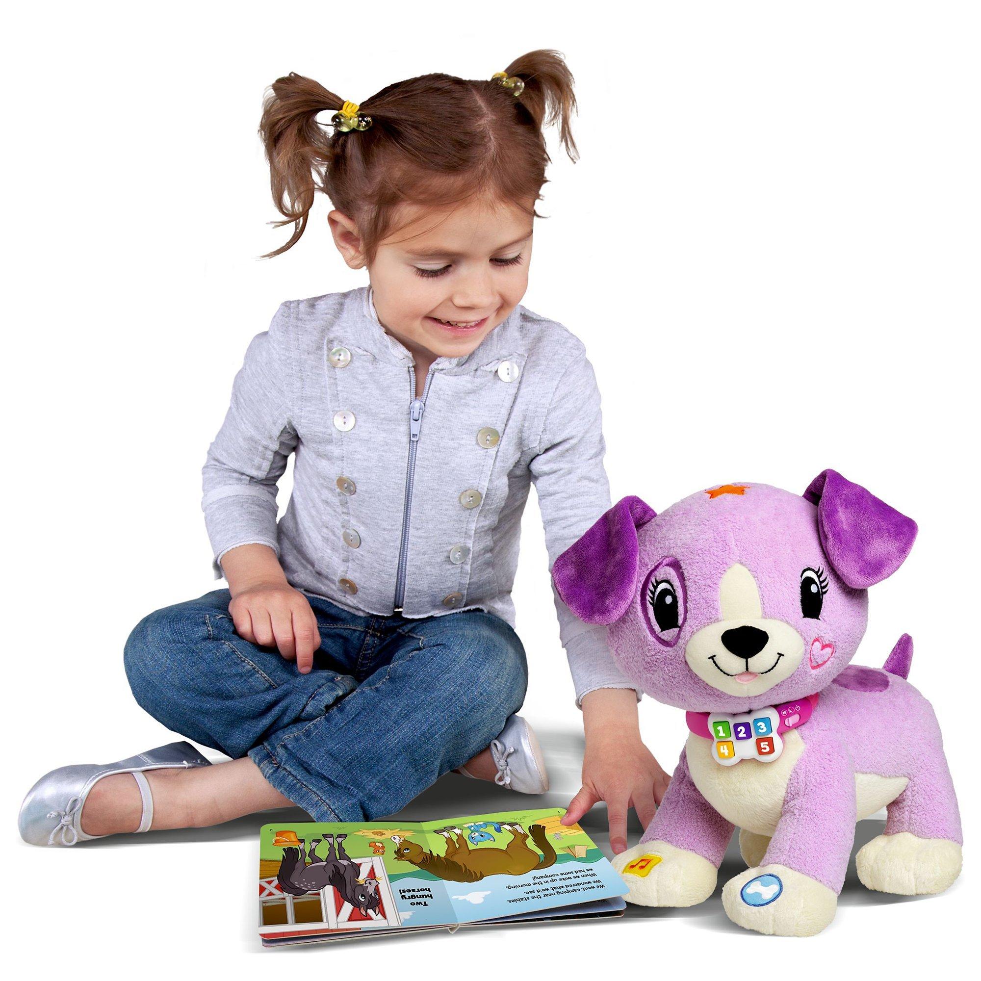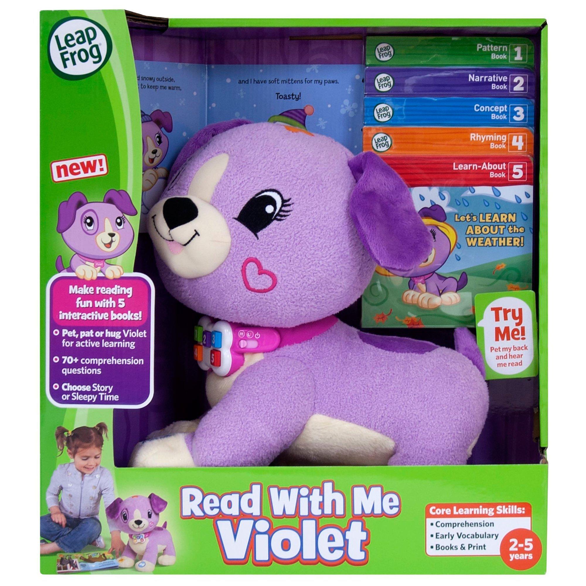 Let this adorable cuddly companion help to build early reading skills by encouraging your child to read aloud. Violet reads from 5 included board books and engages children by asking 75 fun questions throughout to help build comprehension, reading skills, early vocabulary and letter recognition.