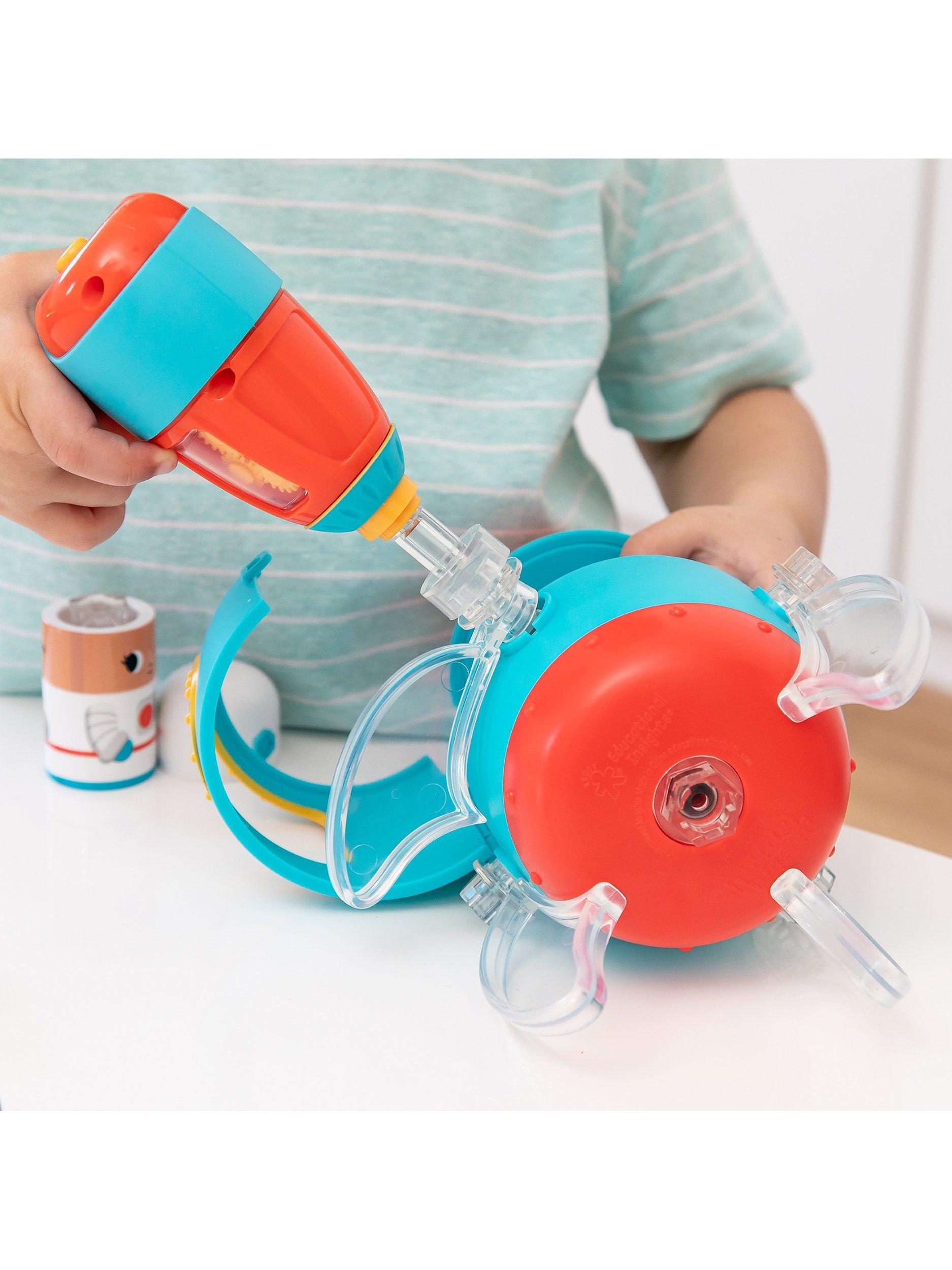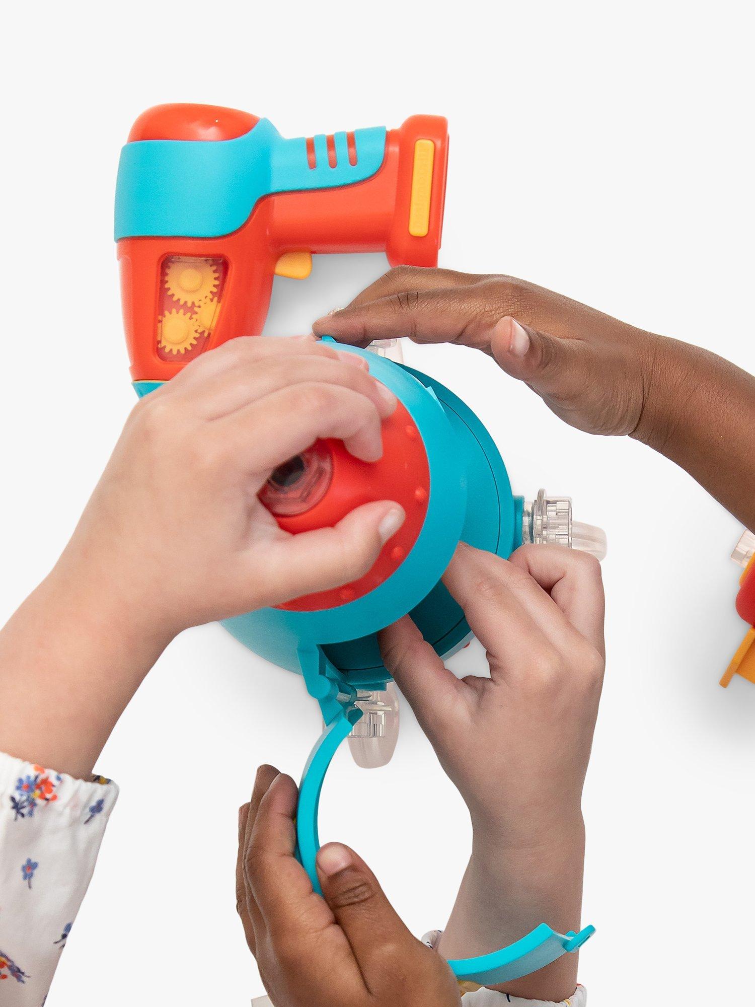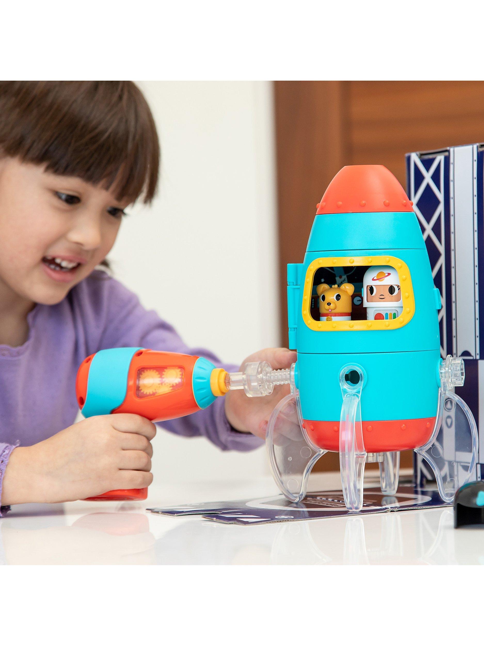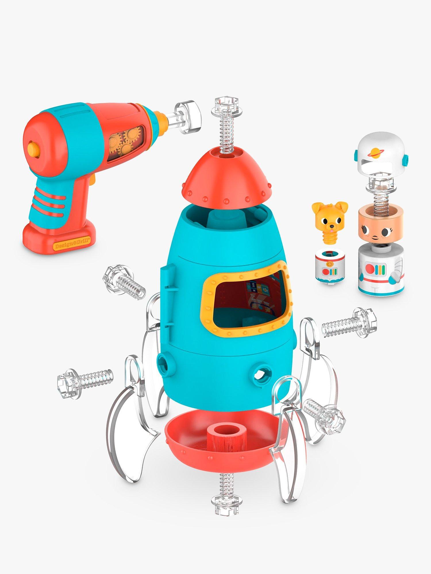 With so many ways to build and play, the Design & Drill Bolt Buddies will keep your little builder busy, busy, busy. Kids use a real, working, kid-safe drill to build the Rocket, then drop the Bolt Buddy astronaut and her and puppy pal into the cockpit and blast off into pretend play fun. Keep the box! Each Bolt Buddies package unfolds to become a unique reusable playset for even more imaginative play fun.
