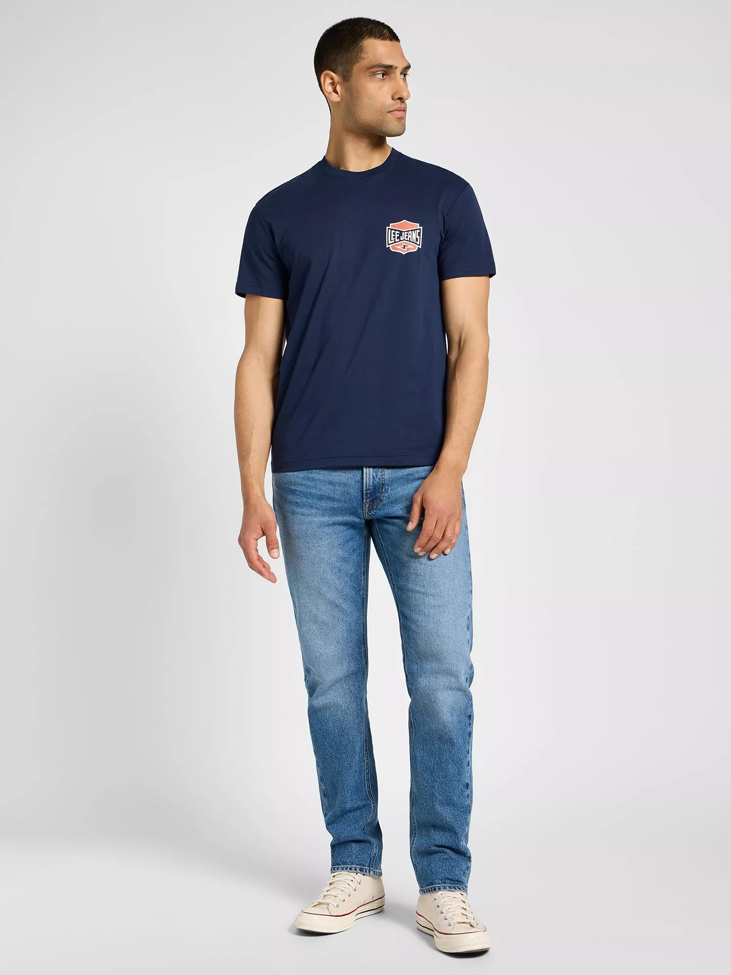 Lee's most popular fit, the Daren jeans feature a classic, straight leg style that never goes out of fashion. A true modern classic, they're cut with a lower waist and regular fit from the thigh, right down to the ankle. Everyone needs a pair! Made from a sustainable blend of cotton and lyocell, the 12 1/2oz denim fits perfectly, with a small amount of stretch for everyday comfort. The Riverway wash is a classic mid-blue colour, finished with subtle highlights down the thighs and knees for an authentic, worn-in look. Contrast tobacco stitching and brass buttons and rivets add to the heritage appeal.