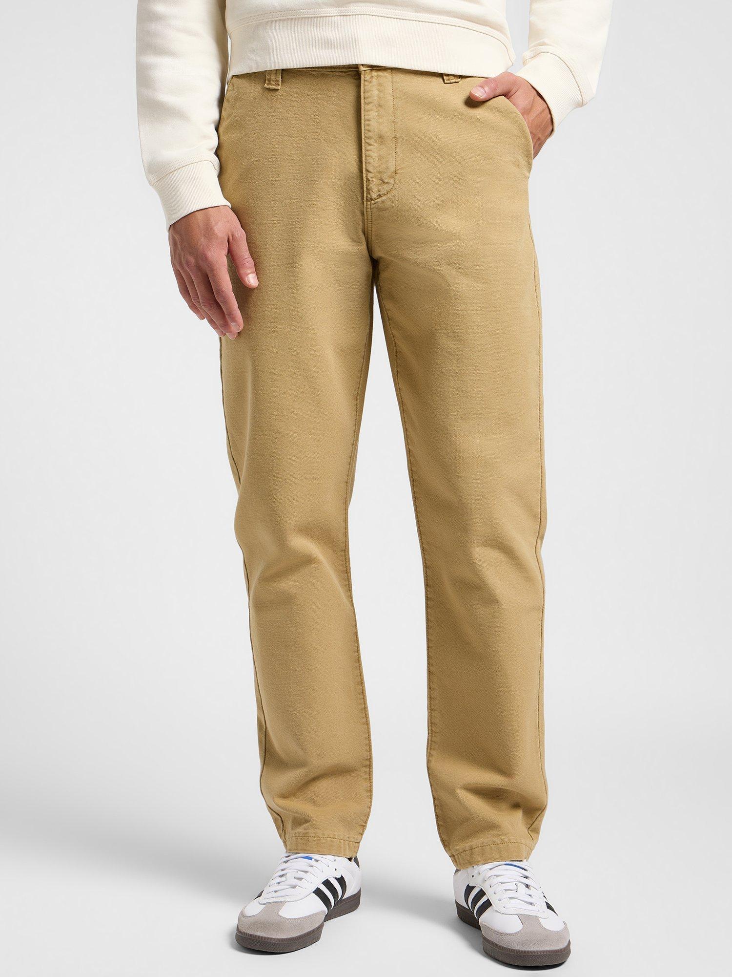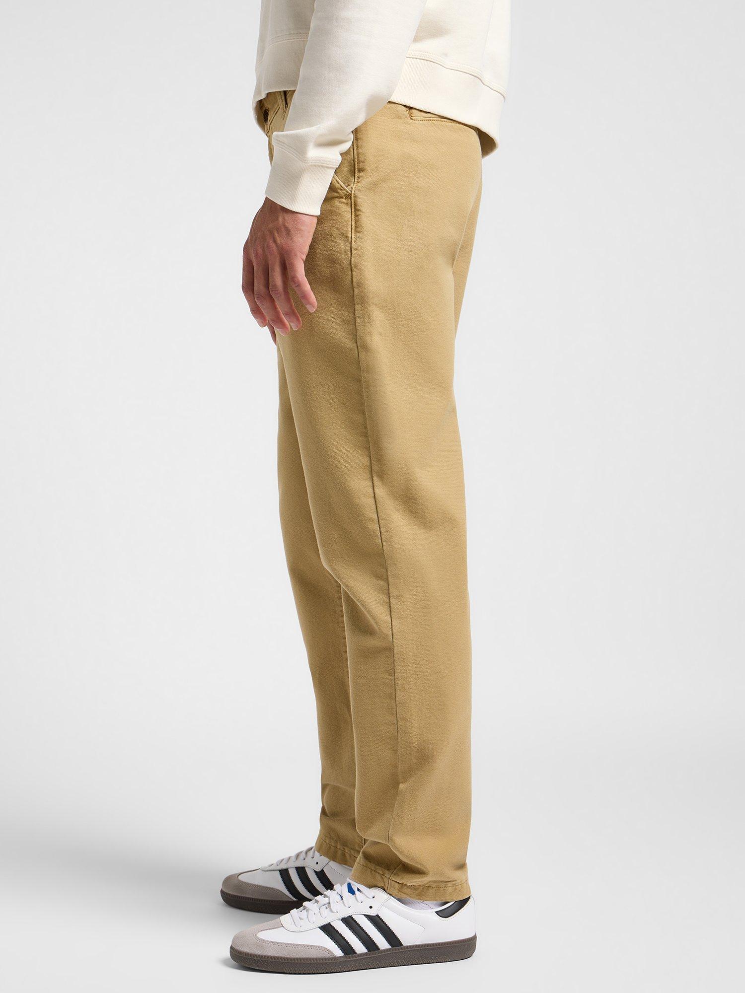 A smart alternative to your hard-working jeans, Lee's Relaxed Workwear Chino comes in a classic cut with a relaxed fit that runs from the thigh to the ankle. Carefully constructed with lightweight Oxford canvas including 20% recycled cotton for durability and style, they come in Oscar Khaki, a washed-down sandy colour that enhances the distinctive workwear canvas construction.