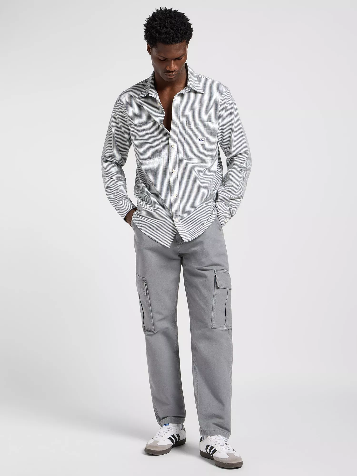A relaxed fit shirt, lightweight enough to wear by itself or layered over a t-shirt. It's crafted from organic cotton poplin that's smooth and soft against the skin, in a timeless striped print with feature pockets on the front.
