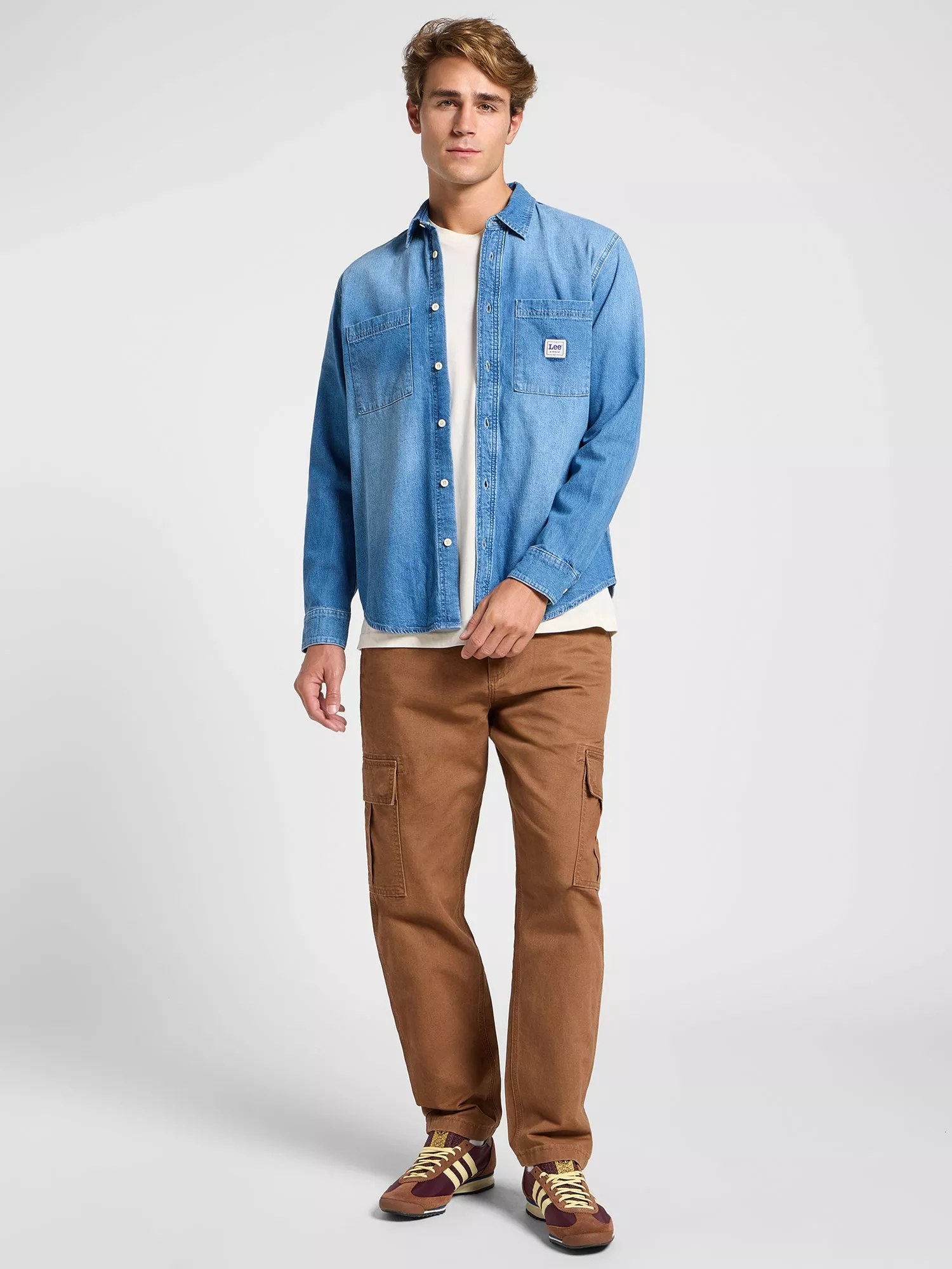 A relaxed-fit denim shirt, lightweight enough to wear by itself or layered over a t-shirt. In a nod to heritage styles, it features square chest pockets and its medium-blue wash plays into the workwear aesthetic perfectly.