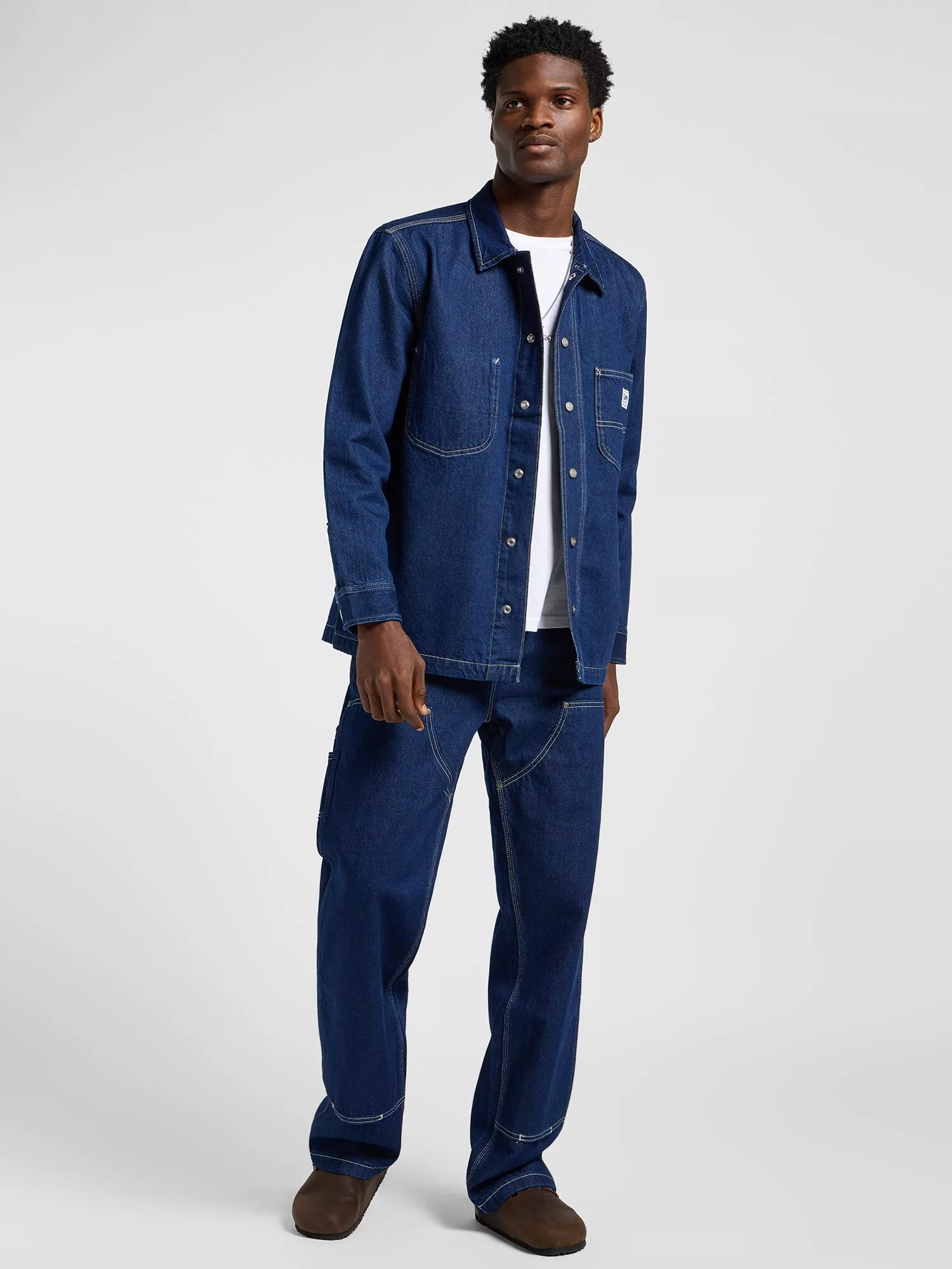 Capturing a solid utility look inspired by American frontiers, this overshirt has relaxed shaping and features chest pockets, side slip pockets, snatches and an inside pocket. It's made from rigid yet lightweight cotton denim that gives the garment structure and it's finished with a heritage Workwear logo on the front.