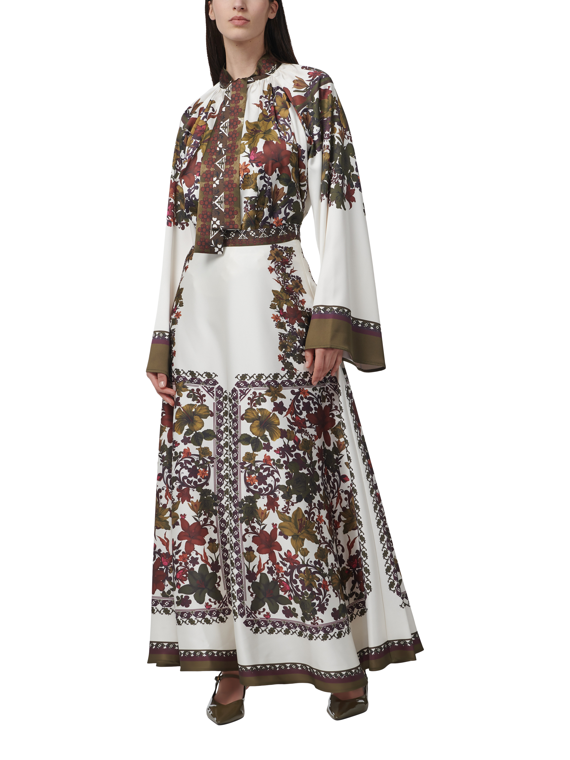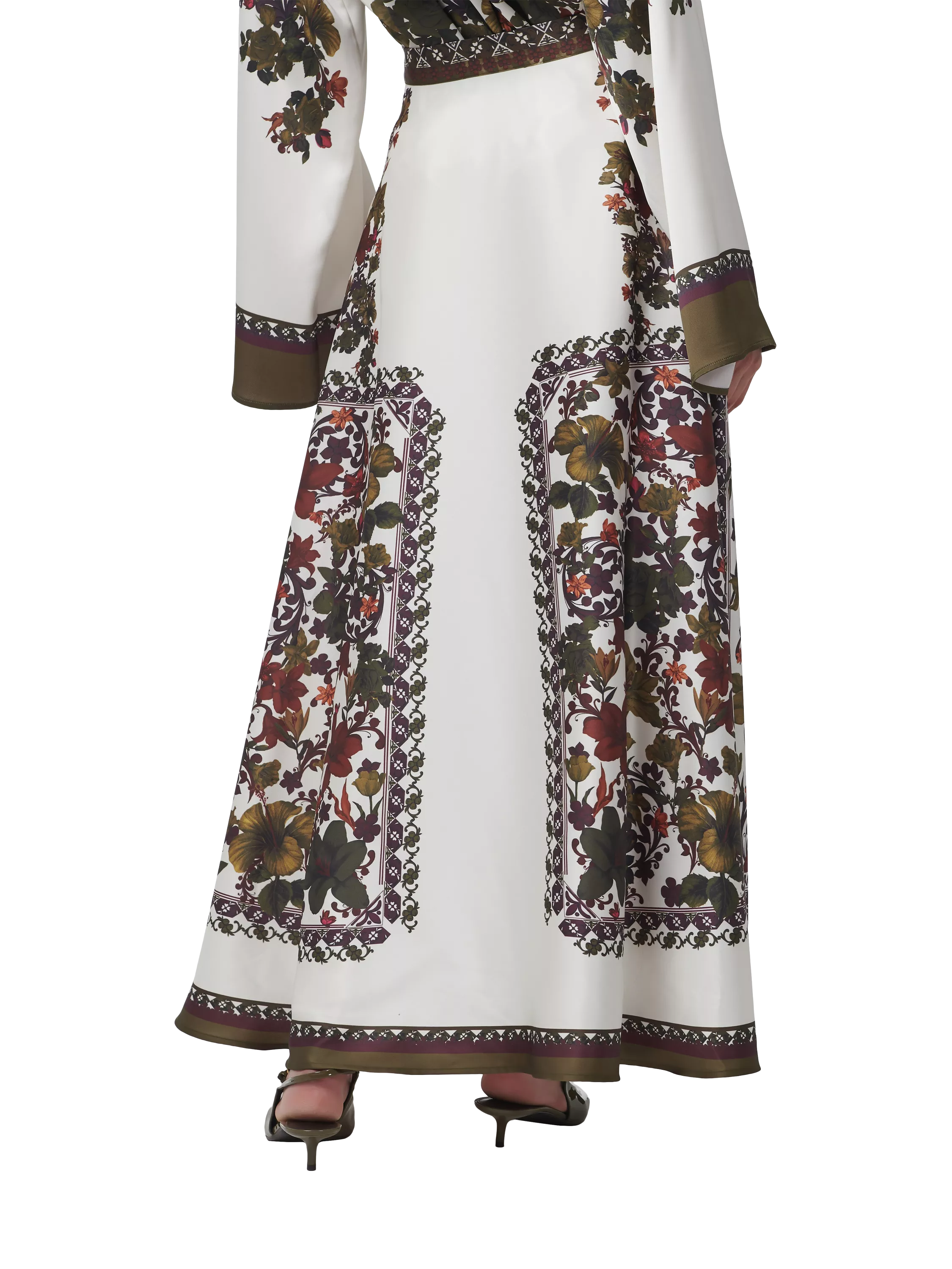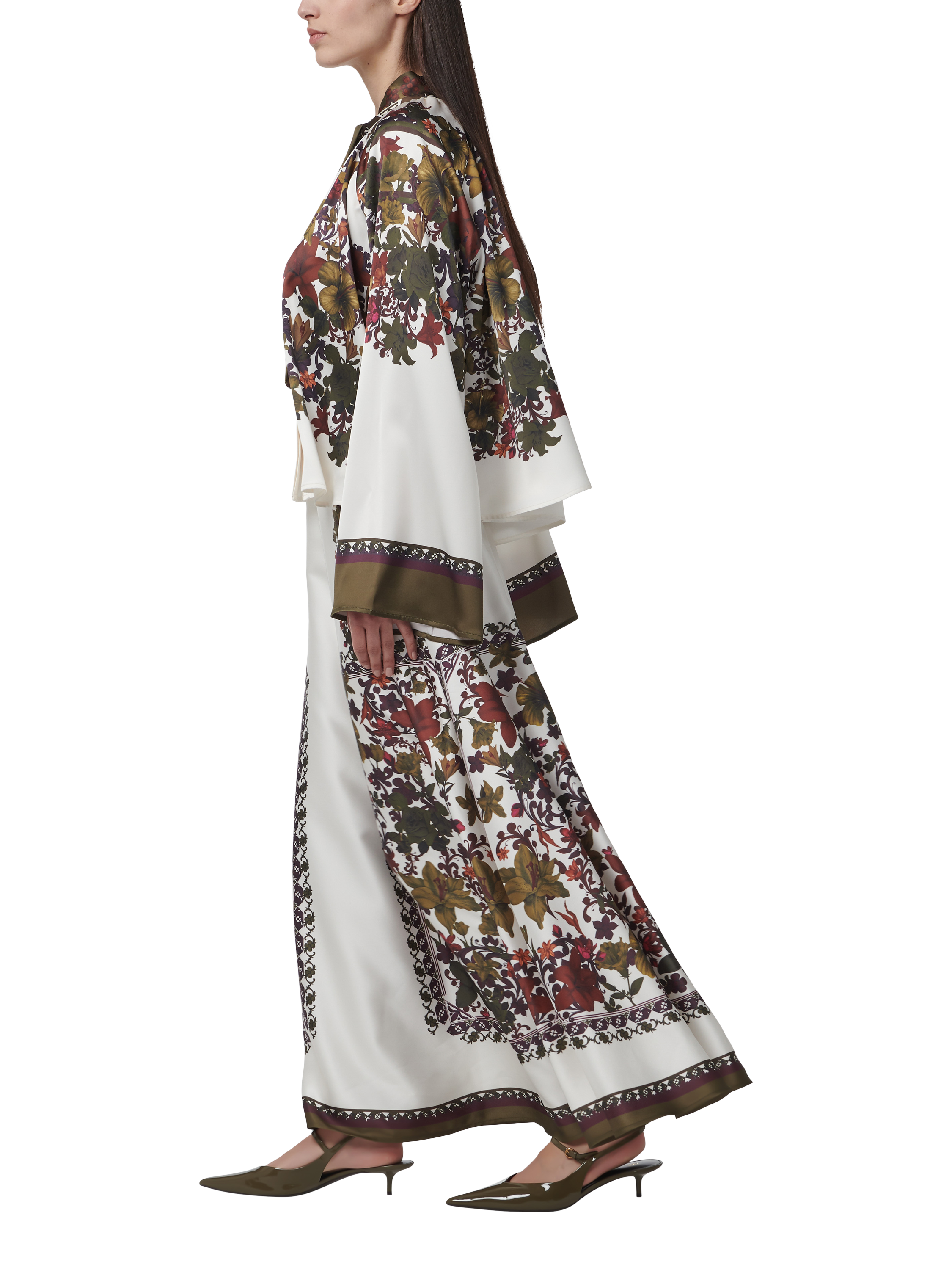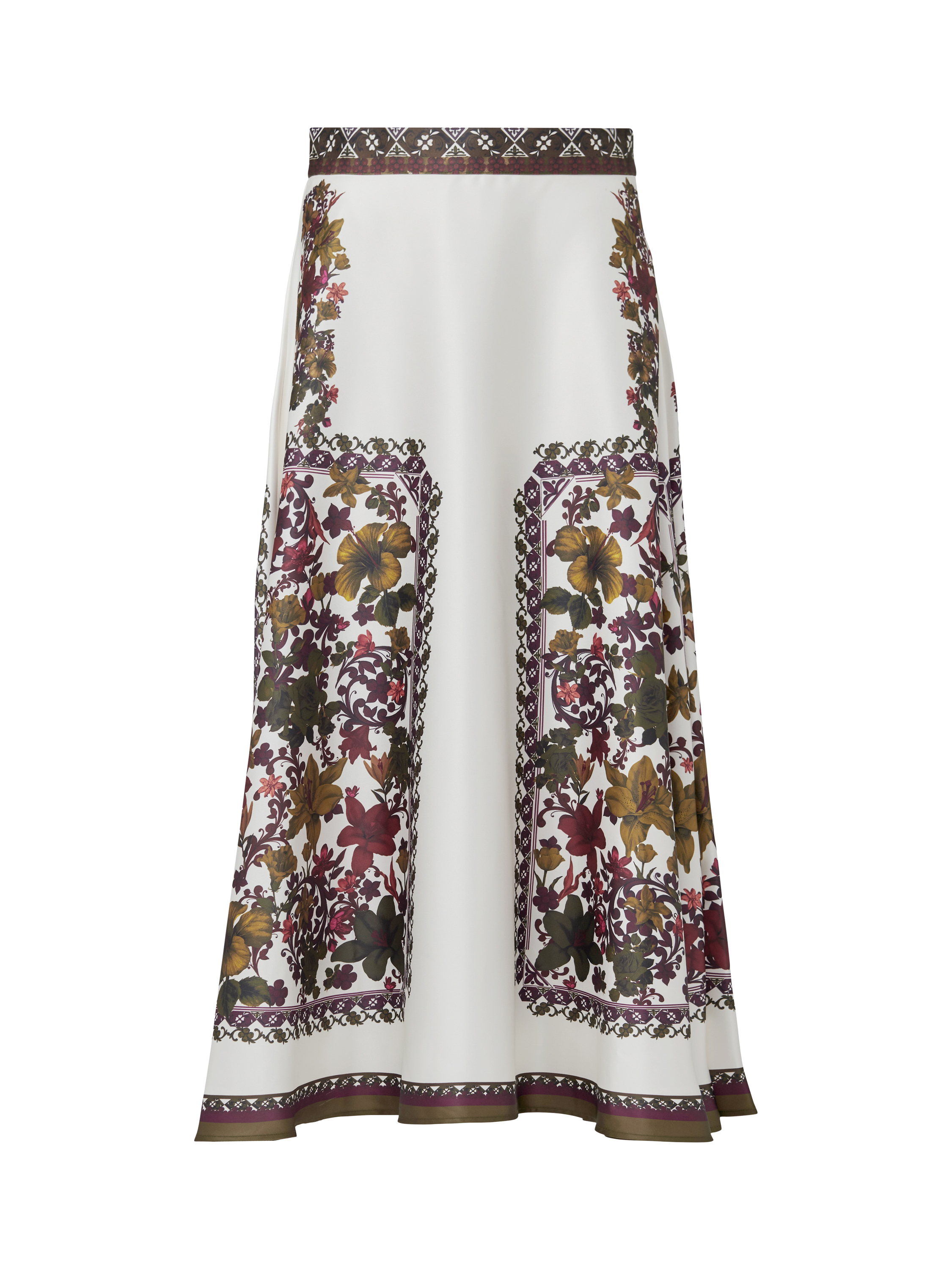 This floral print skirt is designed with a clean, fixed waistband and a concealed side zip for a smooth finish. The woven fabric holds its shape while allowing easy movement. A versatile piece that works well with both tailored and relaxed tops.
