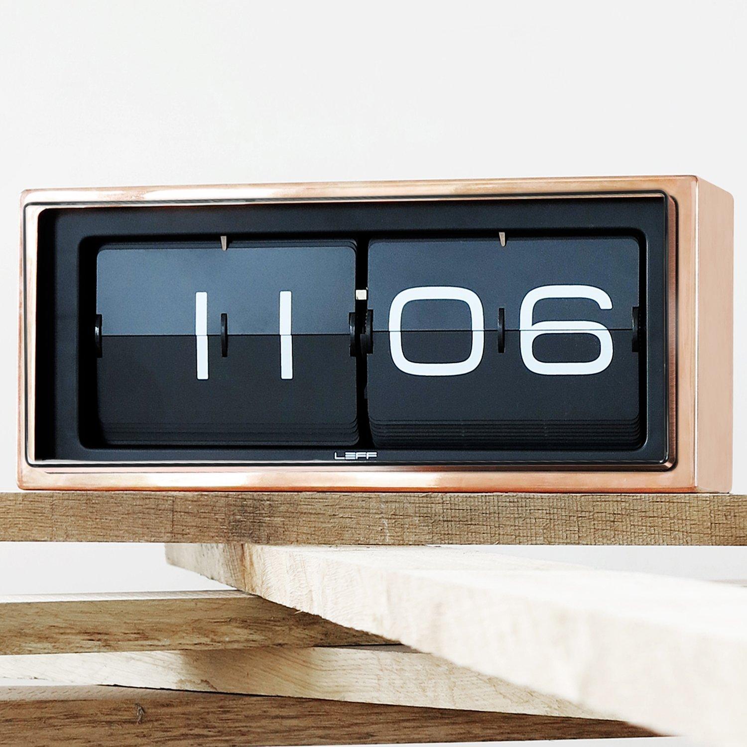Designed by Erwin Termaat, this vintage clock is reinvented and re-engineered with a flip mechanism that displays the time using detailed digits. Housed inside a stainless steel/copper case, this clock looks marvellous when displayed on a desk or bedside cabinet and can even be hung on the wall.