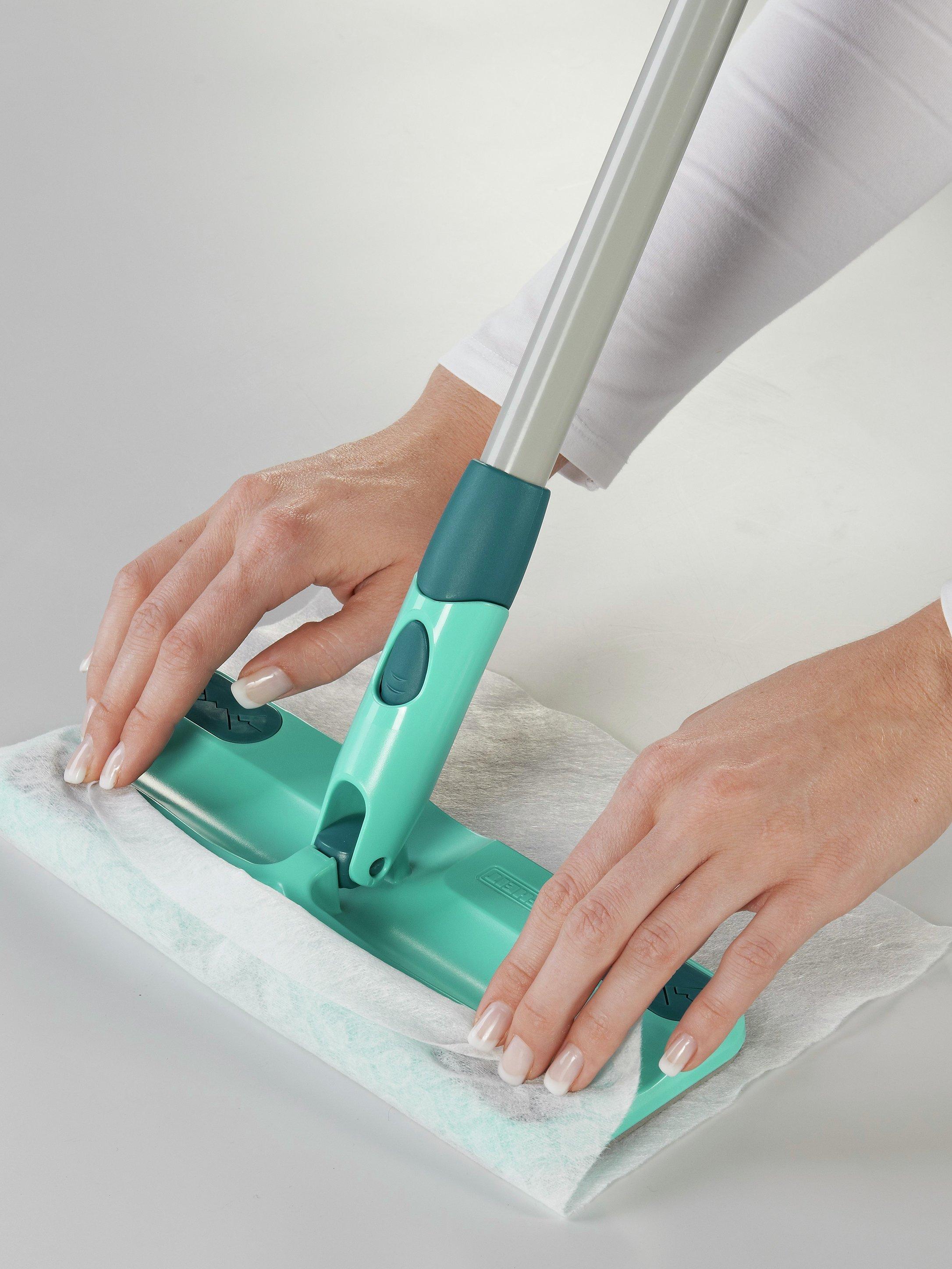 Leifheit’s Clean and Away dry-mop allows for quick easy floor dusting. The static disposable dry cloths wrap around the mop head and are held securely. Can also be used with wet disposable cleaning cloths.