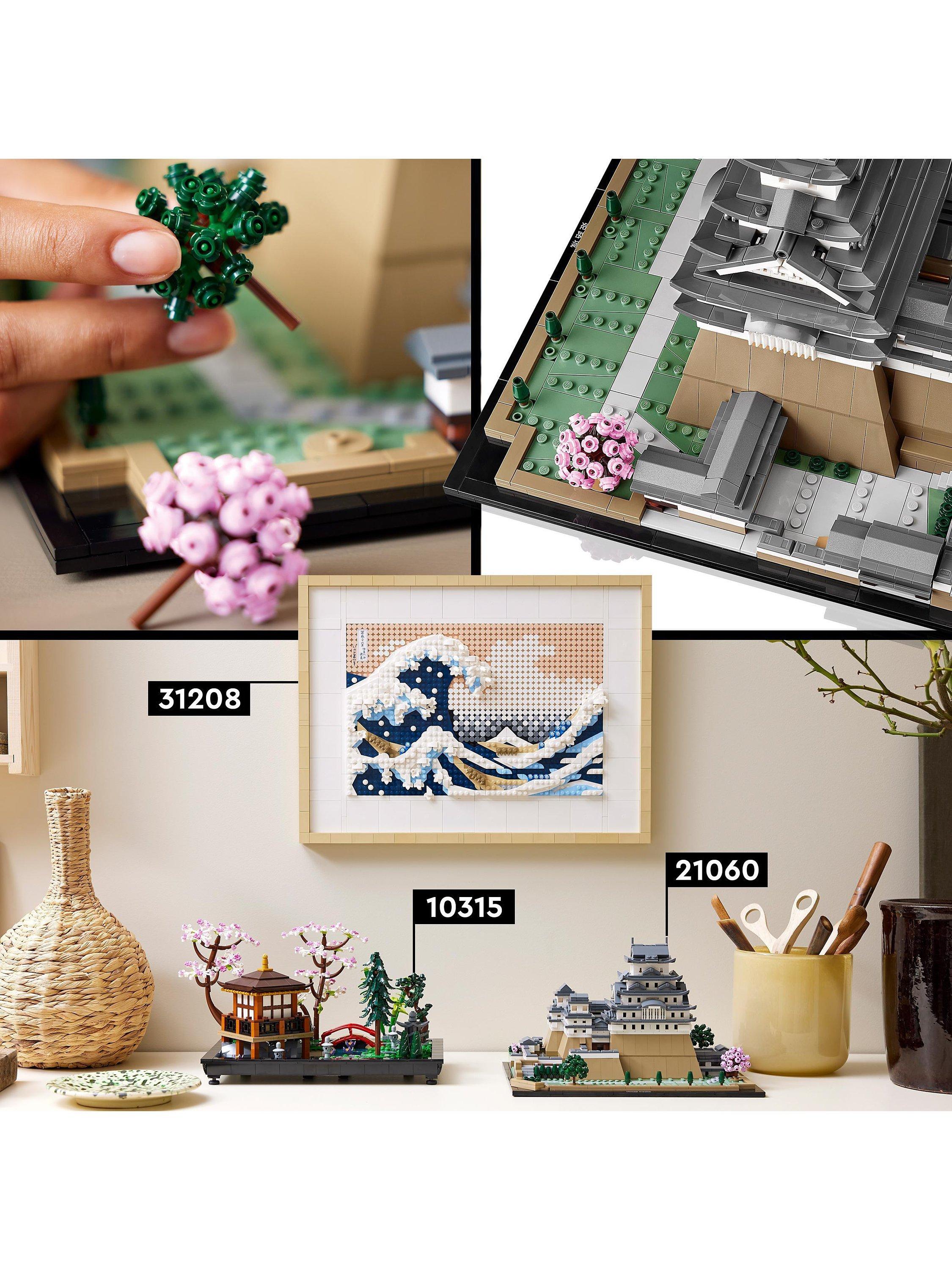 Enjoy quality time building your own LEGO model of the castle that rises majestically above the city of Himeji in Japan. Capture instantly recognisable details such as the castle's turrets, flowing walkways and asymmetrical walls. Build a section of the castle's huge grounds with cherry trees - crown them with green foliage or pink springtime blooms to complete a stunning centrepiece.
