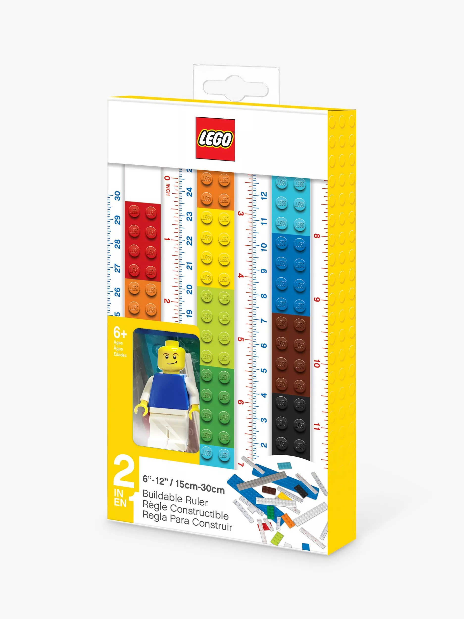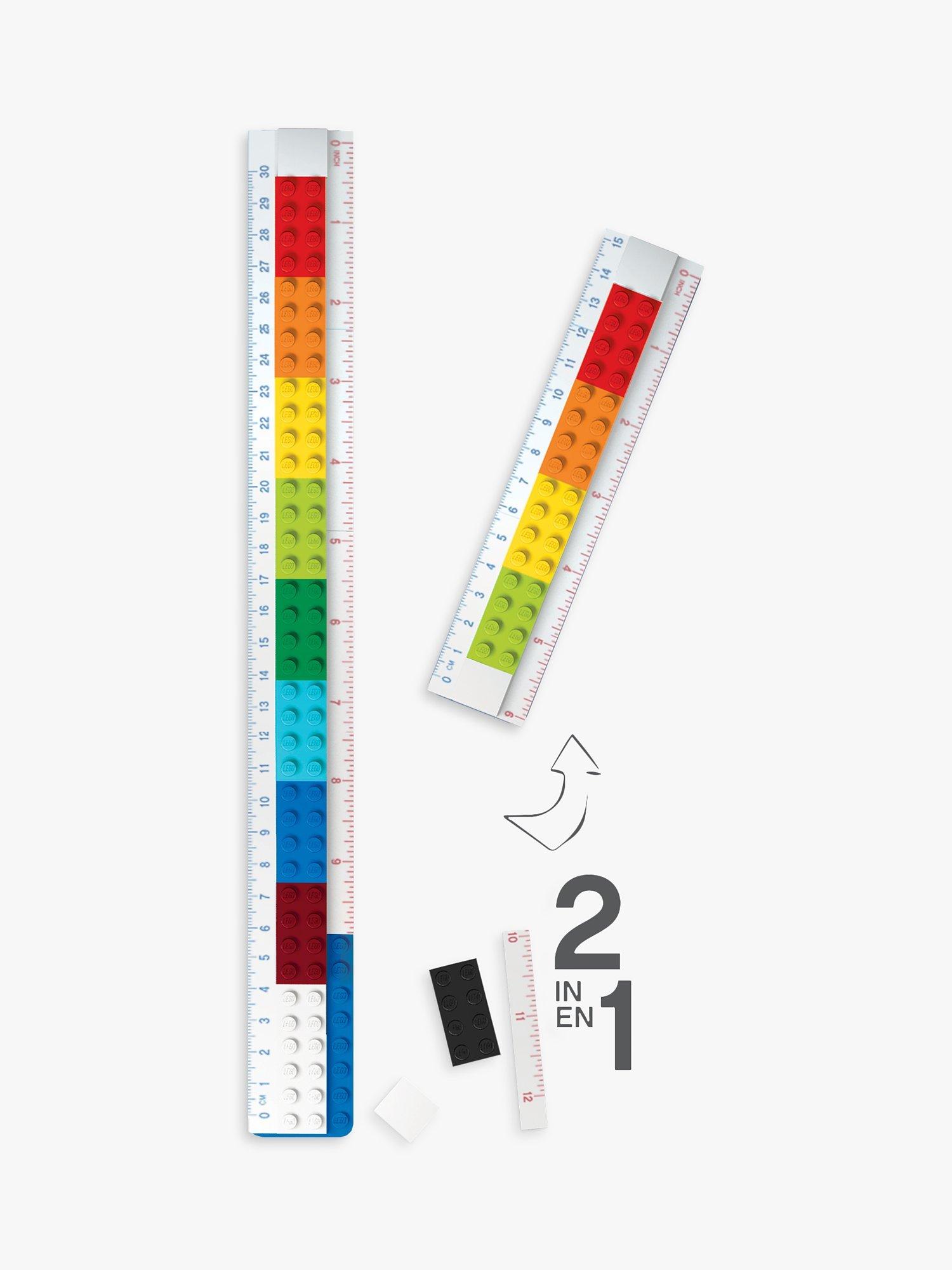 This 2-in-1 LEGO® ruler is great for measuring and fun for building! Made from LEGO pieces, the ruler easily converts between 6 in. (15 cm) and 12 in. (30 cm) long and includes both centimeter and inch scales.